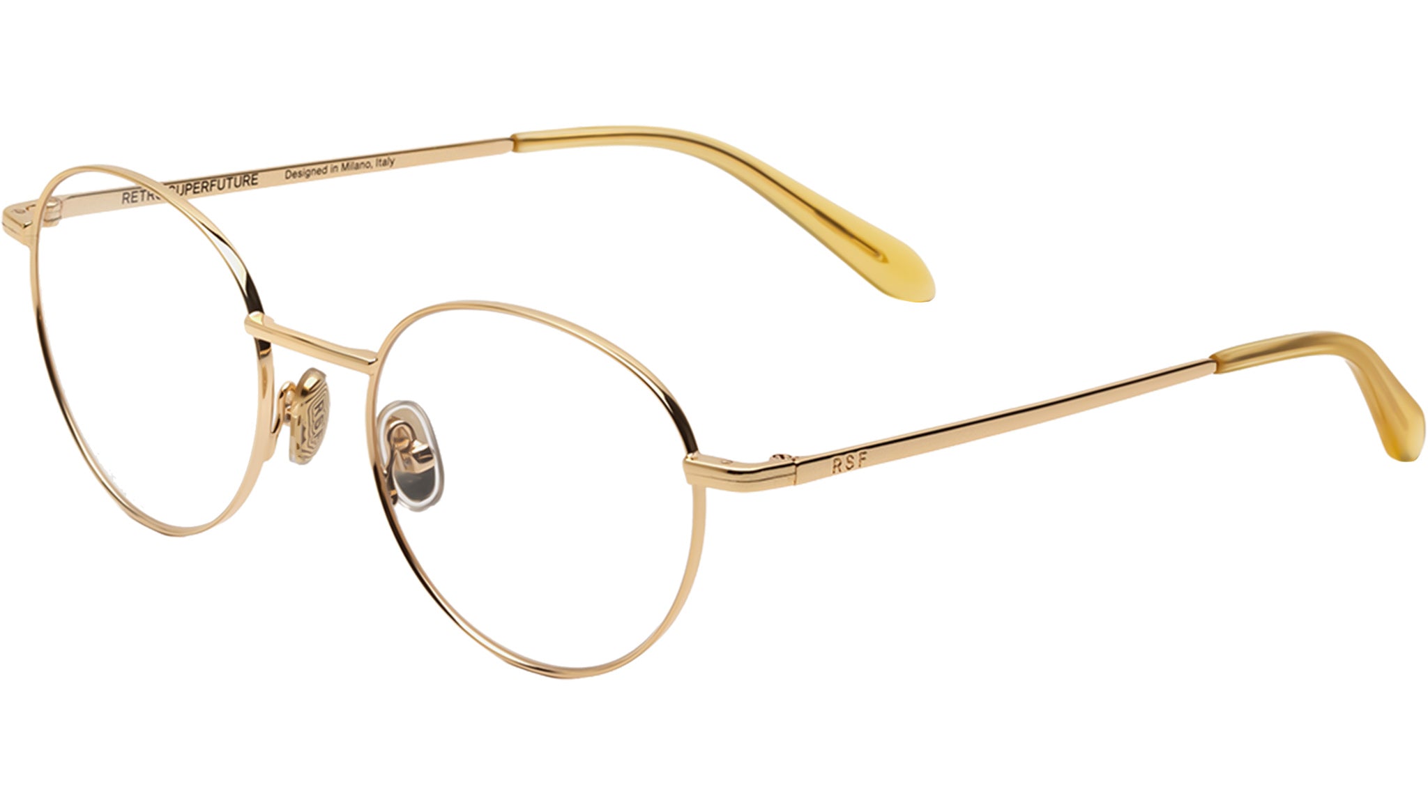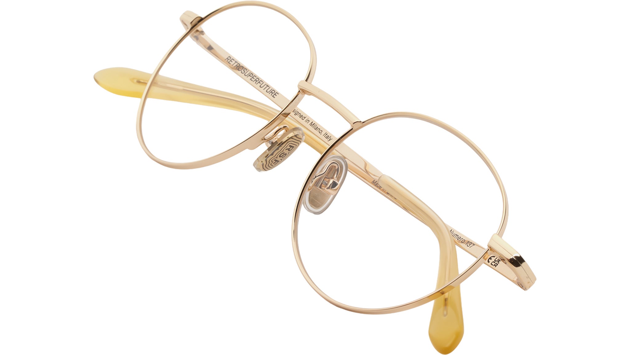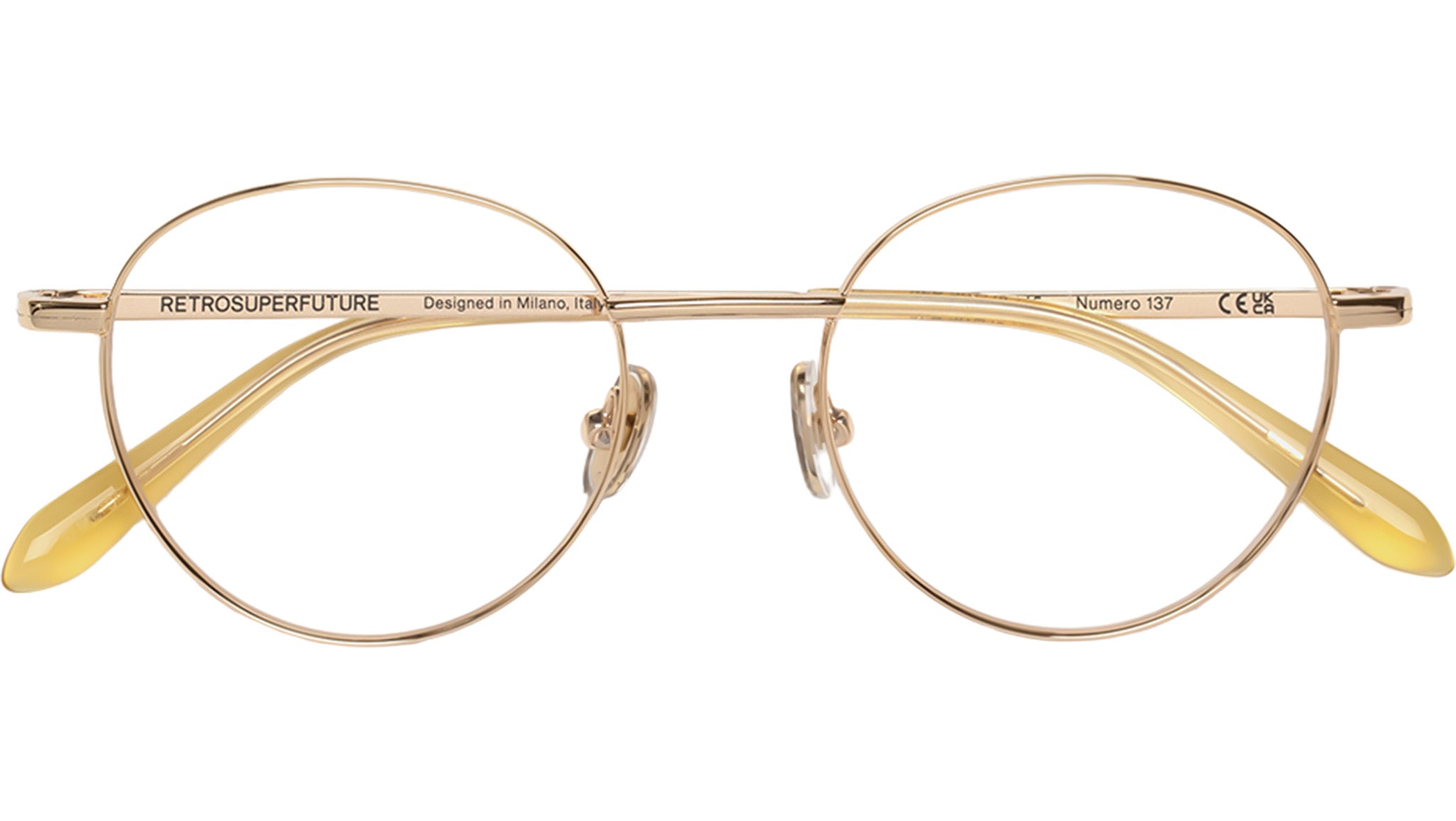 Montatura per occhiali da vista Retrosuperfuture Numero 137 Cremoso con montatura in metallo crema e lenti demo. Codice modello: 9FB. Made in Italy. Rivenditore autorizzato RSF online. Gli occhiali vengono consegnati con custodia e accessori originali e sono coperti dalla garanzia ufficiale di 12 mesi del produttore.