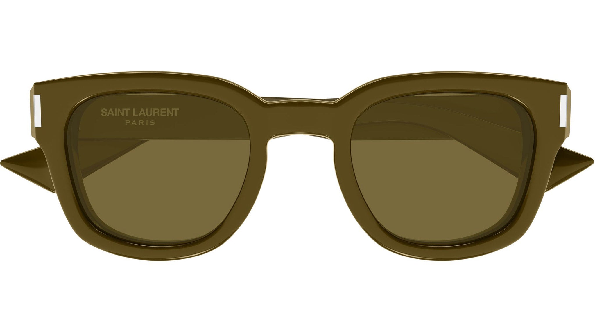 Occhiali da sole Saint Laurent SL 838 007 unisex con montatura ovale in acetato riciclato marrone liquirizia solido lucido e lenti verde kaki tinta unita. Linea: Corner Angle. Codice modello: SL 838. Codice colore: 007. Made in Italy. Rivenditore autorizzato Saint Laurent online. Gli occhiali vengono consegnati con custodia e accessori originali e sono coperti dalla garanzia ufficiale di 12 mesi del produttore.