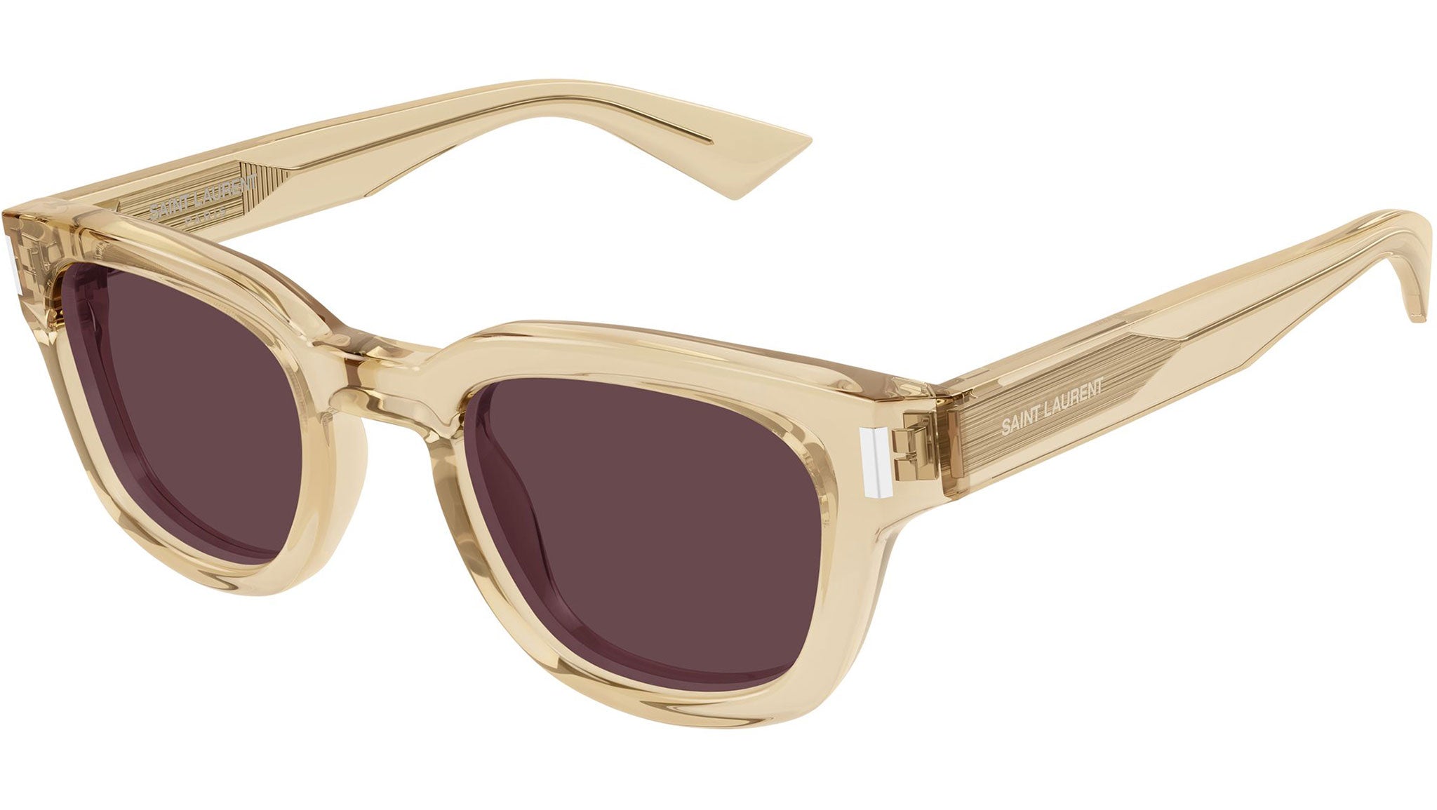 Occhiali da sole Saint Laurent SL 838 008 unisex con montatura ovale in acetato riciclato giallo lucido trasparente e lenti viola scuro tinta unita. Linea: Corner Angle. Codice modello: SL 838. Codice colore: 008. Made in Italy. Rivenditore autorizzato Saint Laurent online. Gli occhiali vengono consegnati con custodia e accessori originali e sono coperti dalla garanzia ufficiale di 12 mesi del produttore.