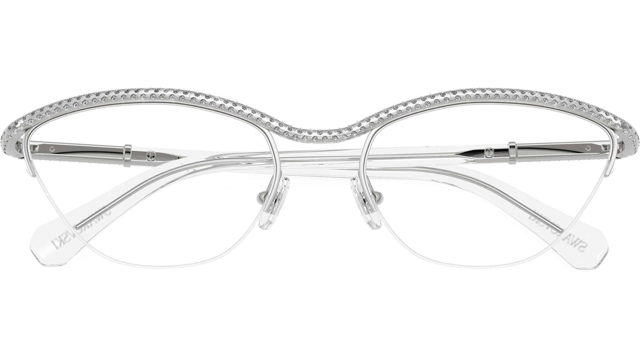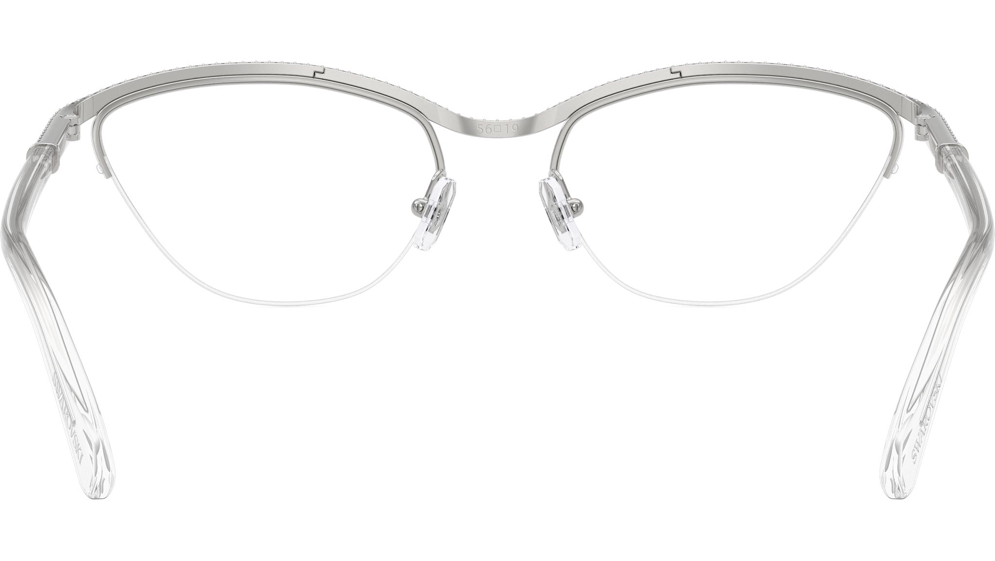 Occhiali da vista Swarovski SK1026 4001 donna, con montatura ovale in metallo color argento e lenti demo. Naselli regolabili. Linea: Science of Facets. Codice modello: SK1026. Codice colore: 4001. Rivenditore autorizzato Swarovski Eyewear online. Ogni prodotto Swarovski viene consegnato con astuccio originale e accessori ed è coperto da garanzia del produttore di 12 mesi.