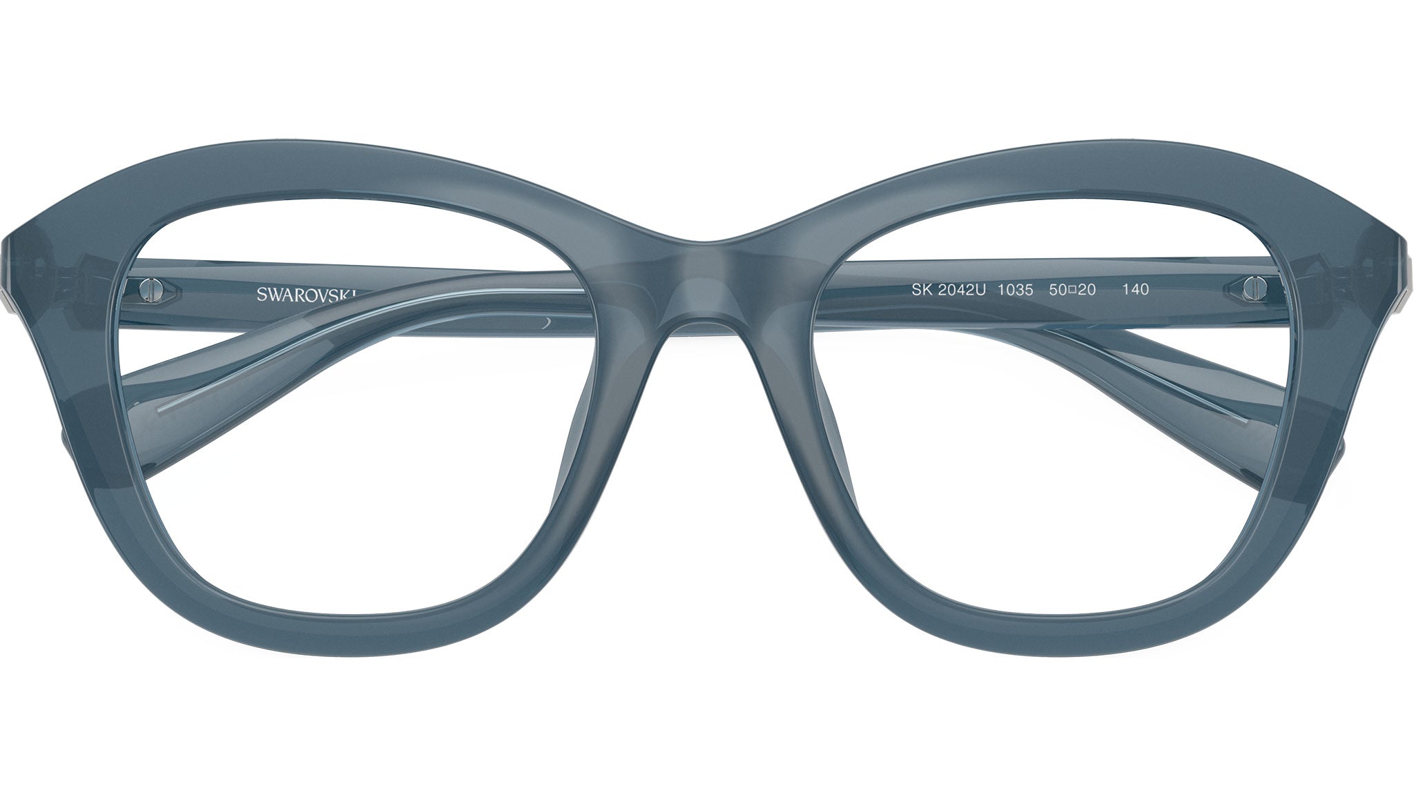 Occhiali da vista Swarovski SK2042U 1035 donna, con montatura cat eye in Injected color azzurro latteo e lenti demo. Vestibilità a ponte alto. Linea: Science of Facets. Codice modello: SK2042U. Codice colore: 1035. Rivenditore autorizzato Swarovski Eyewear online. Ogni prodotto Swarovski viene consegnato con astuccio originale e accessori ed è coperto da garanzia del produttore di 12 mesi.