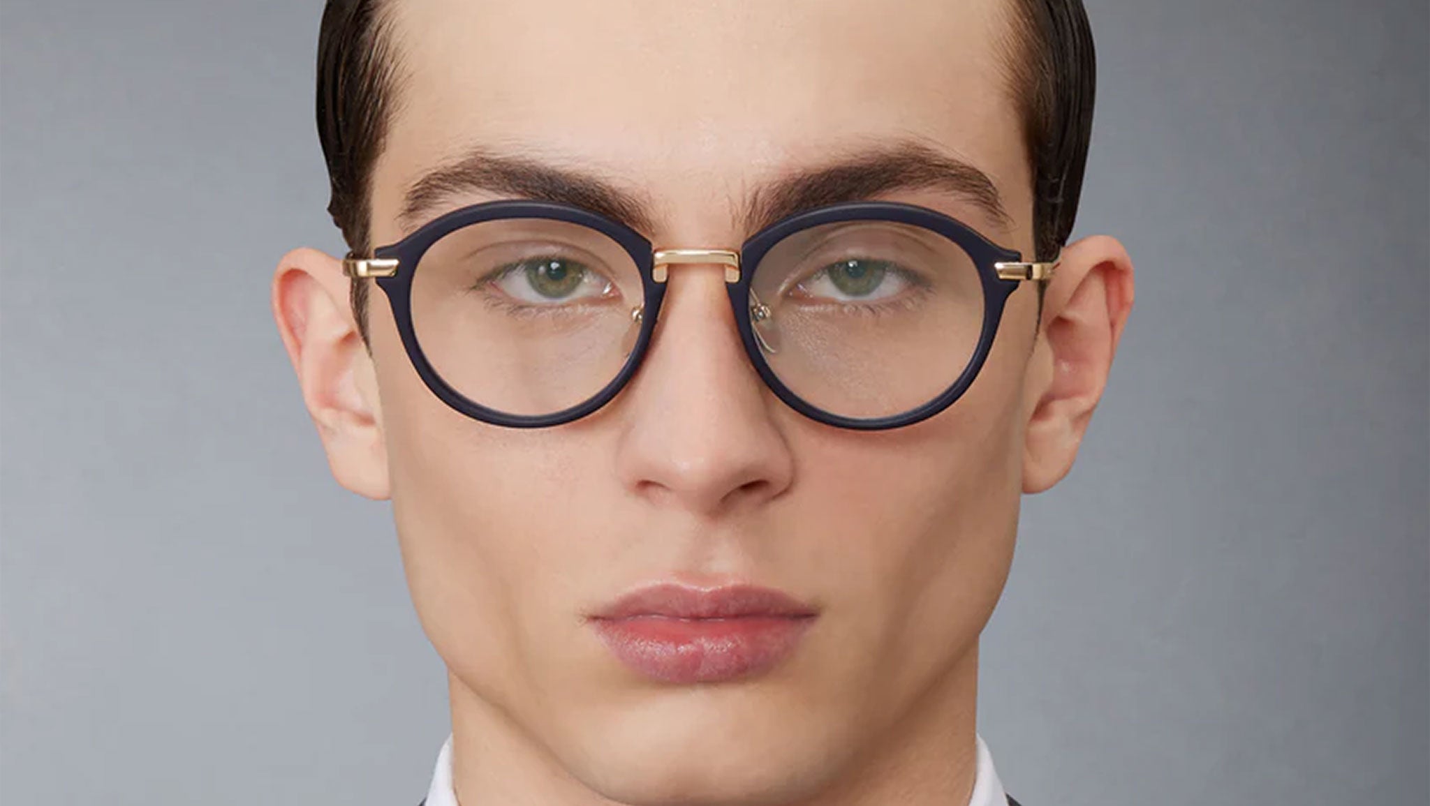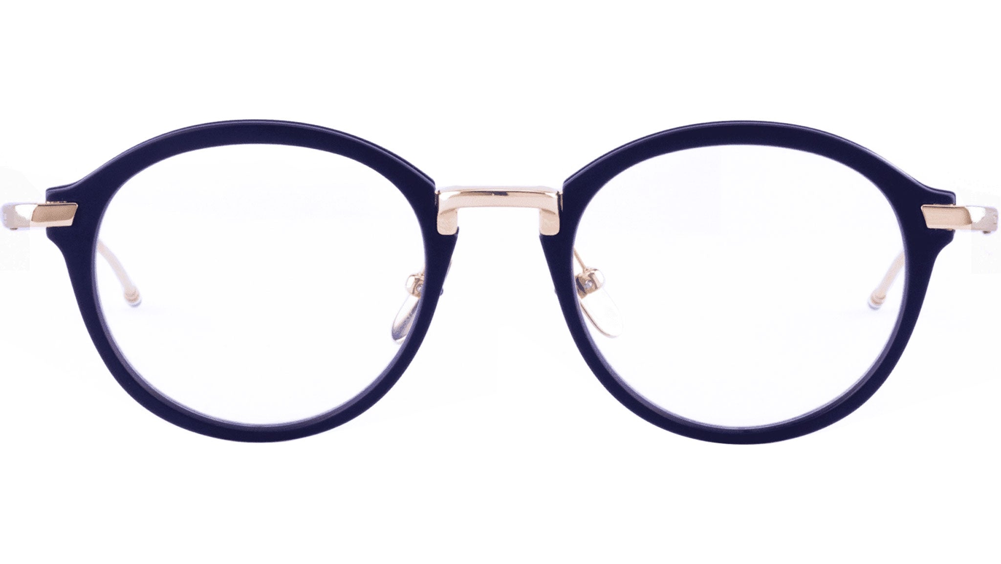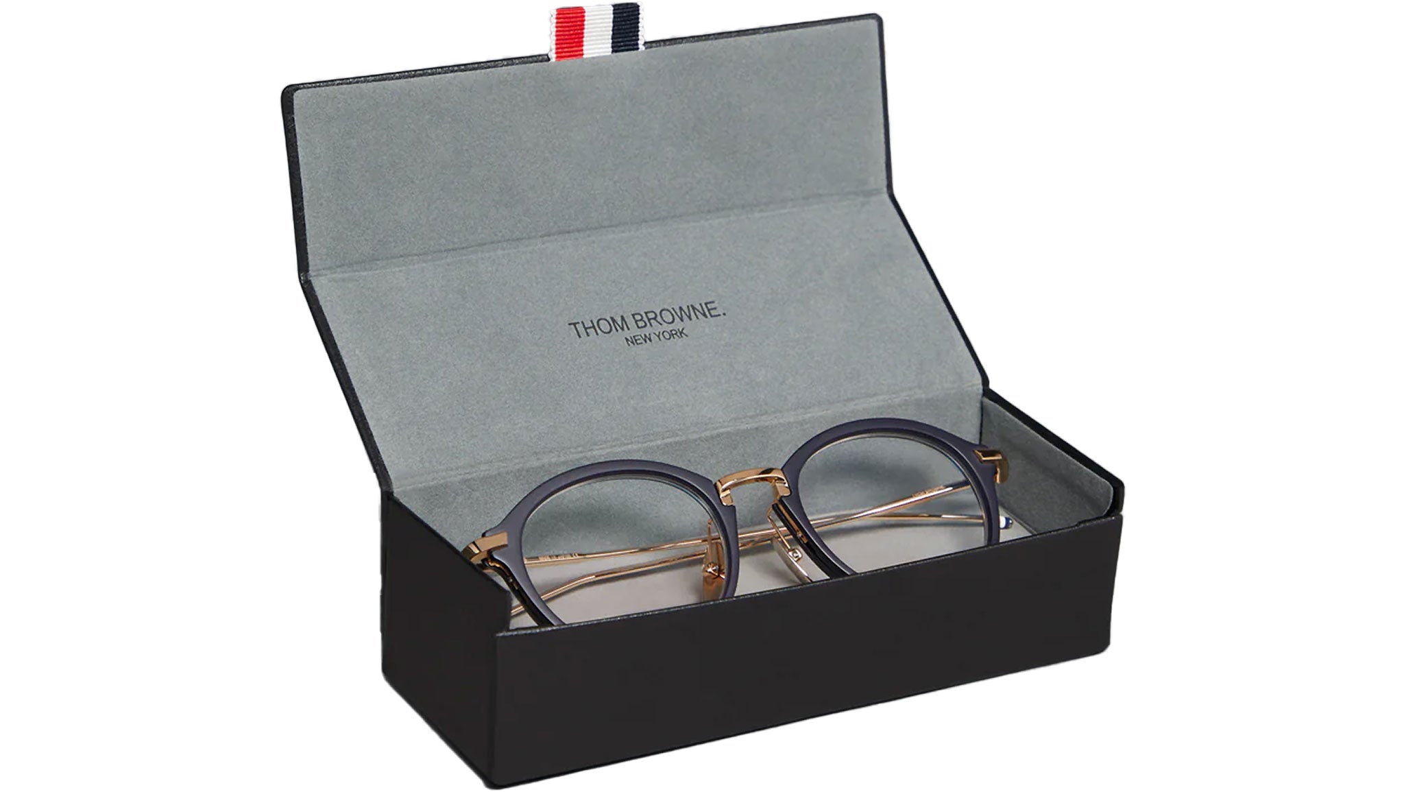 Occhiali da vista Thom Browne unisex modello UEO011A con montatura full-rim in acetato-titanio blu navy opaco e lenti demo. Codice Brand: UEO011A. Codice colore: 410. Rivenditore autorizzato Thom Browne online. Gli occhiali vengono consegnati con custodia e accessori originali e sono coperti da garanzia standard di 12 mesi del produttore.
