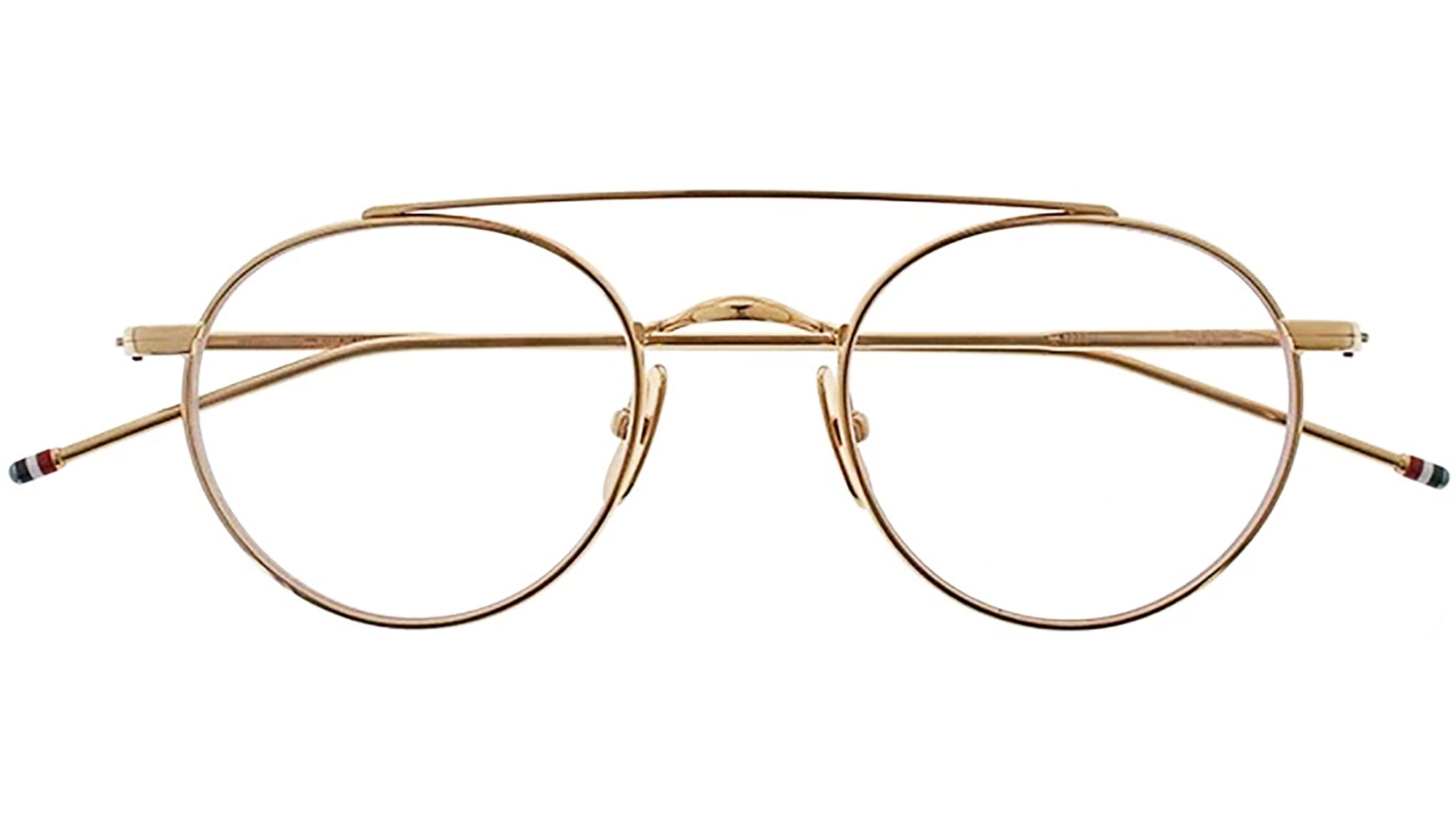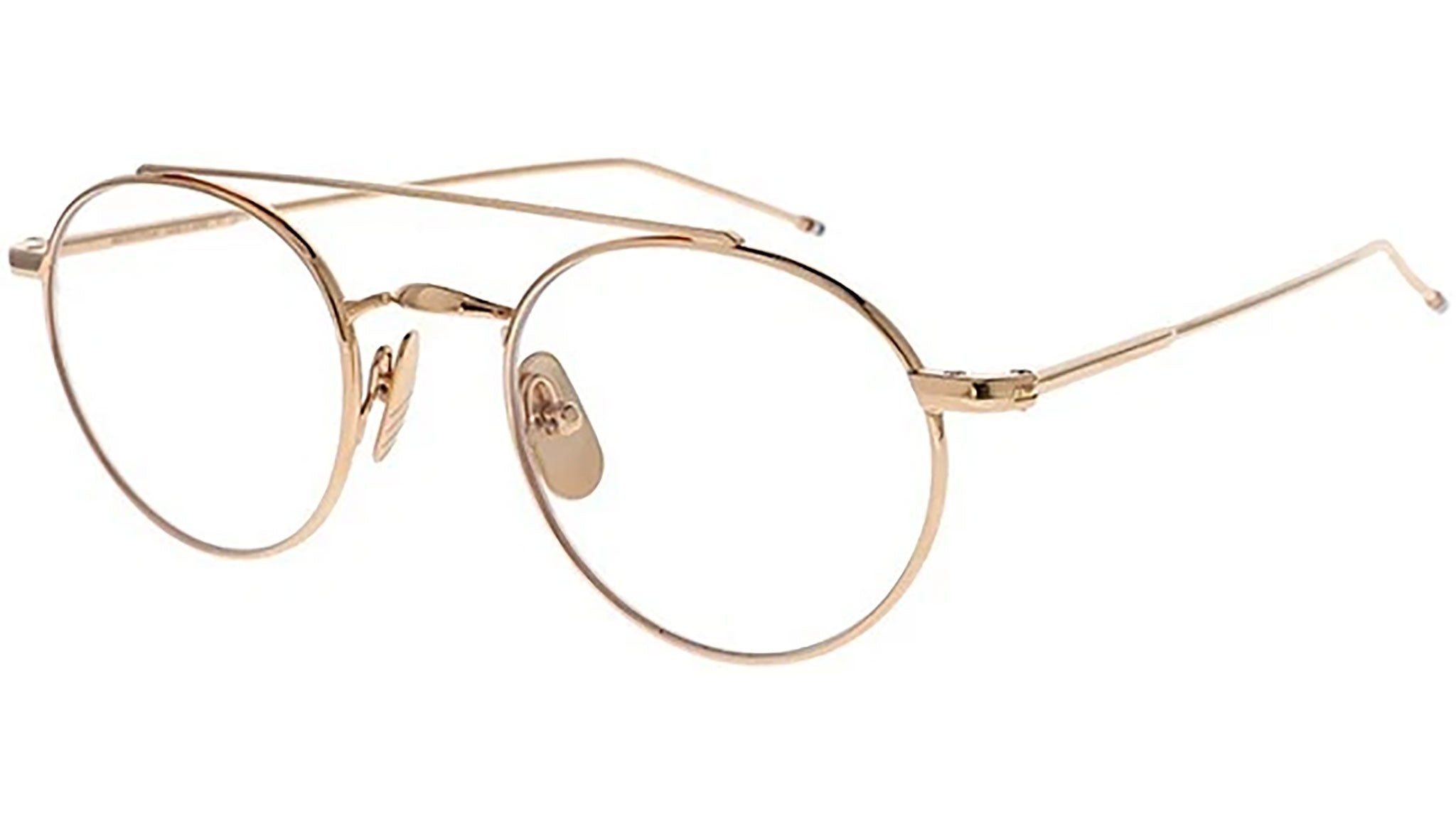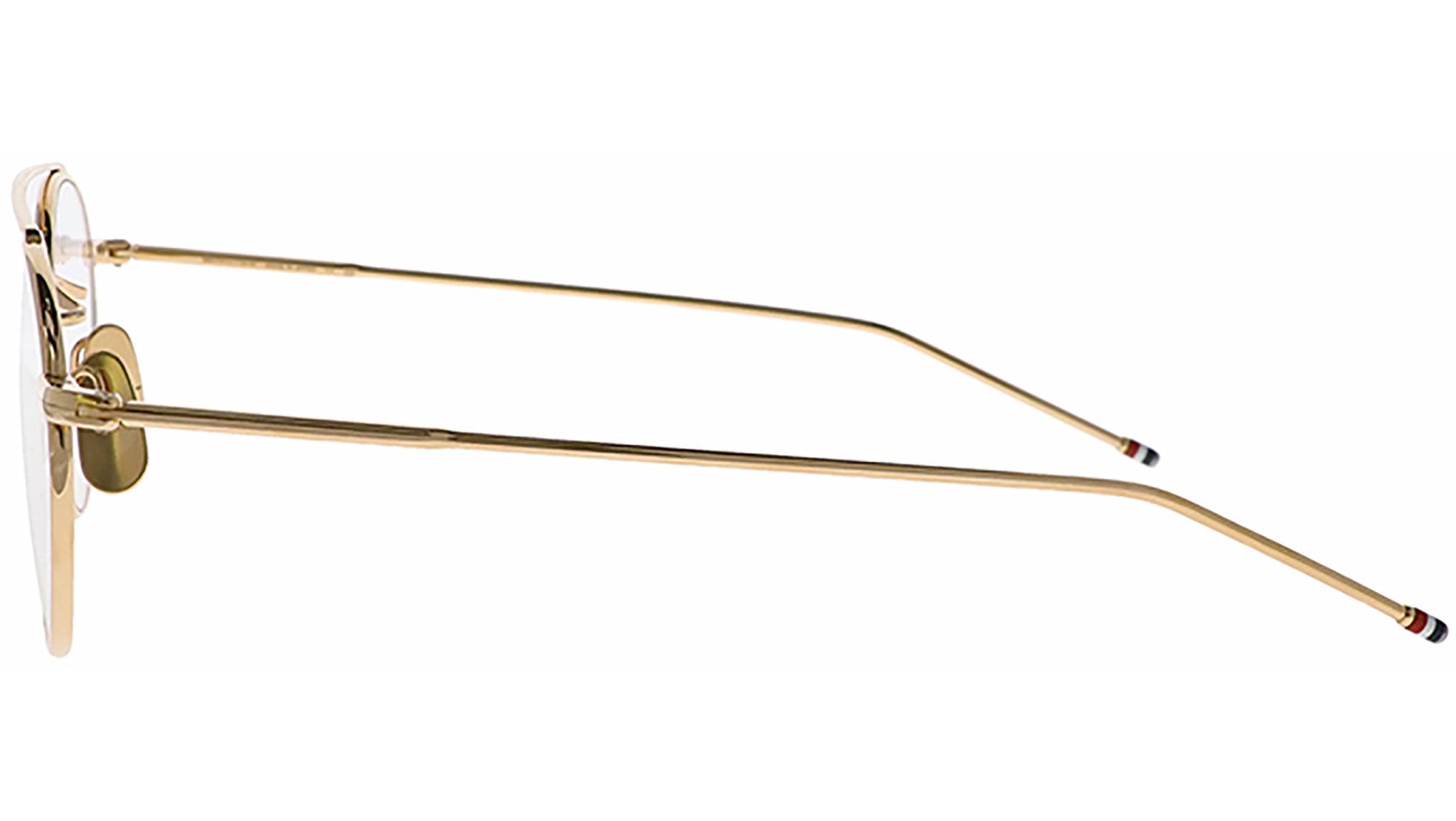 Occhiali da vista Thom Browne unisex modello UEO101A con montatura full-rim in titanio oro e lenti demo. Codice Brand: UEO101A. Codice colore: 715. Rivenditore autorizzato Thom Browne online. Gli occhiali vengono consegnati con custodia e accessori originali e sono coperti da garanzia standard di 12 mesi del produttore.