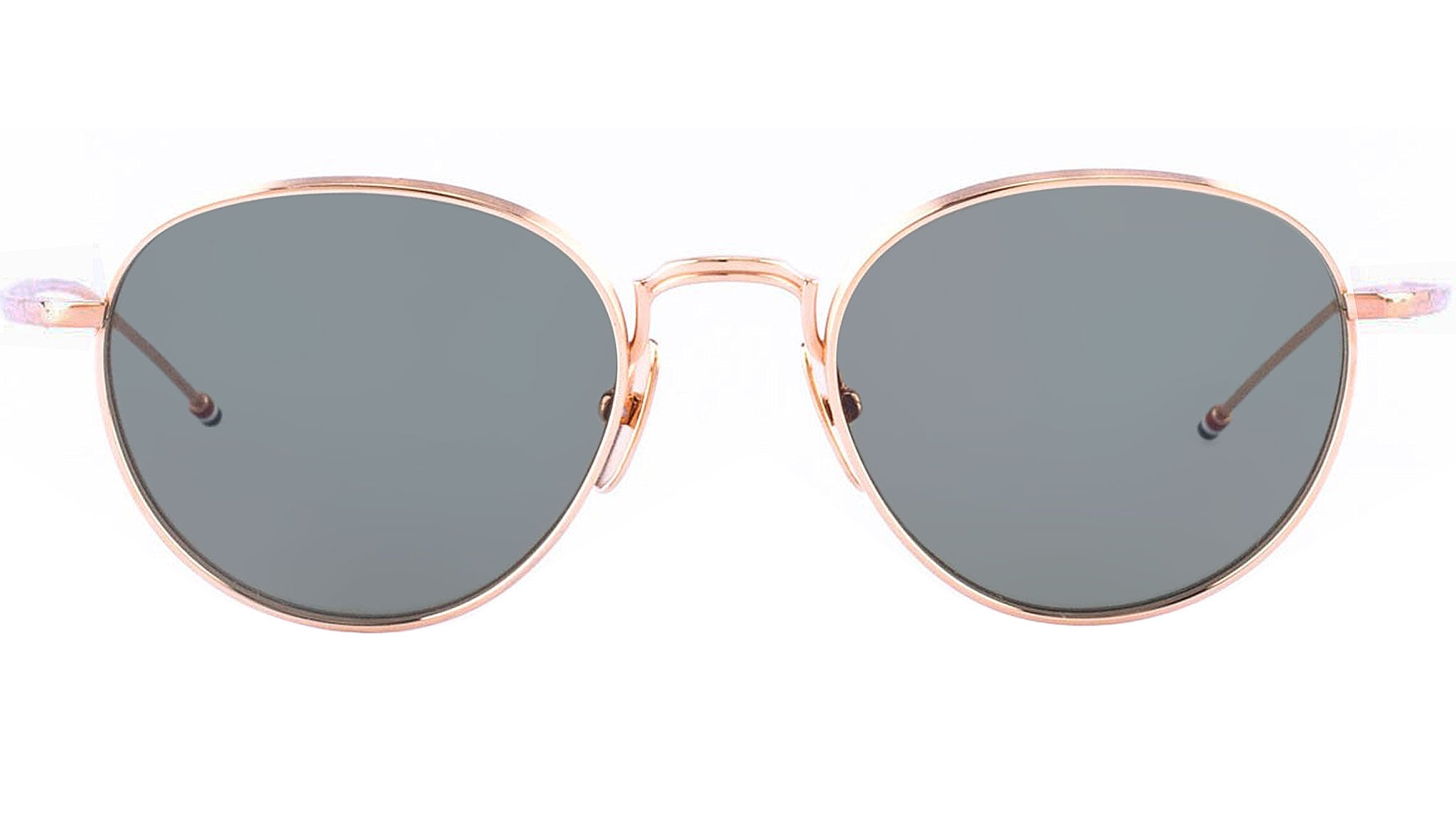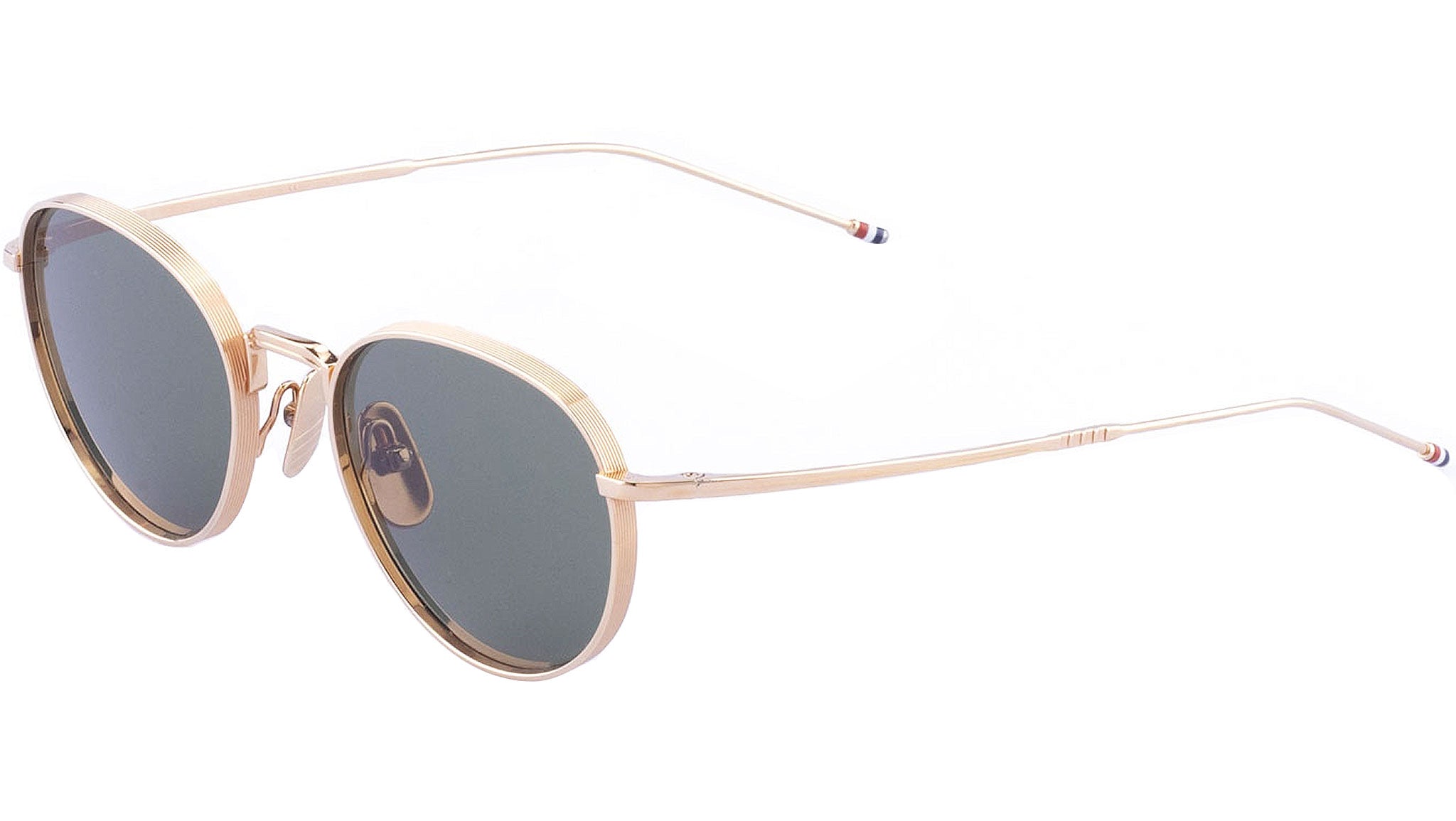 Occhiali da sole Thom Browne unisex modello UES119A con montatura full-rim in titanio oro bianco e lenti color verde. Made in Japan. Codice Brand: UES119A. Codice colore: 711. Rivenditore autorizzato Thom Browne online. Gli occhiali vengono consegnati con custodia e accessori originali e sono coperti da garanzia standard di 12 mesi del produttore.