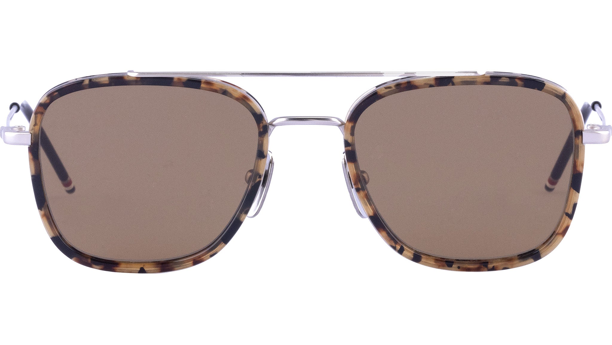 Occhiali da sole Thom Browne unisex modello UES800A con montatura full-rim in acetato-titanio tartaruga marrone e lenti color marrone. Codice Brand: UES800A. Codice colore: 205. Rivenditore autorizzato Thom Browne online. Gli occhiali vengono consegnati con custodia e accessori originali e sono coperti da garanzia standard di 12 mesi del produttore.