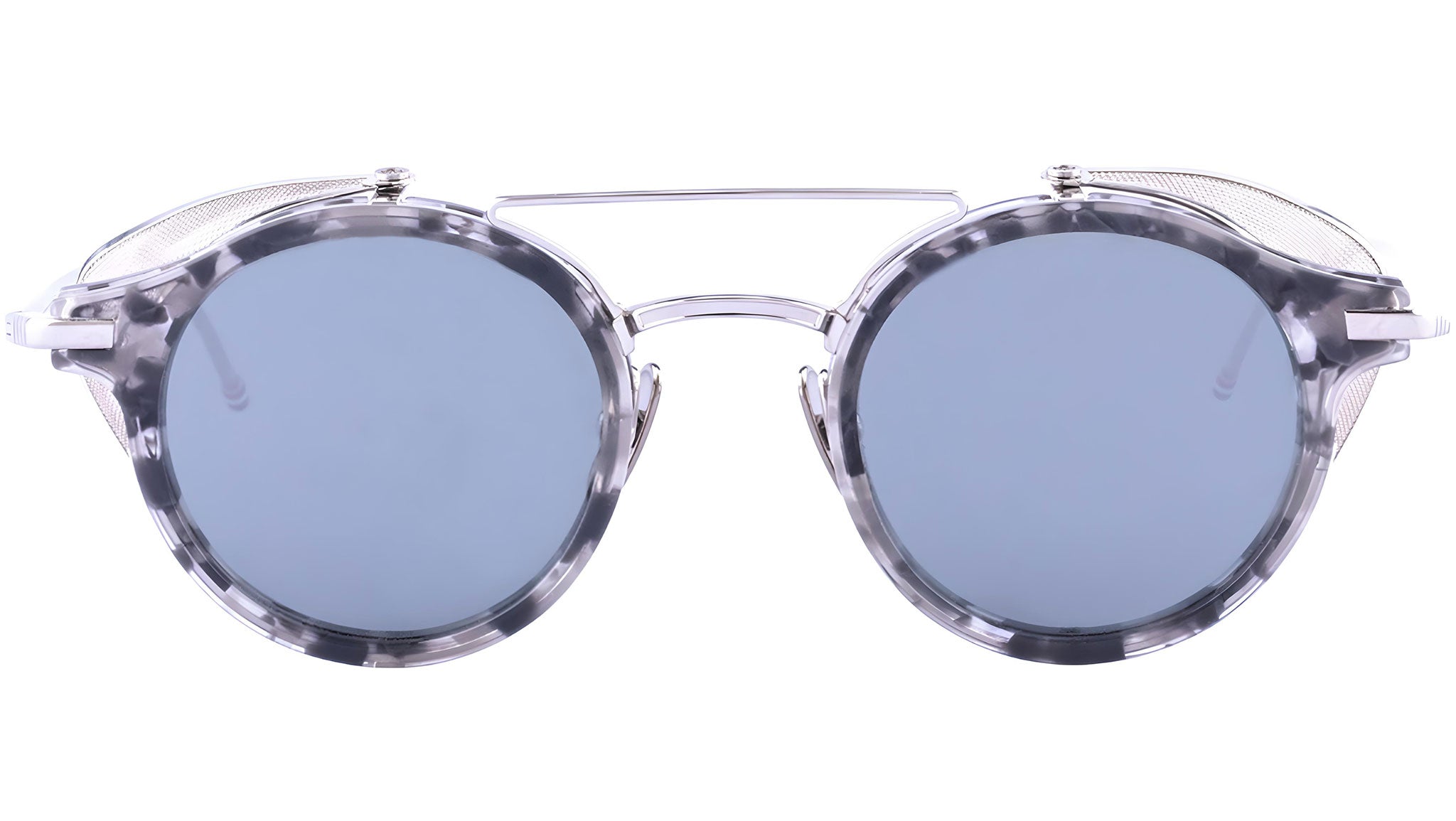 Occhiali da sole Thom Browne unisex modello UES804A con montatura full-rim in acetato tartaruga grigio e lenti color argento a specchio. Codice Brand: UES804A. Codice colore: 020. Rivenditore autorizzato Thom Browne online. Gli occhiali vengono consegnati con custodia e accessori originali e sono coperti da garanzia standard di 12 mesi del produttore.