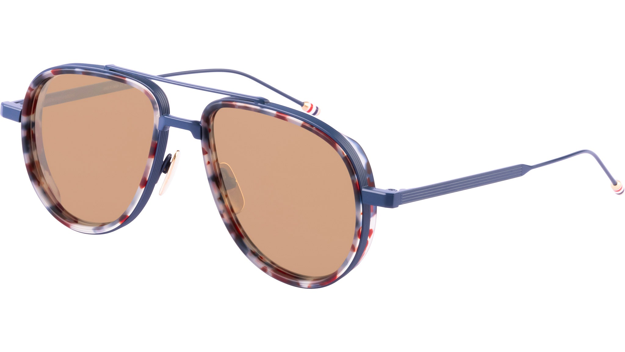Occhiali da sole Thom Browne unisex modello UES929A con montatura full-rim in titanio navy rwb e lenti color marrone flash oro. Forma ovale. Cerniere Signature a 4 barrette. Terminali delle aste smaltati con motivo a righe. Custodia in ecopelle. Made in Japan. Codice Brand: UES929A. Codice colore: 410. Rivenditore autorizzato Thom Browne online. Gli occhiali vengono consegnati con custodia e accessori originali e sono coperti da garanzia standard di 12 mesi del produttore.