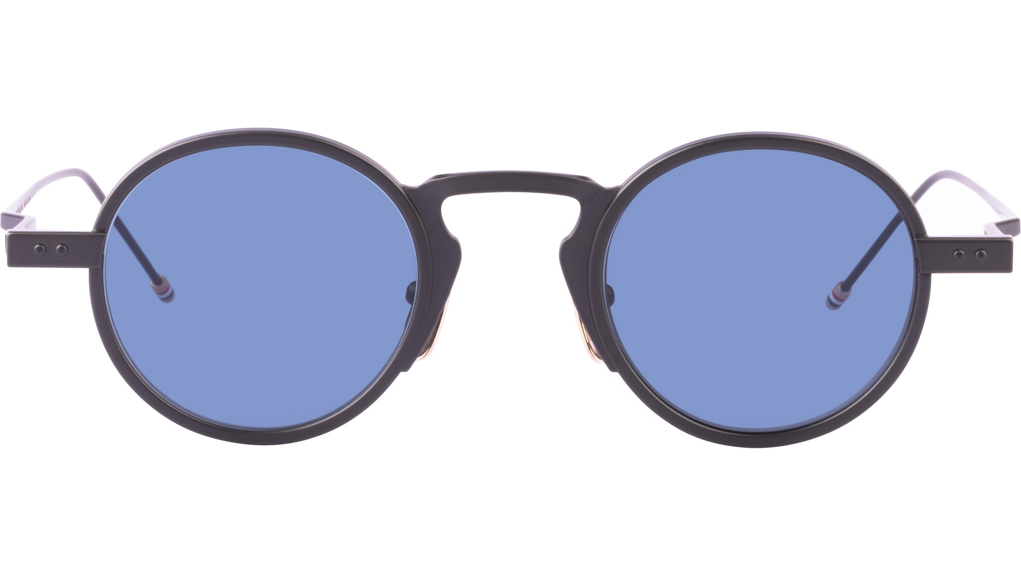 Occhiali da sole Thom Browne unisex modello UES931A con montatura full-rim in titanio nero ferro e lenti color navy scuro. Forma rotonda. Cerniere Signature a 4 barrette. Terminali delle aste smaltati con motivo a righe. Custodia in ecopelle. Made in Japan. Codice Brand: UES931A. Codice colore: 004. Rivenditore autorizzato Thom Browne online. Gli occhiali vengono consegnati con custodia e accessori originali e sono coperti da garanzia standard di 12 mesi del produttore.