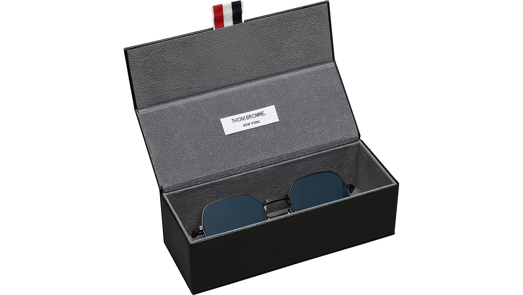 Occhiali da sole Thom Browne unisex modello UES935A con montatura full-rim in titanio nero ferro e lenti color navy scuro. Codice Brand: UES935A. Codice colore: 005. Rivenditore autorizzato Thom Browne online. Gli occhiali vengono consegnati con custodia e accessori originali e sono coperti da garanzia standard di 12 mesi del produttore.
