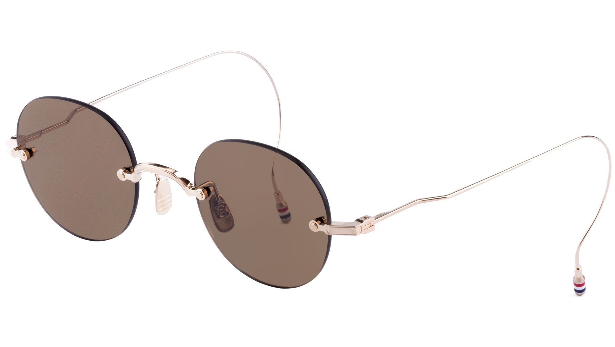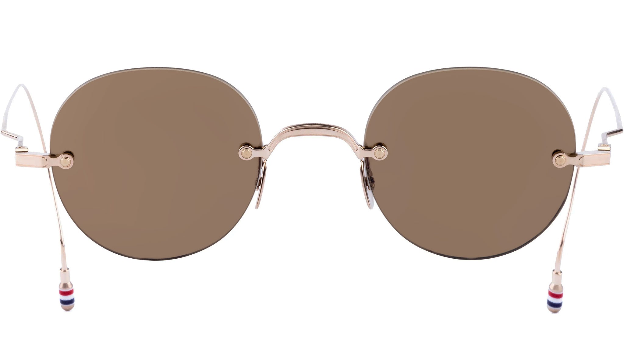 Occhiali da sole Thom Browne unisex modello UES937A con montatura rimless in titanio oro e lenti color marrone. Codice Brand: UES937A. Codice colore: 711. Rivenditore autorizzato Thom Browne online. Gli occhiali vengono consegnati con custodia e accessori originali e sono coperti da garanzia standard di 12 mesi del produttore.