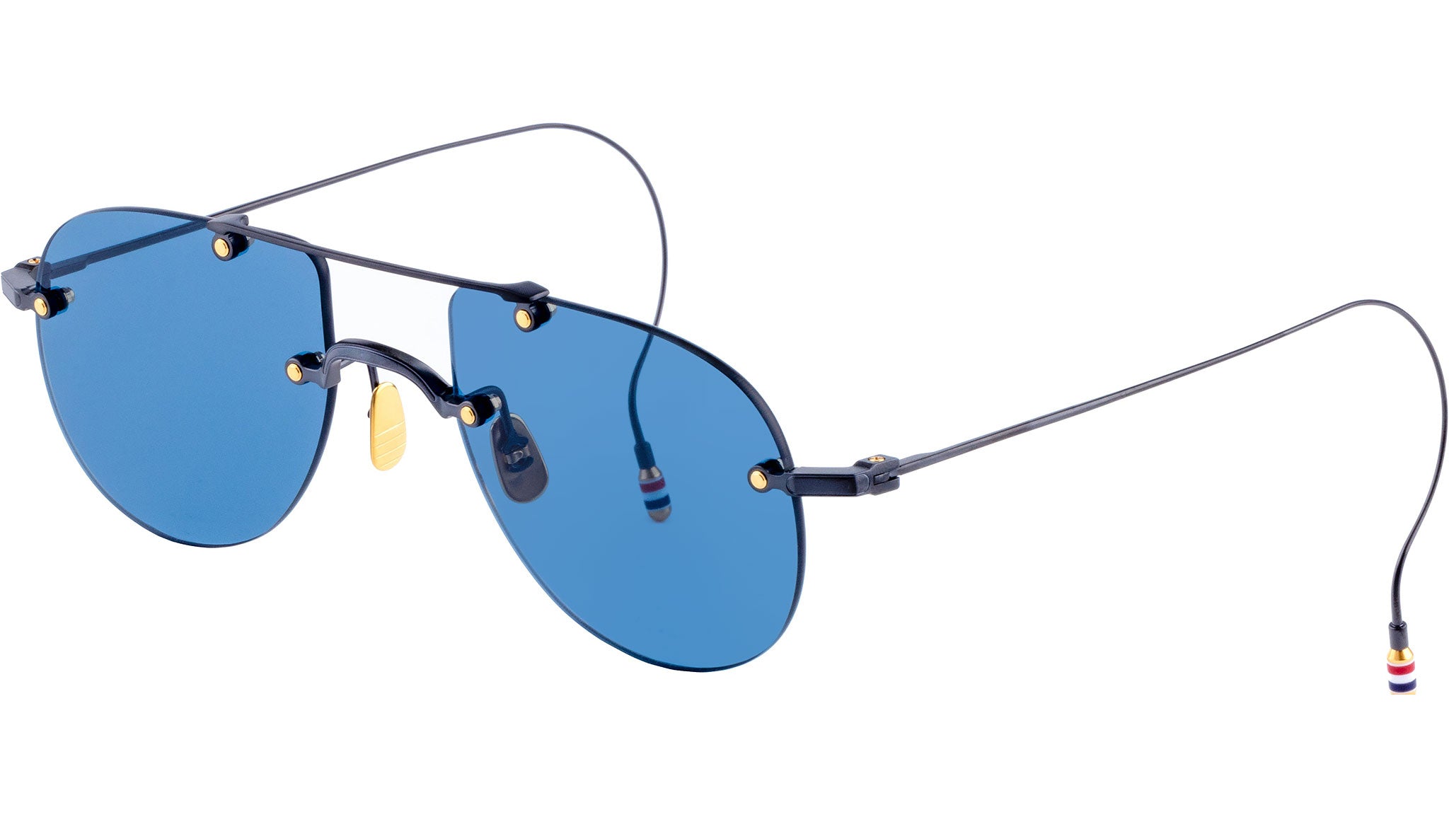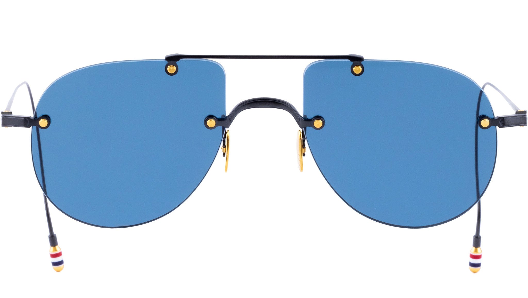 Occhiali da sole Thom Browne unisex modello UES939A con montatura rimless in titanio nero ferro e lenti color navy scuro. Codice Brand: UES939A. Codice colore: 005. Rivenditore autorizzato Thom Browne online. Gli occhiali vengono consegnati con custodia e accessori originali e sono coperti da garanzia standard di 12 mesi del produttore.