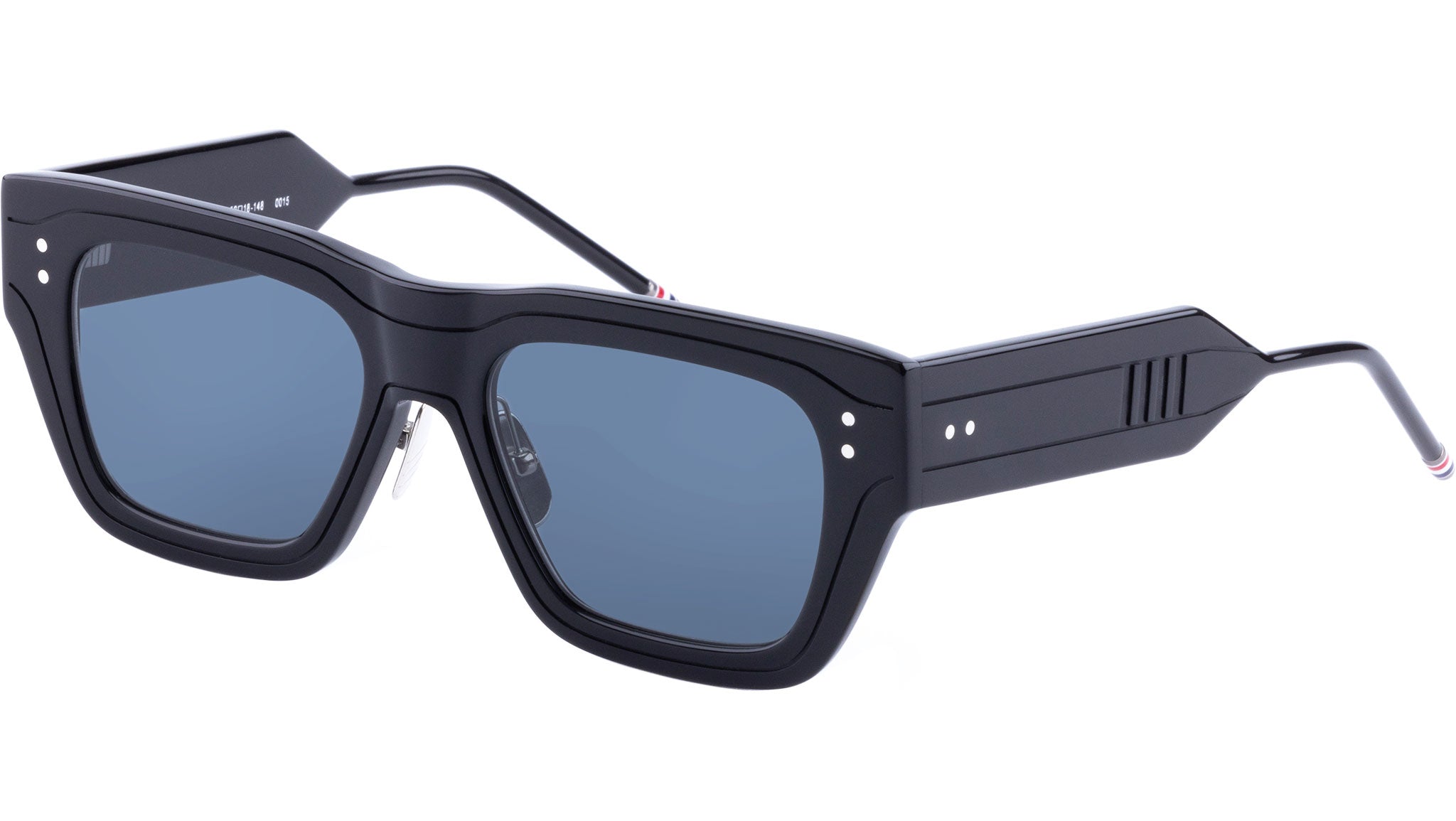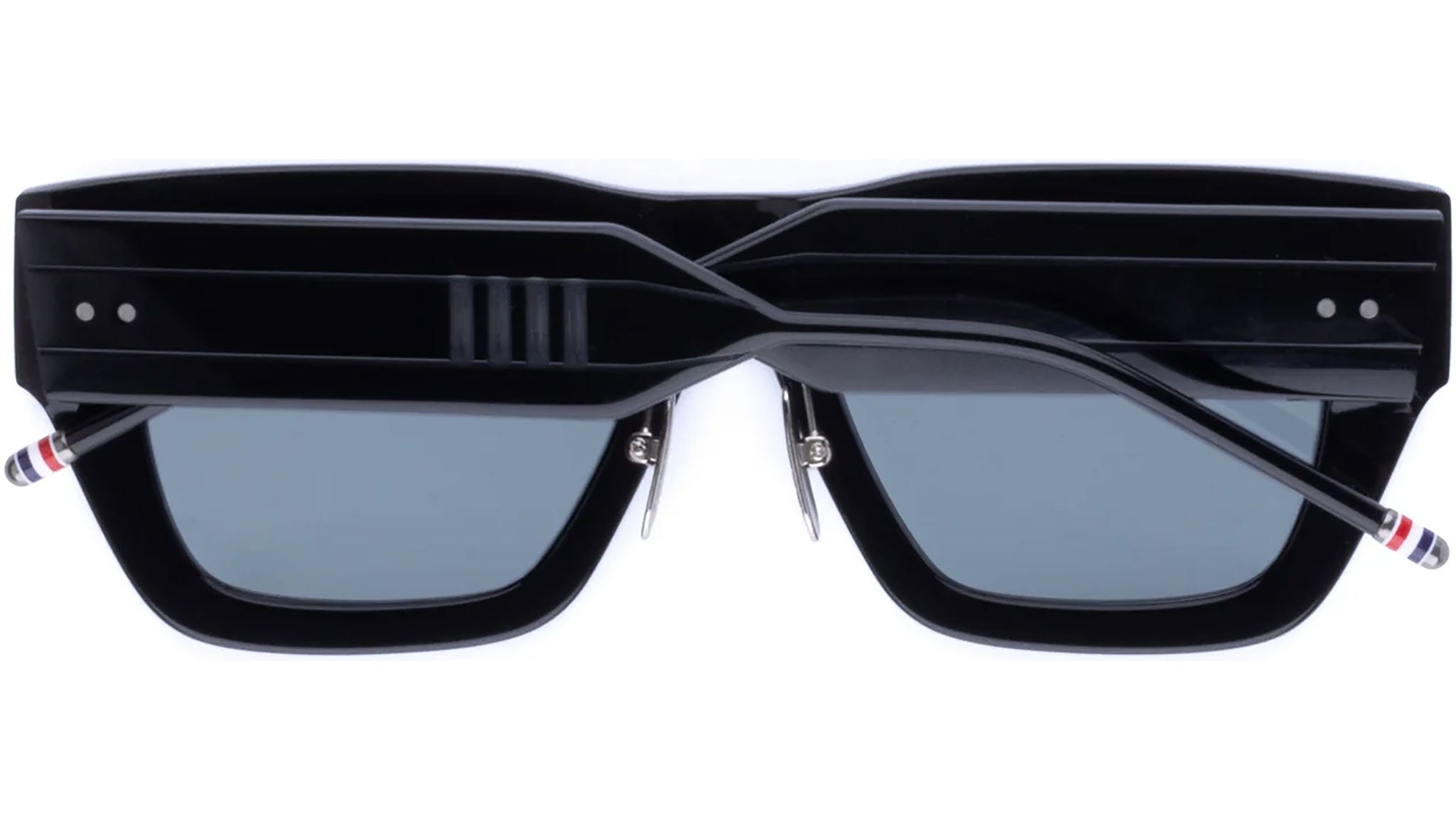 Occhiali da sole Thom Browne unisex modello UES947A con montatura full-rim in acetato nero lucido e lenti color grigio scuro. Codice Brand: UES947A. Codice colore: 001. Rivenditore autorizzato Thom Browne online. Gli occhiali vengono consegnati con custodia e accessori originali e sono coperti da garanzia standard di 12 mesi del produttore.