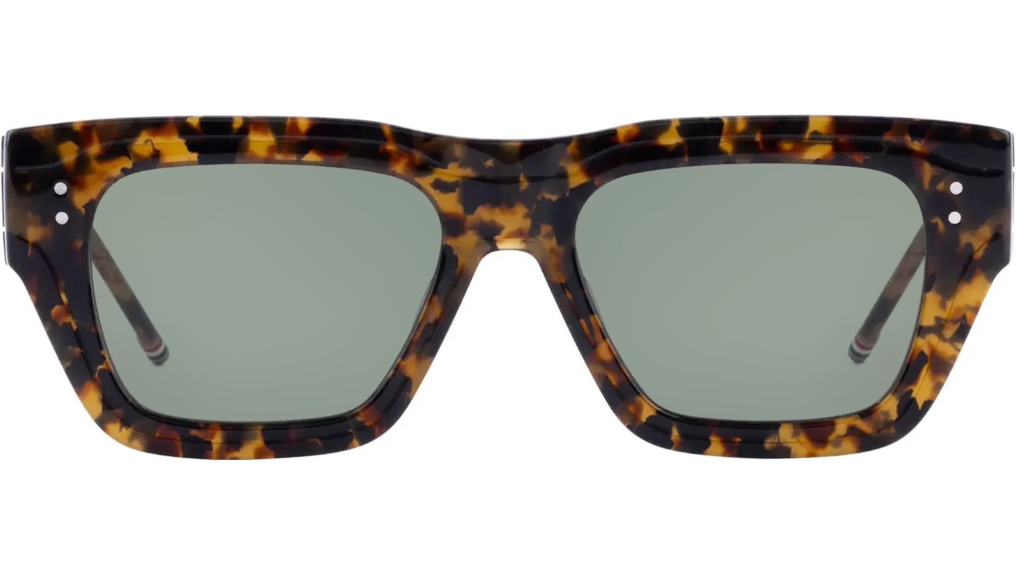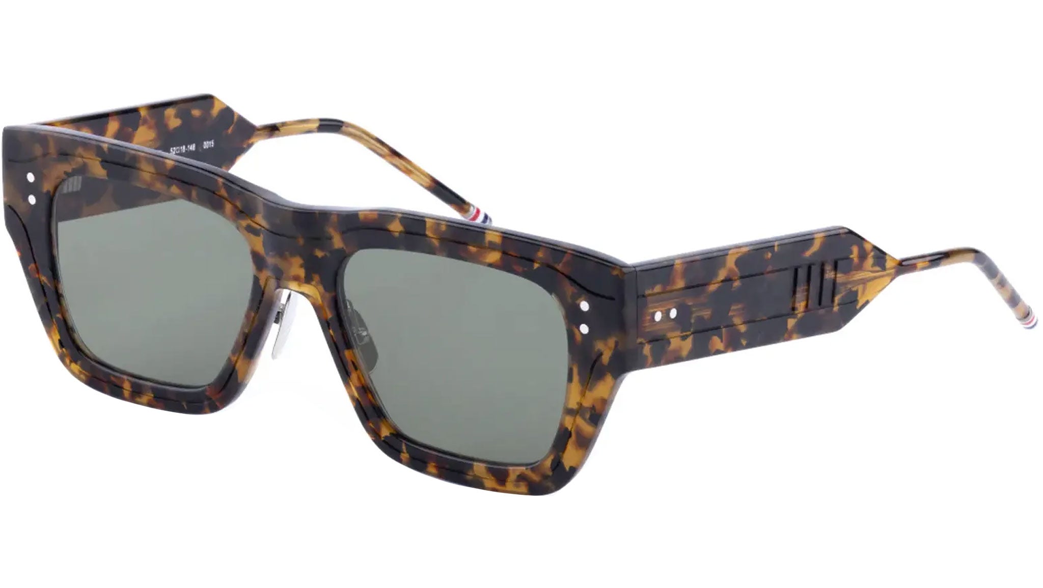 Occhiali da sole Thom Browne unisex modello UES947A con montatura full-rim in acetato tartaruga tokyo e lenti color verde G-15. Codice Brand: UES947A. Codice colore: 205. Rivenditore autorizzato Thom Browne online. Gli occhiali vengono consegnati con custodia e accessori originali e sono coperti da garanzia standard di 12 mesi del produttore.