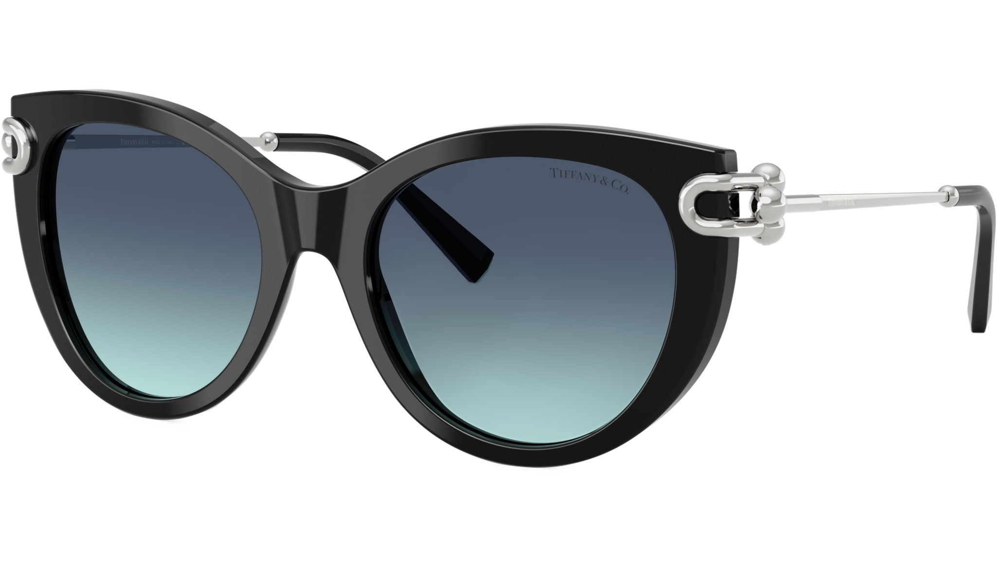 Occhiali da sole Tiffany donna modello TF4232 83429S con montatura a farfalla in acetato nero e lenti in bio poliammide blu azzurro sfumato base 4. Vestibilità a ponte alto. Linea: Icons. Codice Brand: 0TF4232. Codice colore: 83429S. Rivenditore autorizzato online Tiffany Eyewear. Ogni prodotto Tiffany viene consegnato con astuccio originale e accessori ed è coperto da garanzia del produttore di 12 mesi.