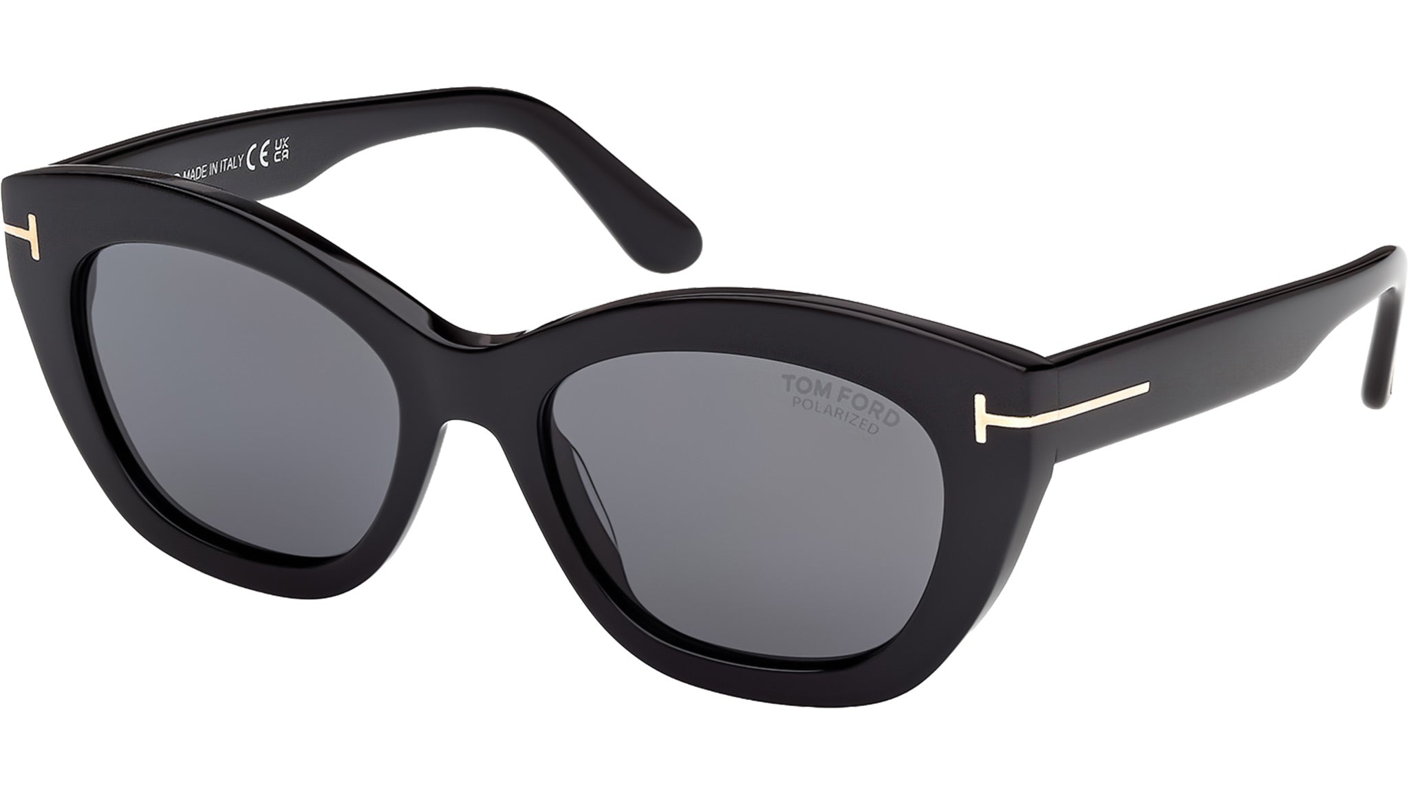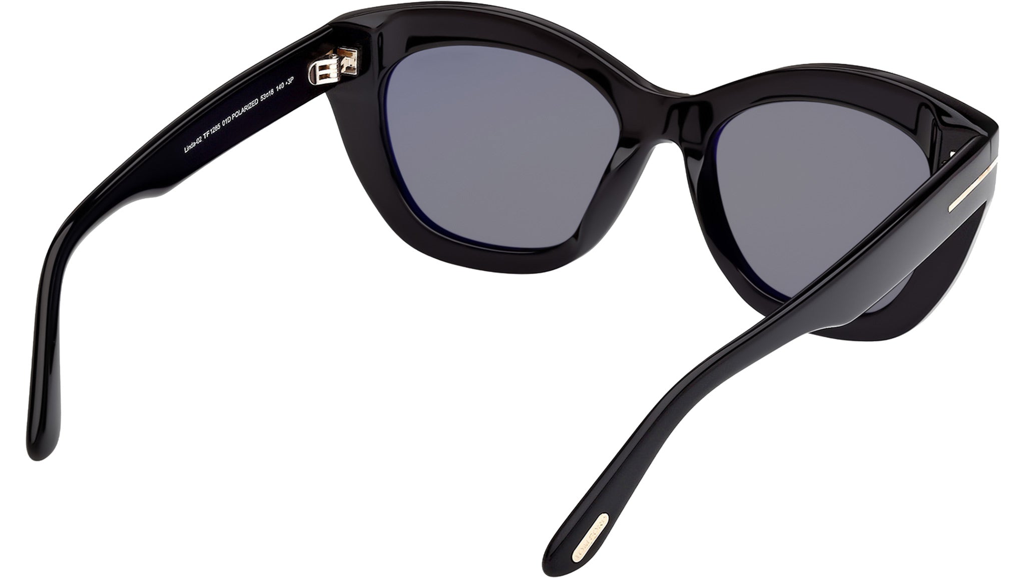 Occhiali da sole Tom Ford donna modello Linda FT1285 con montatura a farfalla full-rim nero lucido in acetato e lenti color grigio fumo polarizzato. Codice Brand: 1285. Codice colore: 01D. Rivenditore autorizzato Tom Ford online. Gli occhiali vengono consegnati con custodia e accessori originali e sono coperti da garanzia standard di 12 mesi del produttore.