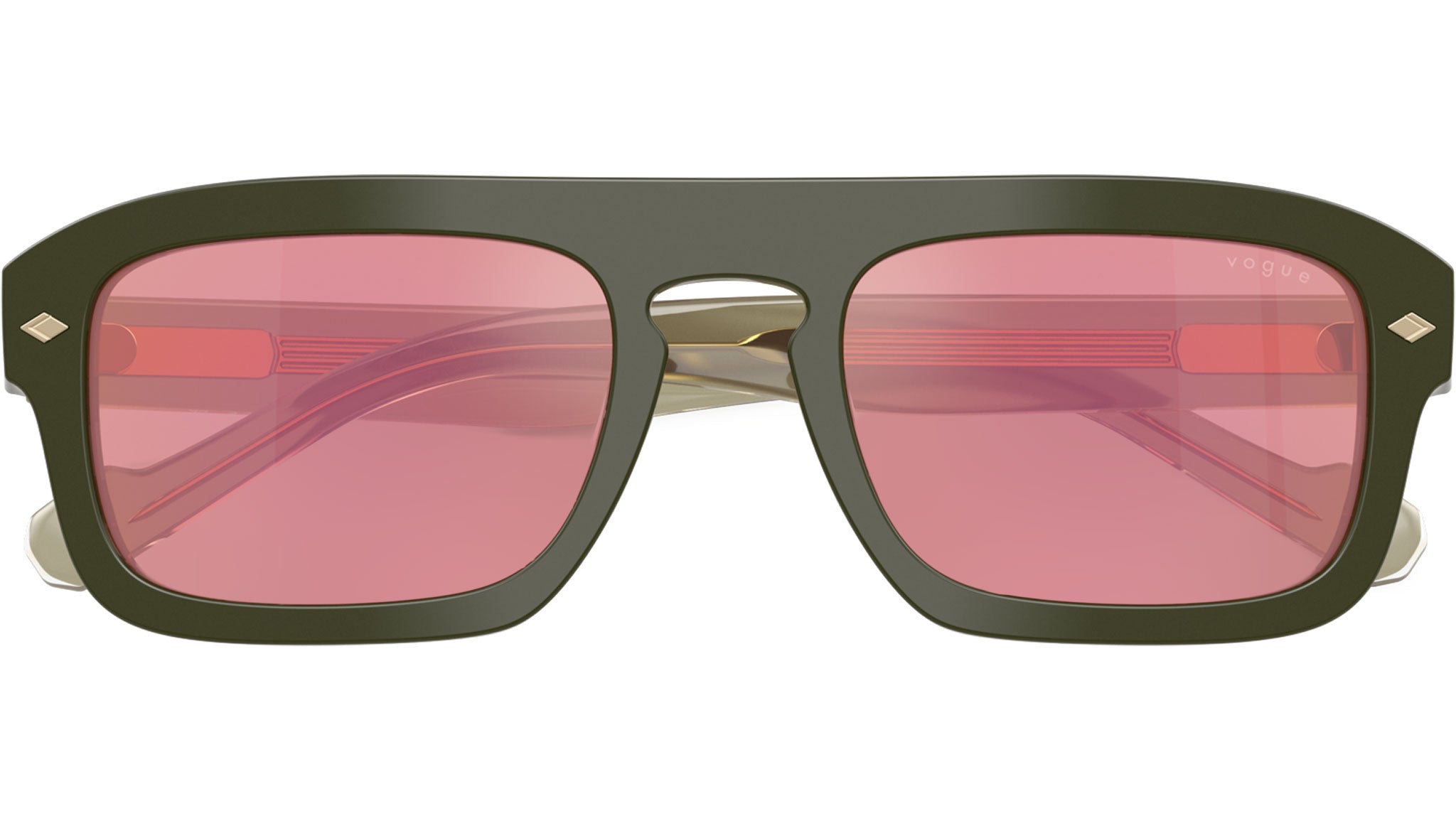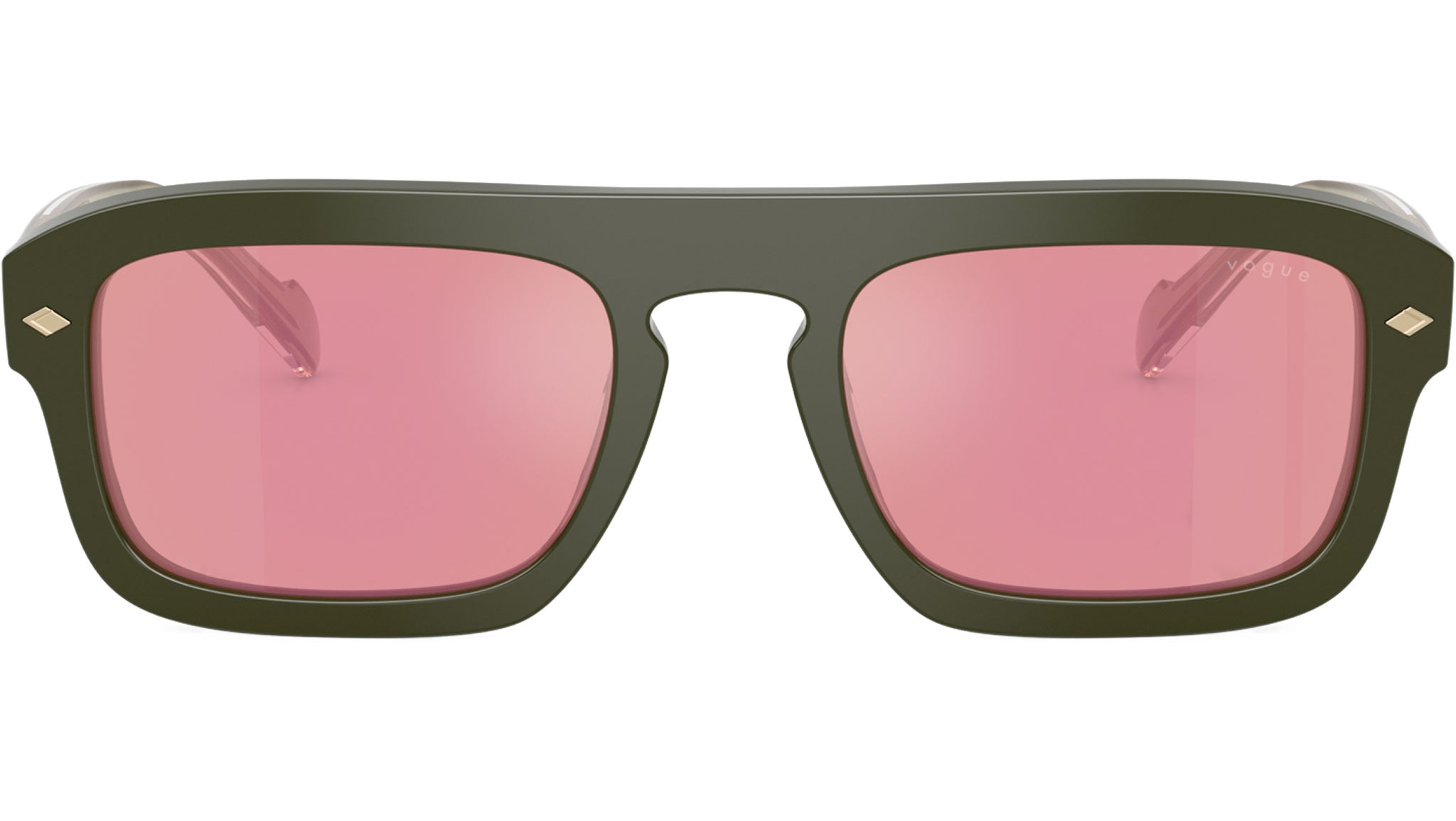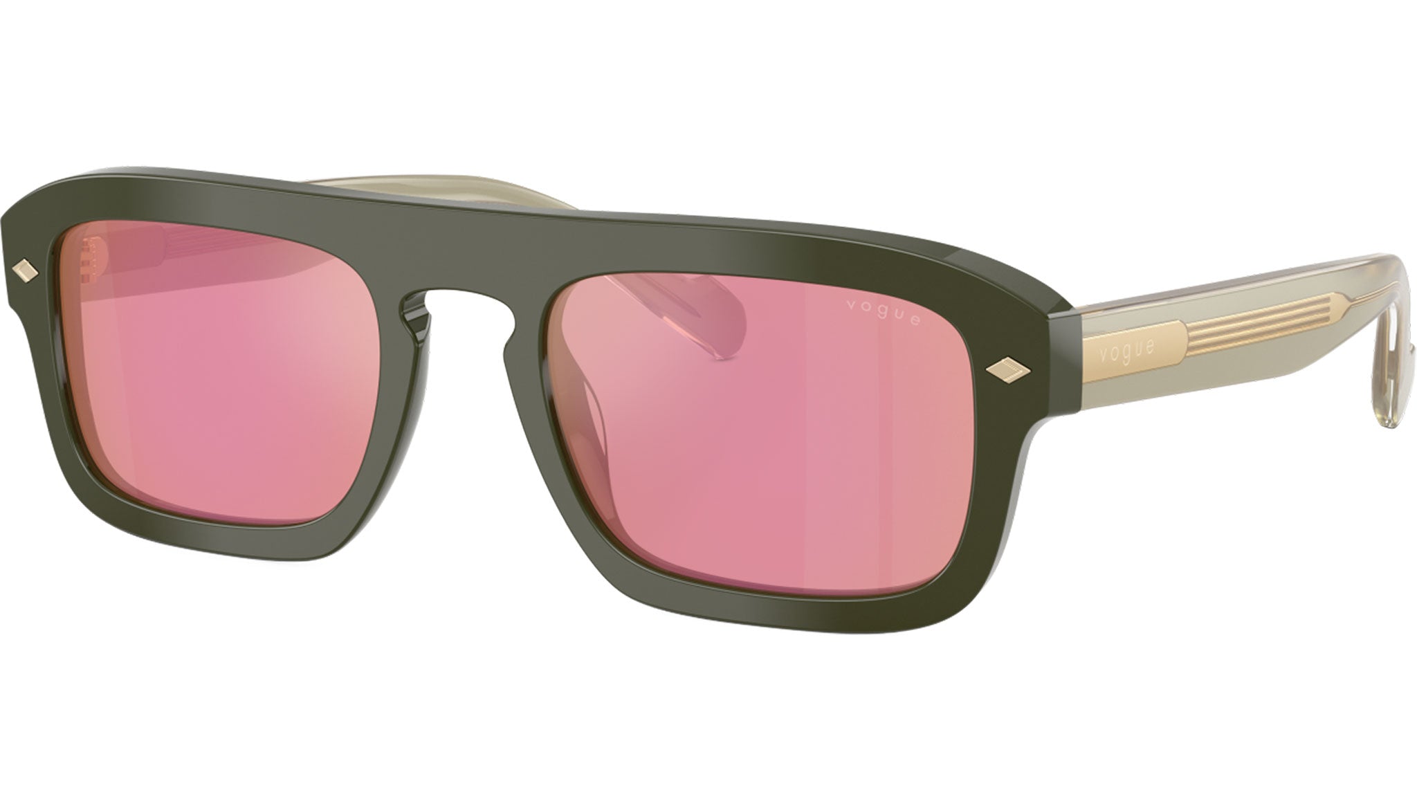 Occhiali da sole Vogue uomo modello VO5620S 3217F6 con montatura geometrica in acetato verde solido e lenti base 2 in bio poliammide rosa scuro a specchio rosso. Vestibilità a ponte alto. Linea: Man. Codice Brand: 0VO5620S. Codice colore: 3217F6. Rivenditore autorizzato online Vogue Eyewear. Ogni prodotto Vogue viene consegnato con astuccio originale e accessori ed è coperto da garanzia del produttore di 12 mesi.
