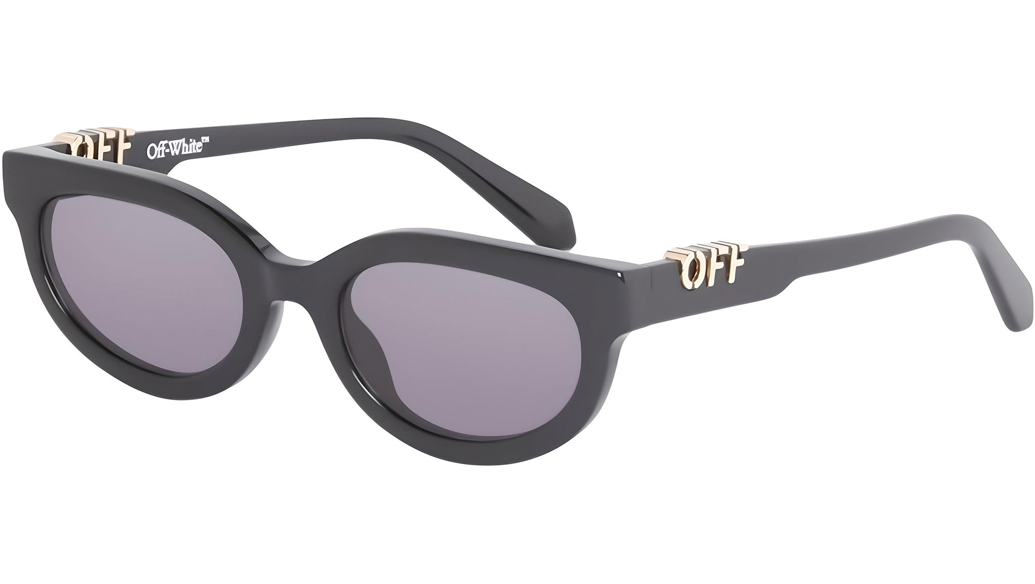 Occhiali da sole Off-White modello Sparks codice colore 1007 con frontale in acetato nero tinta unita e lenti cat. 3 in polimero CR-39 grigio scuro. Rivenditore autorizzato Off-White Eyewear online. Gli occhiali vengono consegnati con custodia e accessori originali e sono coperti dalla garanzia ufficiale di 12 mesi del produttore.