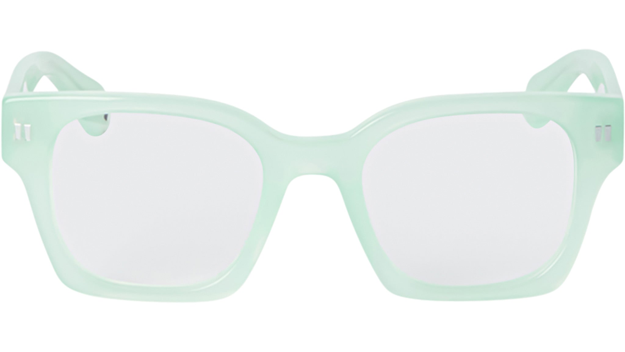 Style 7U di Off-White presenta montature geometriche in acetato con profili puliti e linee nette, caratterizzate da una silhouette quadrata che si allarga leggermente sui lati per un tocco moderno. Le iconiche virgolette Off-White™ compaiono come un delicato dettaglio metallico sulla parte anteriore della montatura, un sottile omaggio alle origini del brand. Il logo con lettering è realizzato come elemento metallico 3D sulle aste, aggiungendo un altro carattere distintivo. Disponibile in quattro colori versatili—due tonalità piene, nero e avana scuro, e due varianti lattiginose, beige e verde salvia—unisce un design senza tempo con un branding contemporaneo.