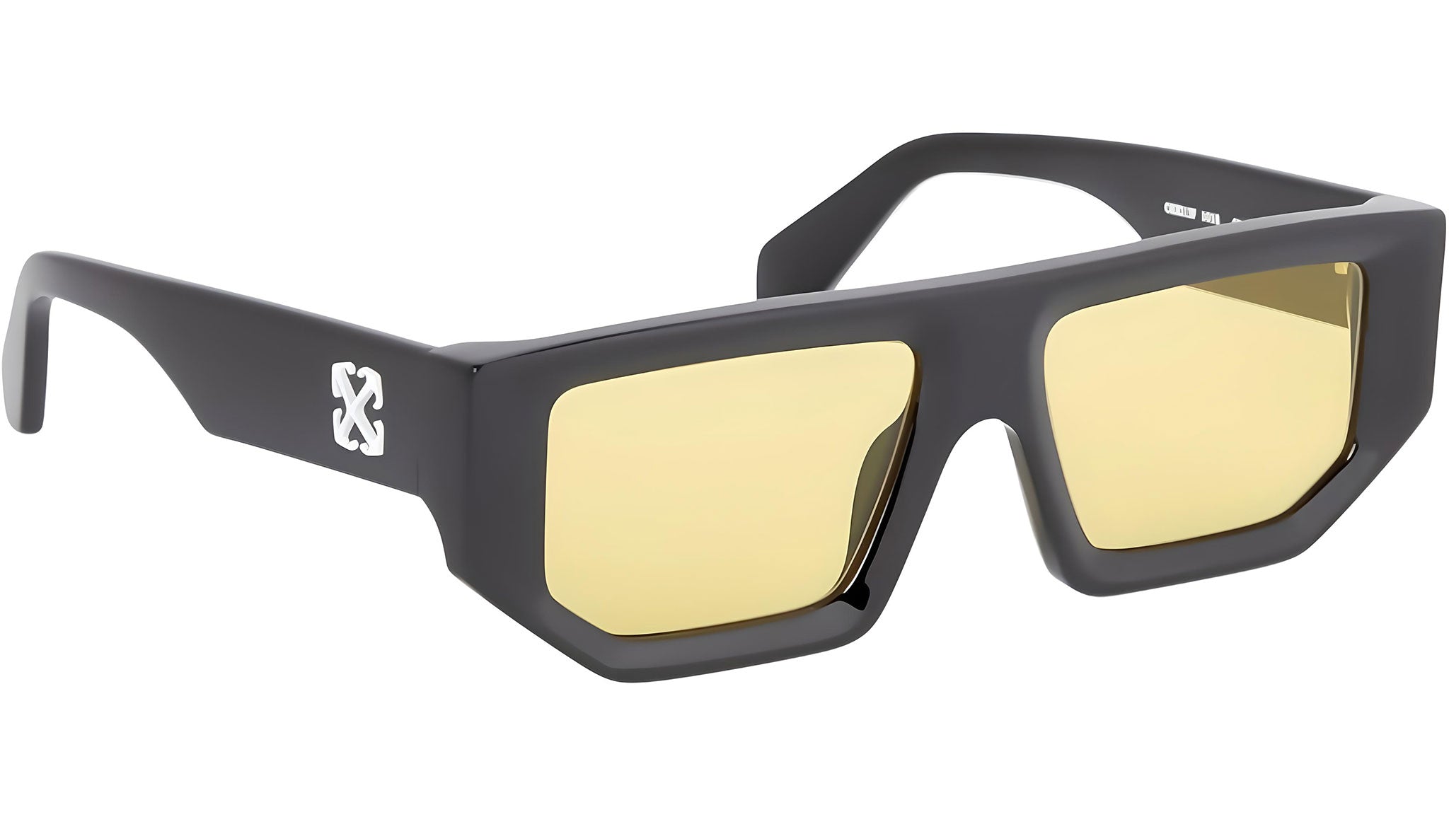 Occhiali da sole Off-White modello Vancouver codice colore 1018 con frontale in acetato nero e lenti cat. 1 in polimero CR-39 giallo. Rivenditore autorizzato Off-White Eyewear online. Gli occhiali vengono consegnati con custodia e accessori originali e sono coperti dalla garanzia ufficiale di 12 mesi del produttore.