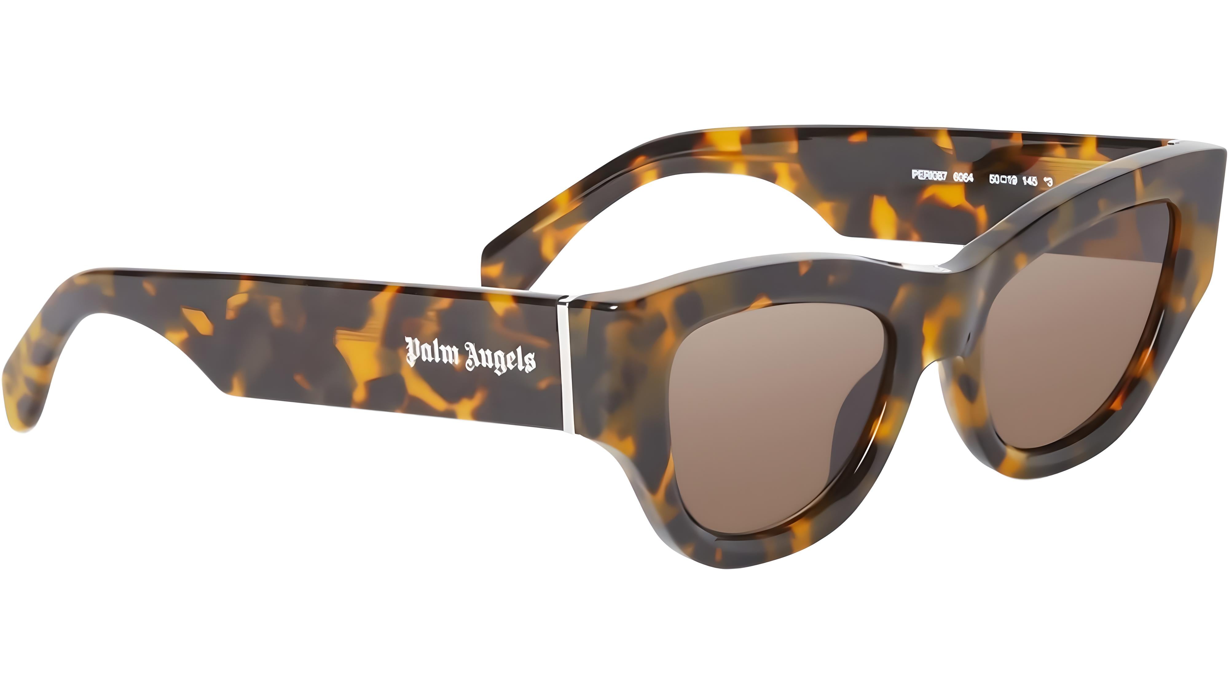 Occhiali da sole Palm Angels modello June codice colore 6064 con frontale in acetato avana e lenti category 3 in nylon marrone. Rivenditore autorizzato Palm Angels Eyewear online. Gli occhiali vengono consegnati con custodia e accessori originali e sono coperti dalla garanzia ufficiale di 12 mesi del produttore.