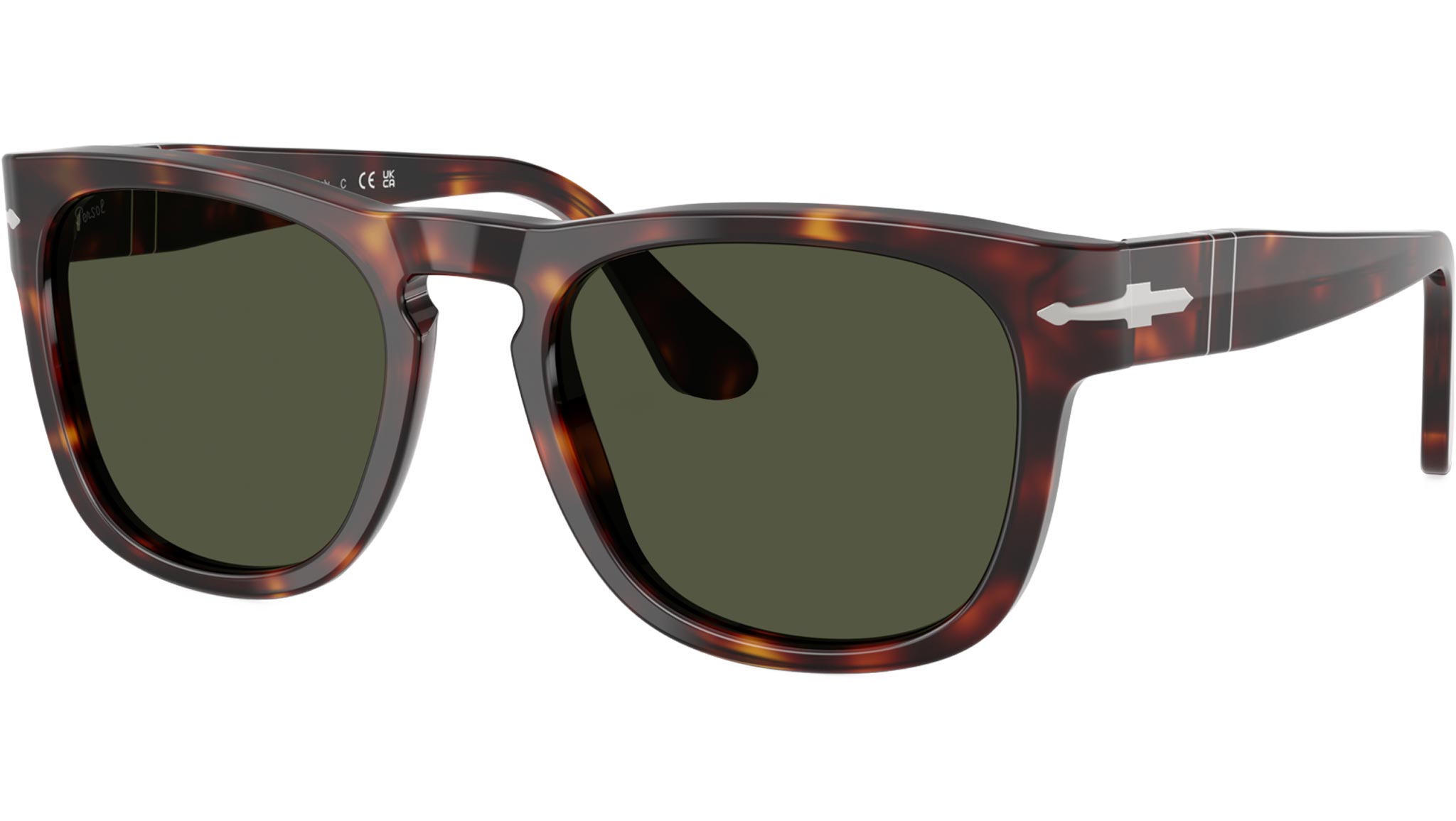 Occhiali da sole Persol unisex modello PO3333S 24/31 con montatura squadrata in acetato avana e lenti in cristallo verde base 6. Vestibilità a ponte alto. Linea: Icona Galleria. Codice Brand: 0PO3333S. Codice colore: 24/31. Rivenditore autorizzato online Persol Eyewear. Ogni prodotto Persol viene consegnato con astuccio originale e accessori ed è coperto da garanzia del produttore di 12 mesi.