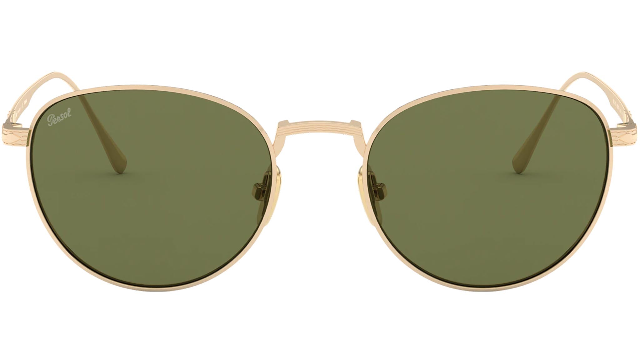 Occhiali da sole Persol modello PO5002ST codice colore 80004E con montatura color oro full rim titanio e lenti in CR-39 color verde.
