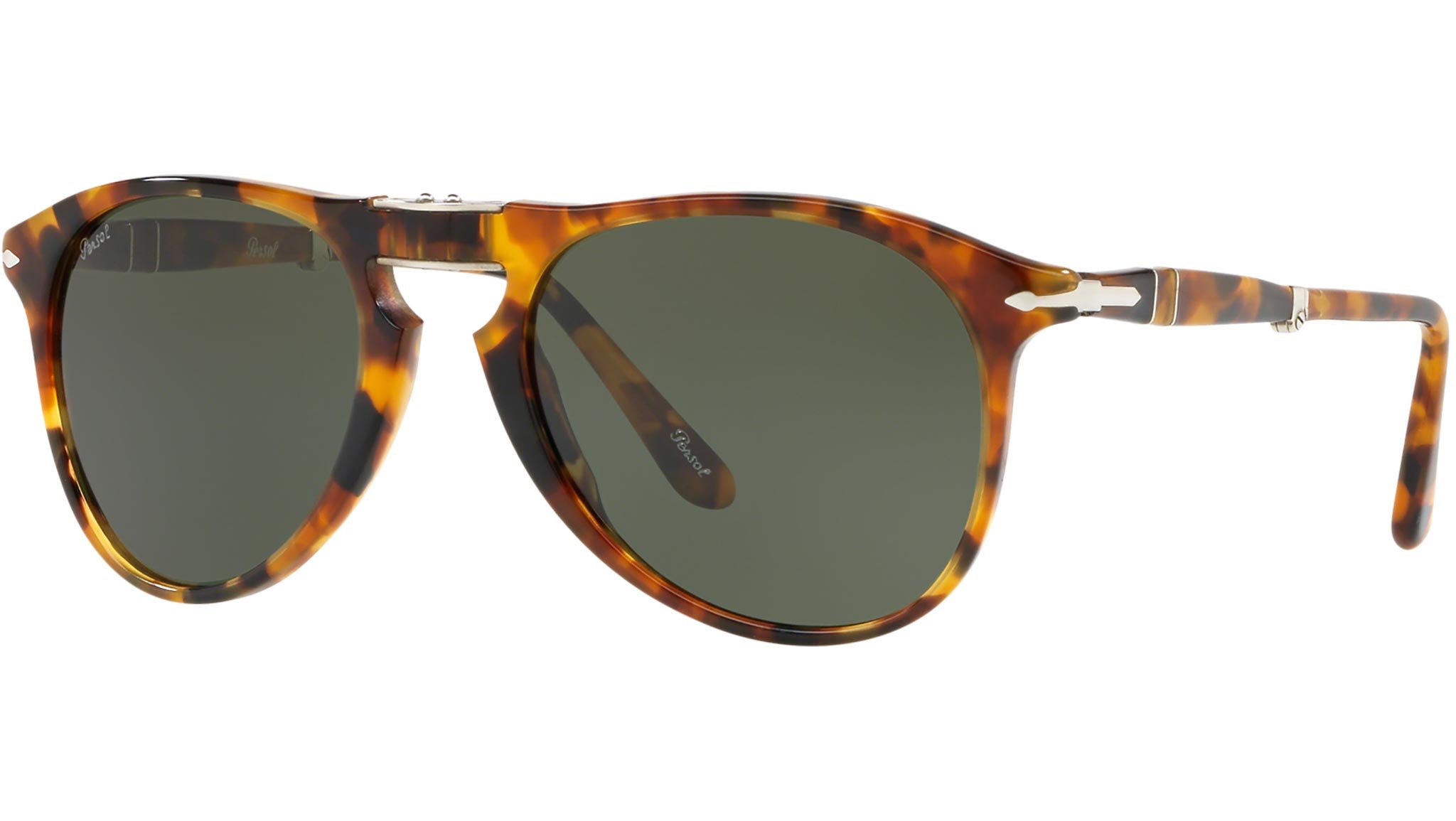 Occhiali da sole Persol modello PO9714S codice colore 105231 con montatura color marrone terra full rim acetato e lenti in vetro color verde.