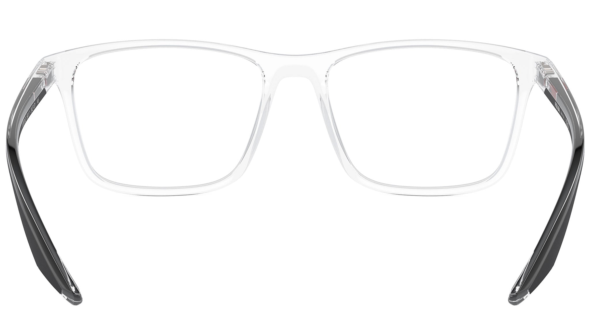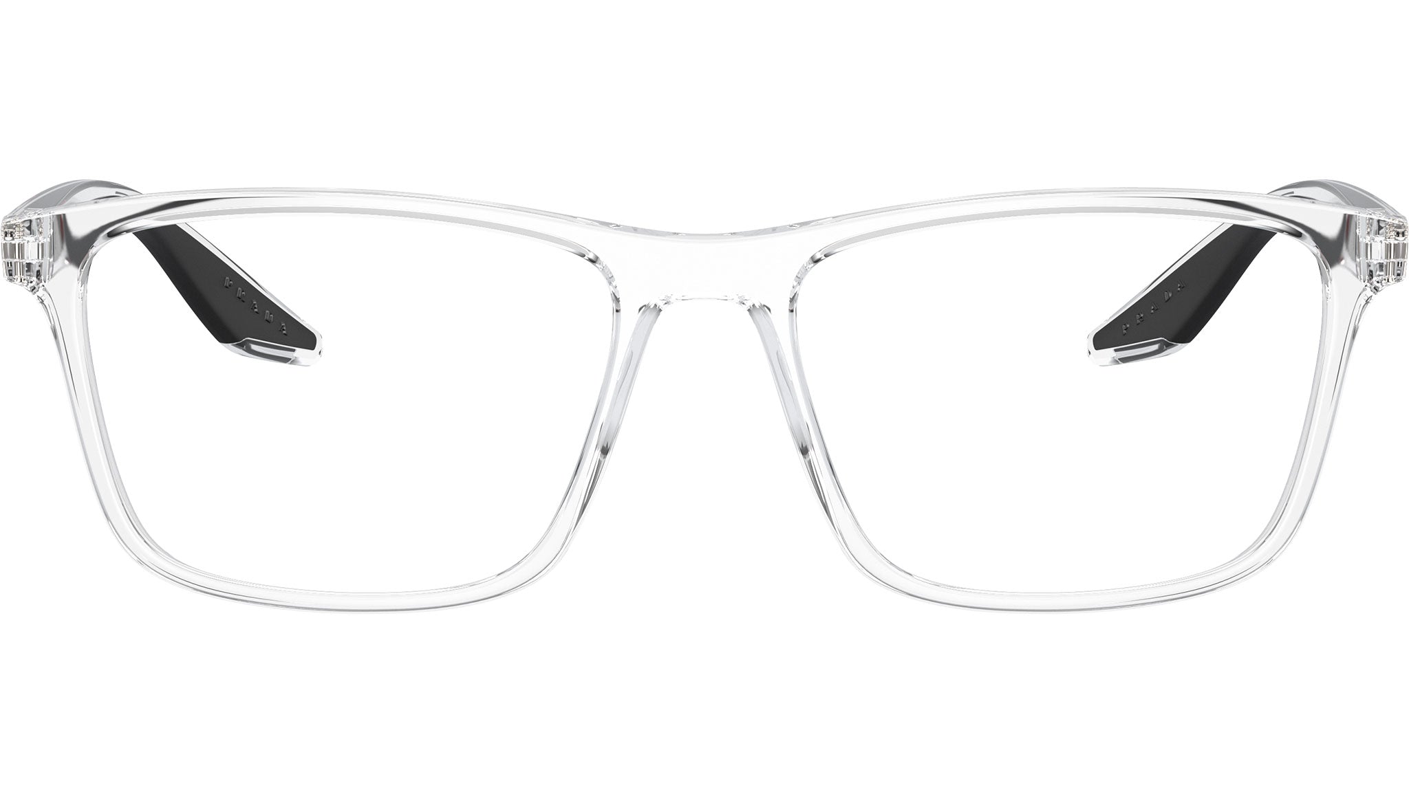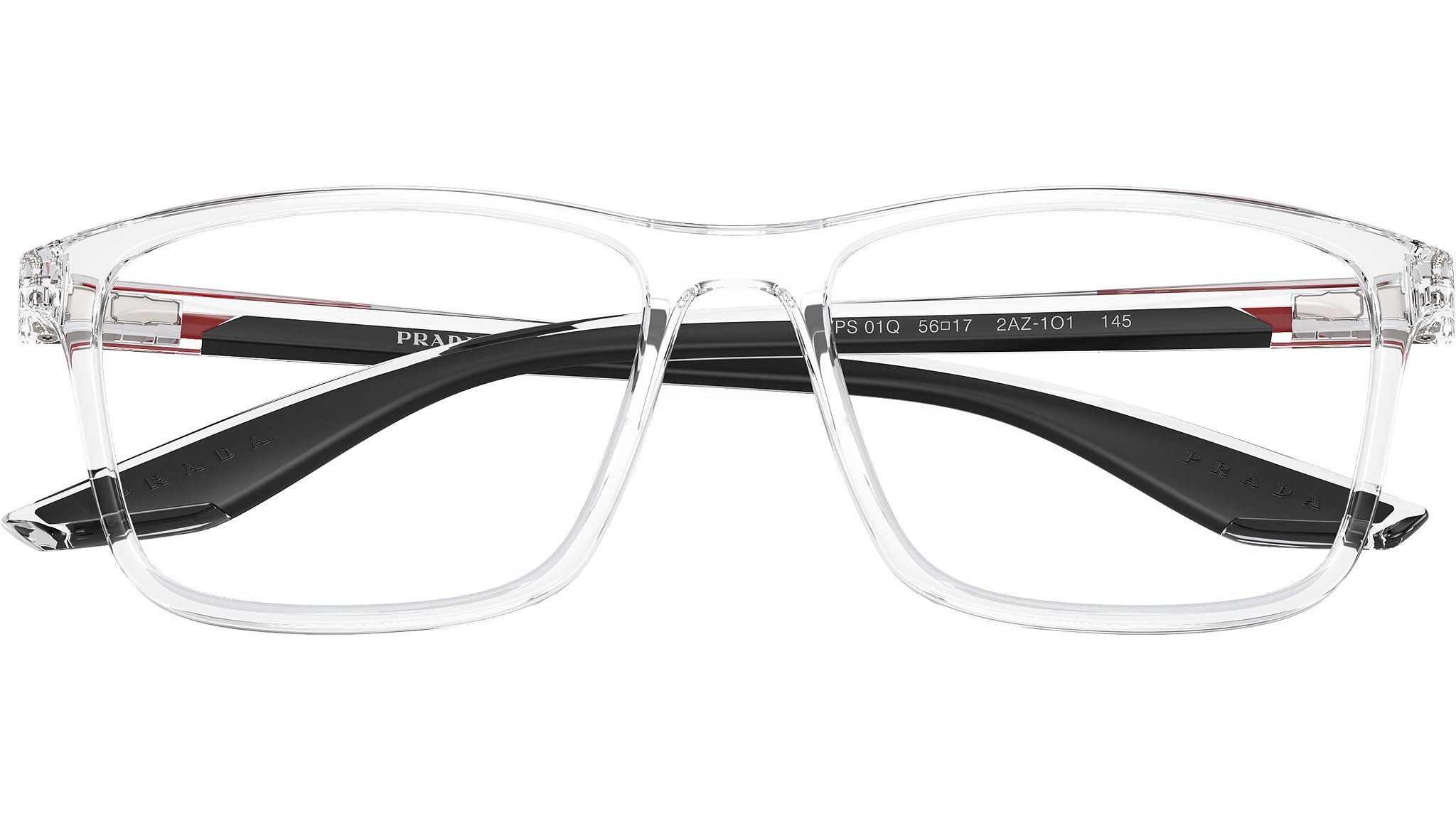 Occhiali da vista Prada Linea Rossa modello PS 01QV codice colore 2AZ1O1 con montatura d-frame full rim in nylon color trasparente e lenti demo. Rivenditore autorizzato Prada. Ogni prodotto Prada Linea Rossa viene consegnato con astuccio originale e accessori.