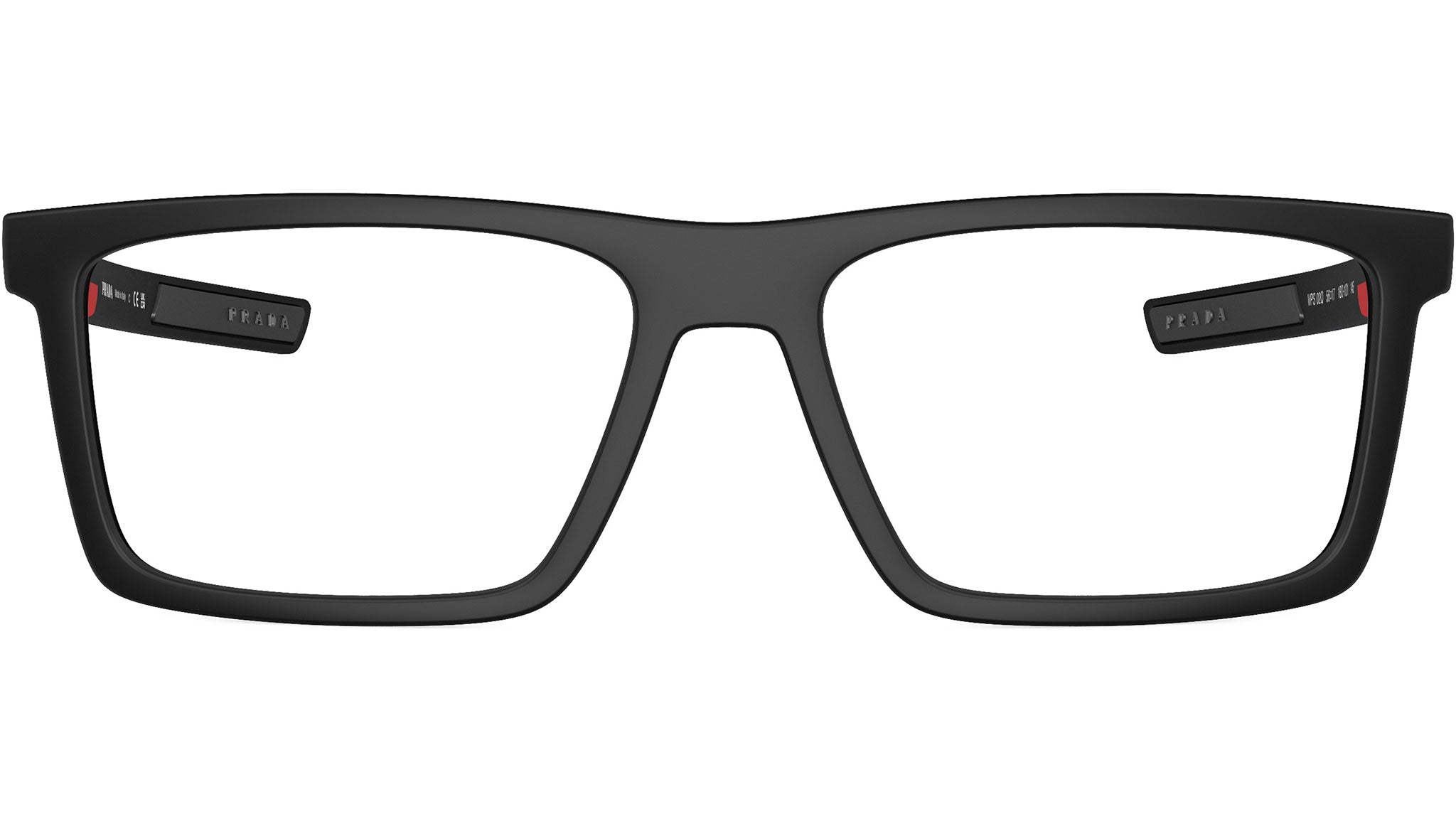 Occhiali da vista Prada Linea Rossa modello PS 02QV codice colore 1BO1O1 con montatura rettangolare full rim in nylon color nero opaco e lenti demo. Rivenditore autorizzato Prada. Ogni prodotto Prada Linea Rossa viene consegnato con astuccio originale e accessori.
