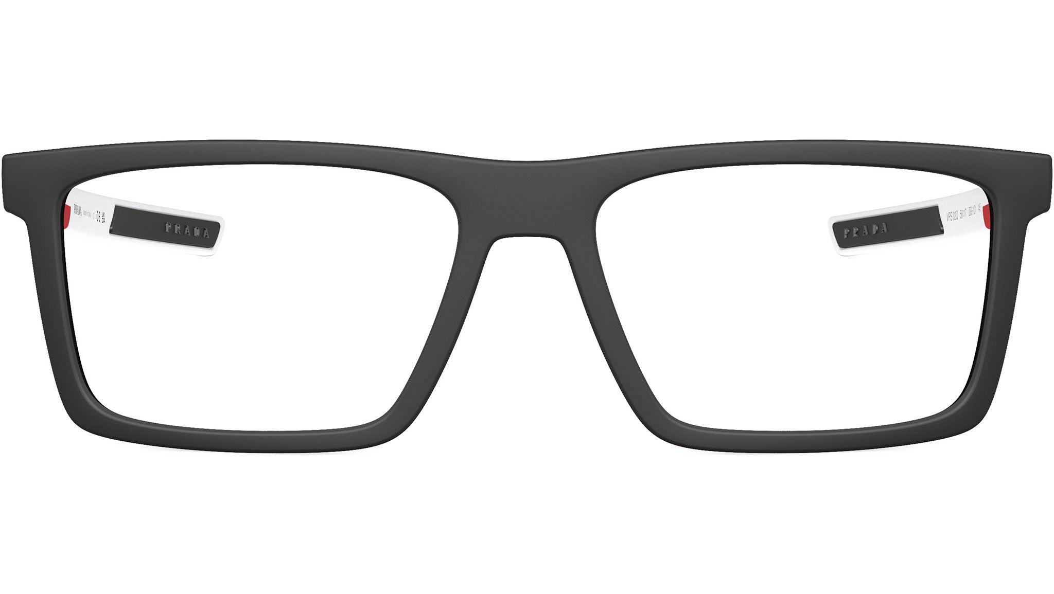 Occhiali da vista Prada Linea Rossa modello PS 02QV codice colore DG01O1 con montatura rettangolare full rim in iniettato color nero gommato e lenti demo. Rivenditore autorizzato Prada. Ogni prodotto Prada Linea Rossa viene consegnato con astuccio originale e accessori.