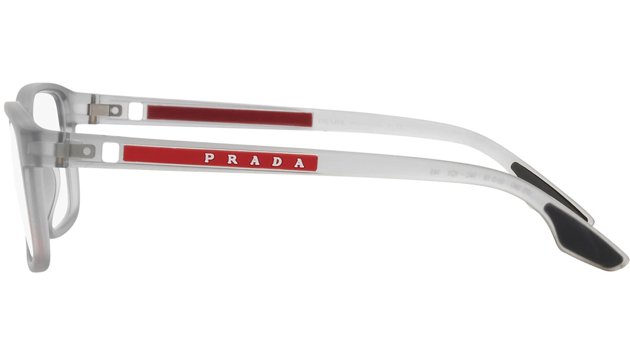 Occhiali da vista Prada Linea Rossa modello PS 09OV variante colore grigio trasparente, codice colore 14C1O1. Nuove prospettive, sintesi perfetta di abbigliamento sportivo e eleganza contemporanea: gli occhiali della collezione Prada Linea Rossa esprimono il più perfetto casual style con la migliore qualita arigianale e la cura dei dettagli propri della maison Prada.