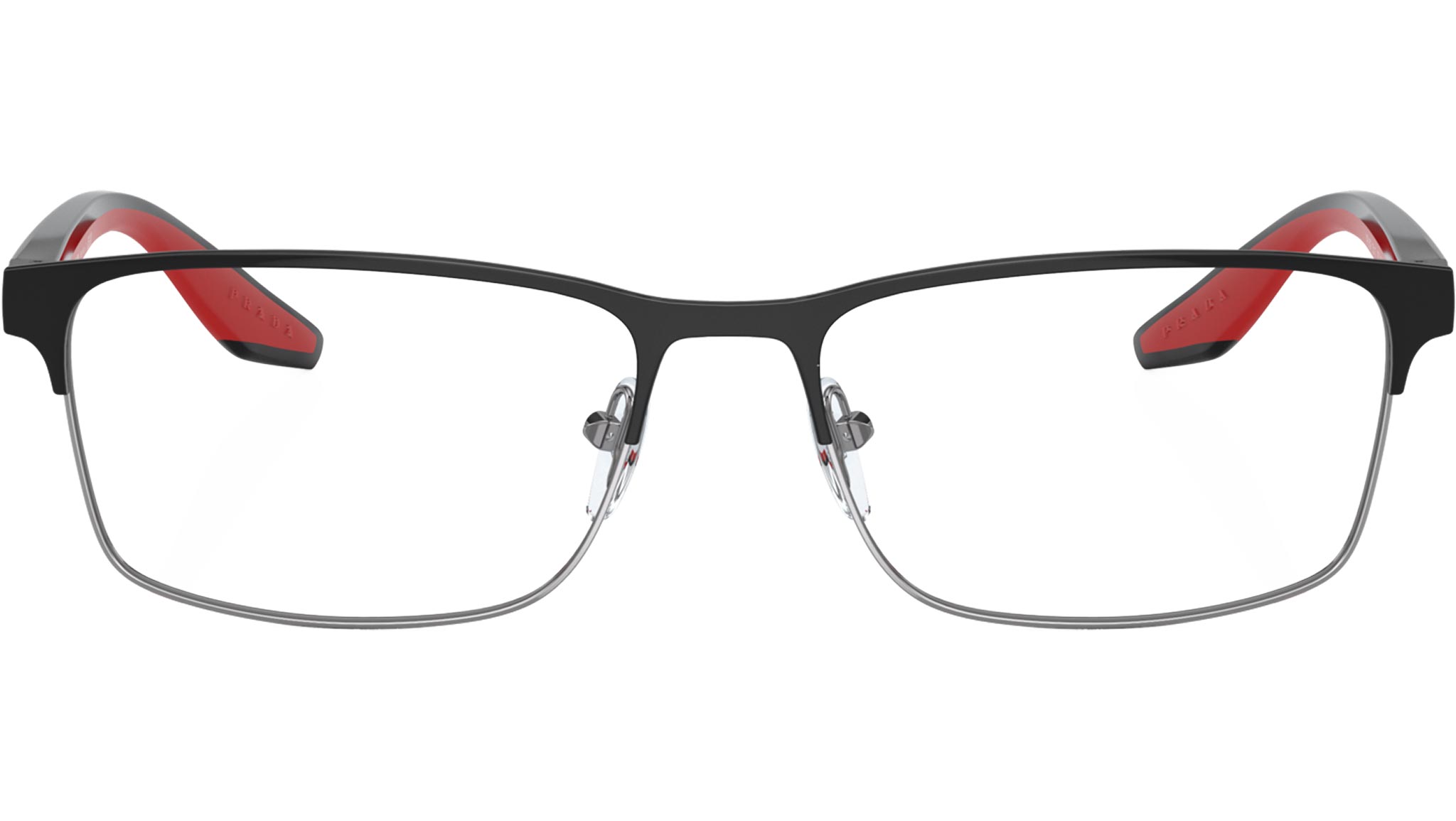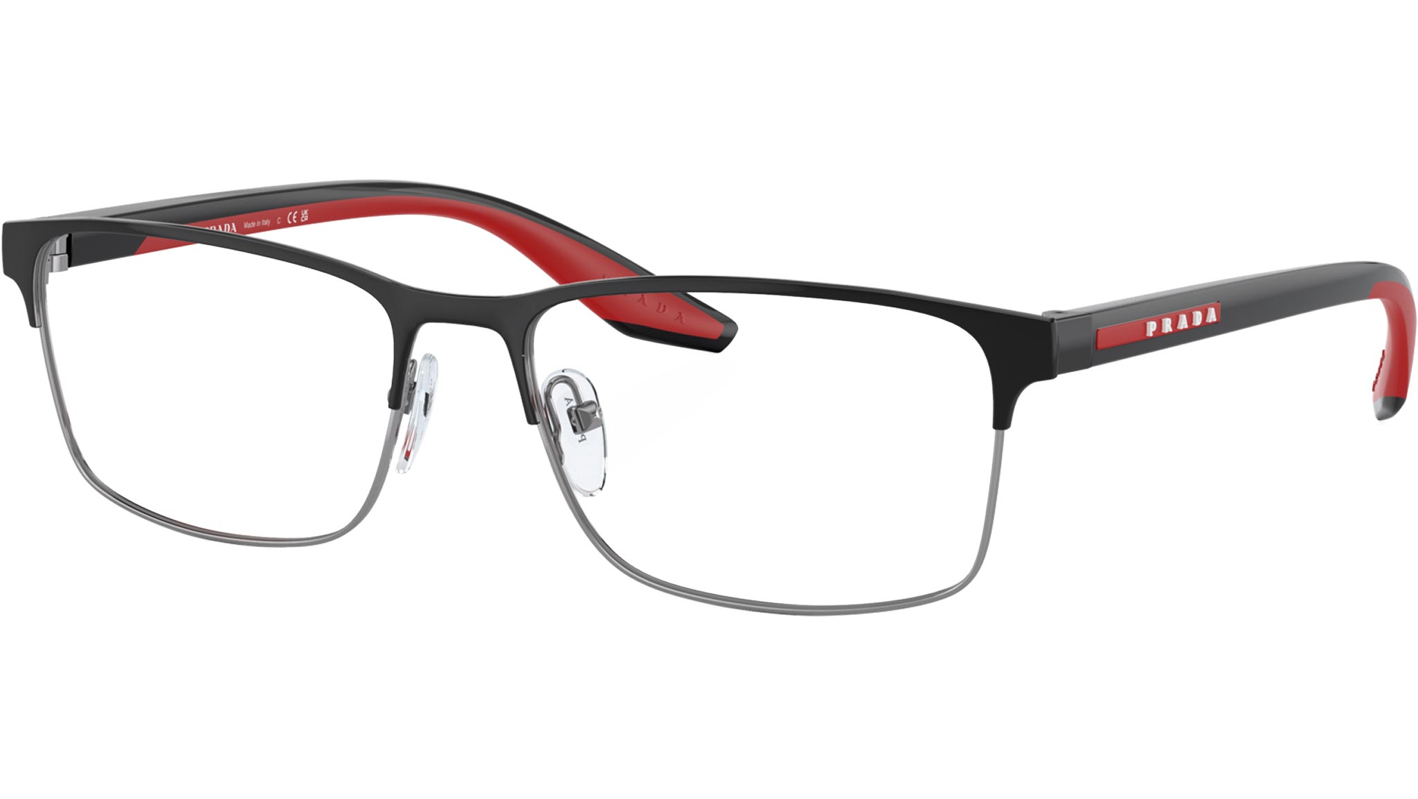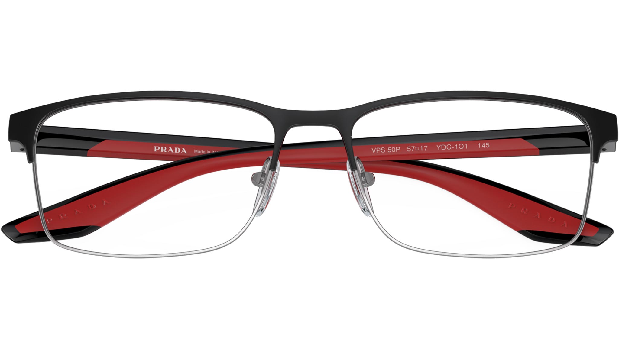 Occhiali da vista Prada Linea Rossa modello PS50PV variante colore nero / argento, codice colore YDC1O1. Nuove prospettive, sintesi perfetta di abbigliamento sportivo e eleganza contemporanea: gli occhiali della collezione Prada Linea Rossa esprimono il più perfetto casual style con la migliore qualita arigianale e la cura dei dettagli propri della maison Prada.