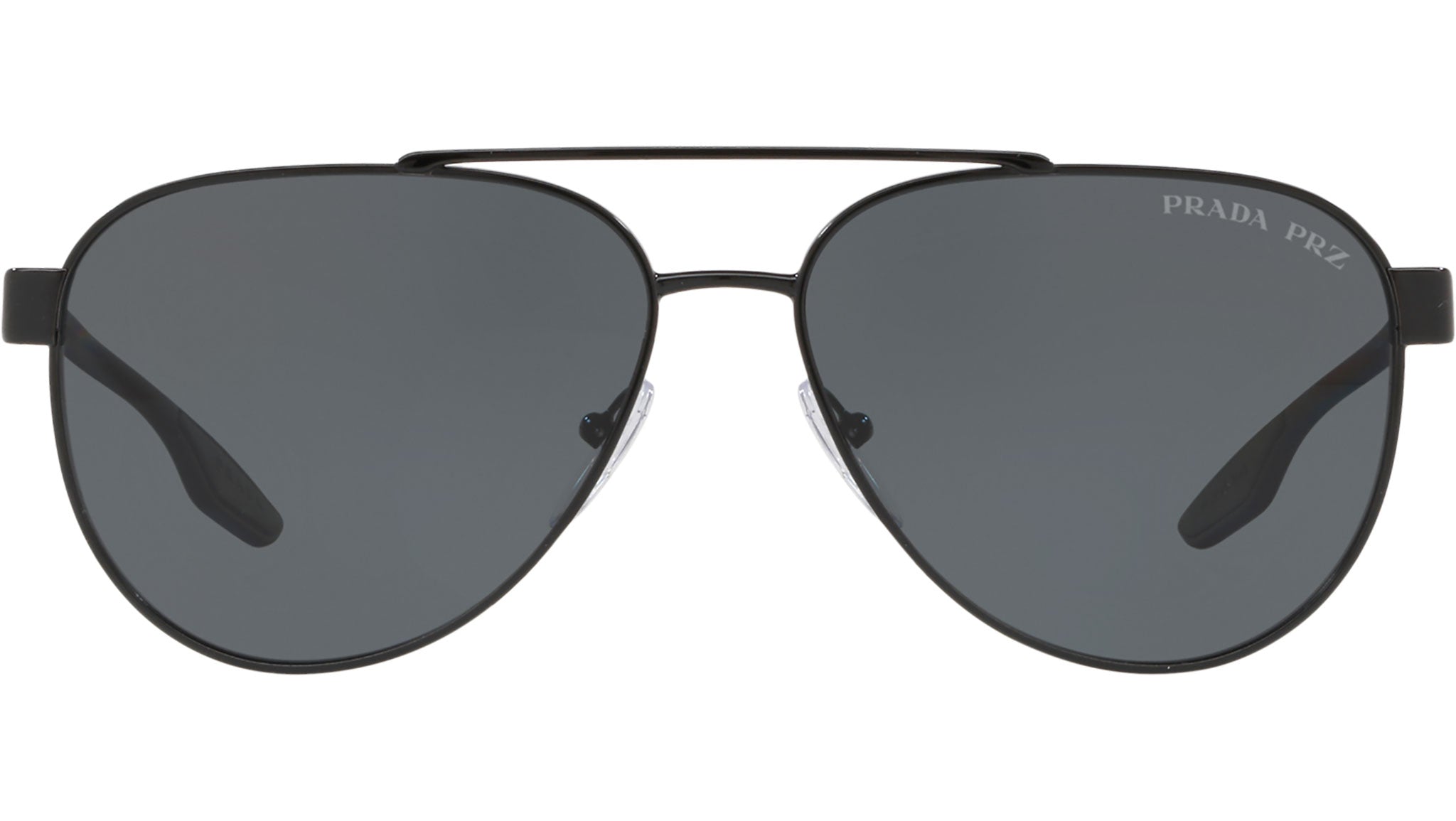 Prada Linea Rossa sunglasses model PS 54TS, black frame variant, color code 1AB5Z1 with polar grey lens. Prada Linea Rossa Sun Collection conveys an everyday casual style with all the quality and craftsmanship of the Prada brand.