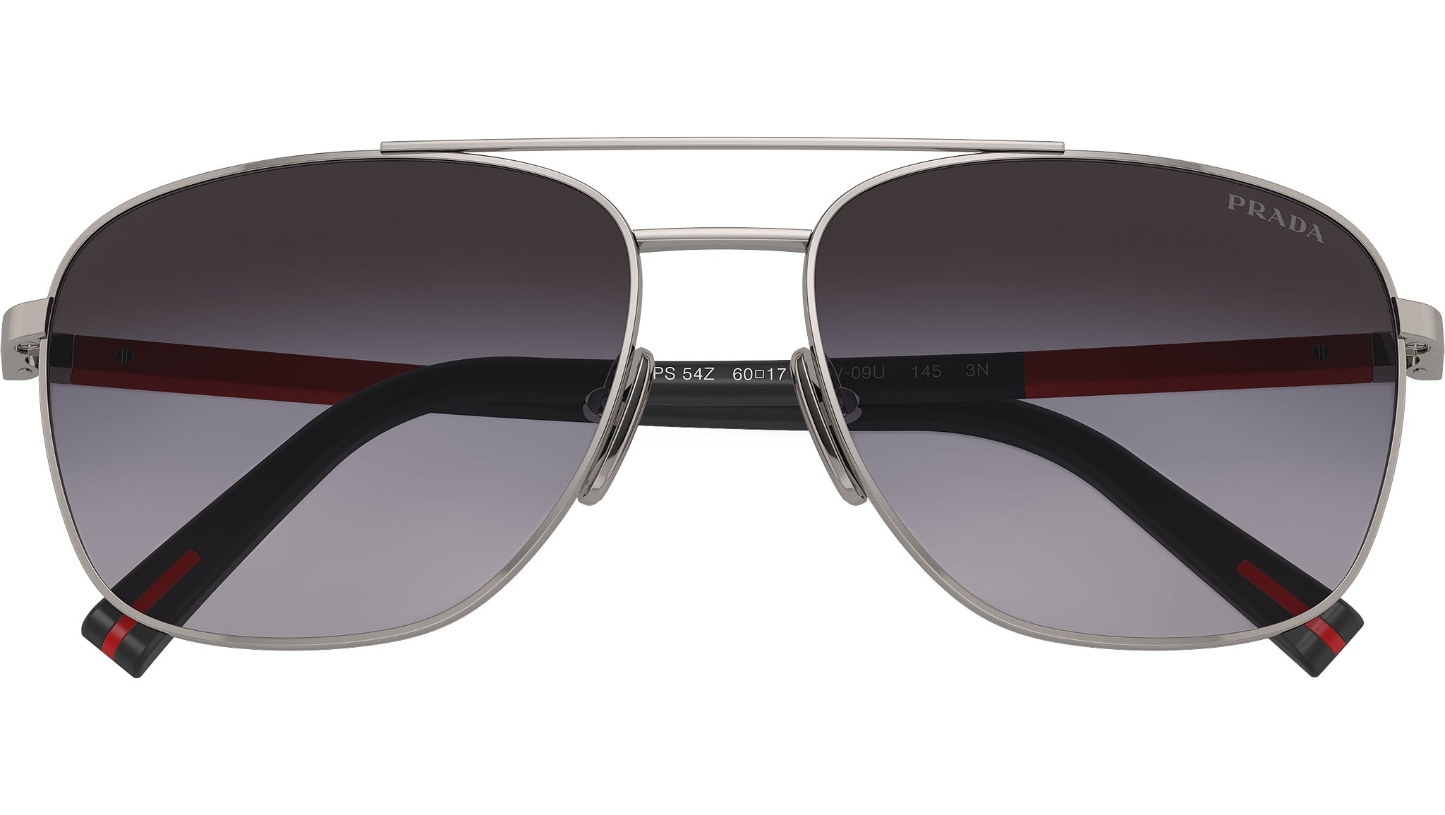 Occhiali da sole Prada Linea Rossa PS 54ZS 5AV09U uomo con montatura ovale in acciaio canna di fucile e lenti in poliammide color grigio sfumato. Naselli regolabili. Linea: Lifestyle. Codice modello: PS54ZS. Codice colore: 5AV09U. Made in Italy. Rivenditore autorizzato Prada Sport online. Gli occhiali vengono consegnati con custodia e accessori originali e sono coperti dalla garanzia ufficiale di 12 mesi del produttore.