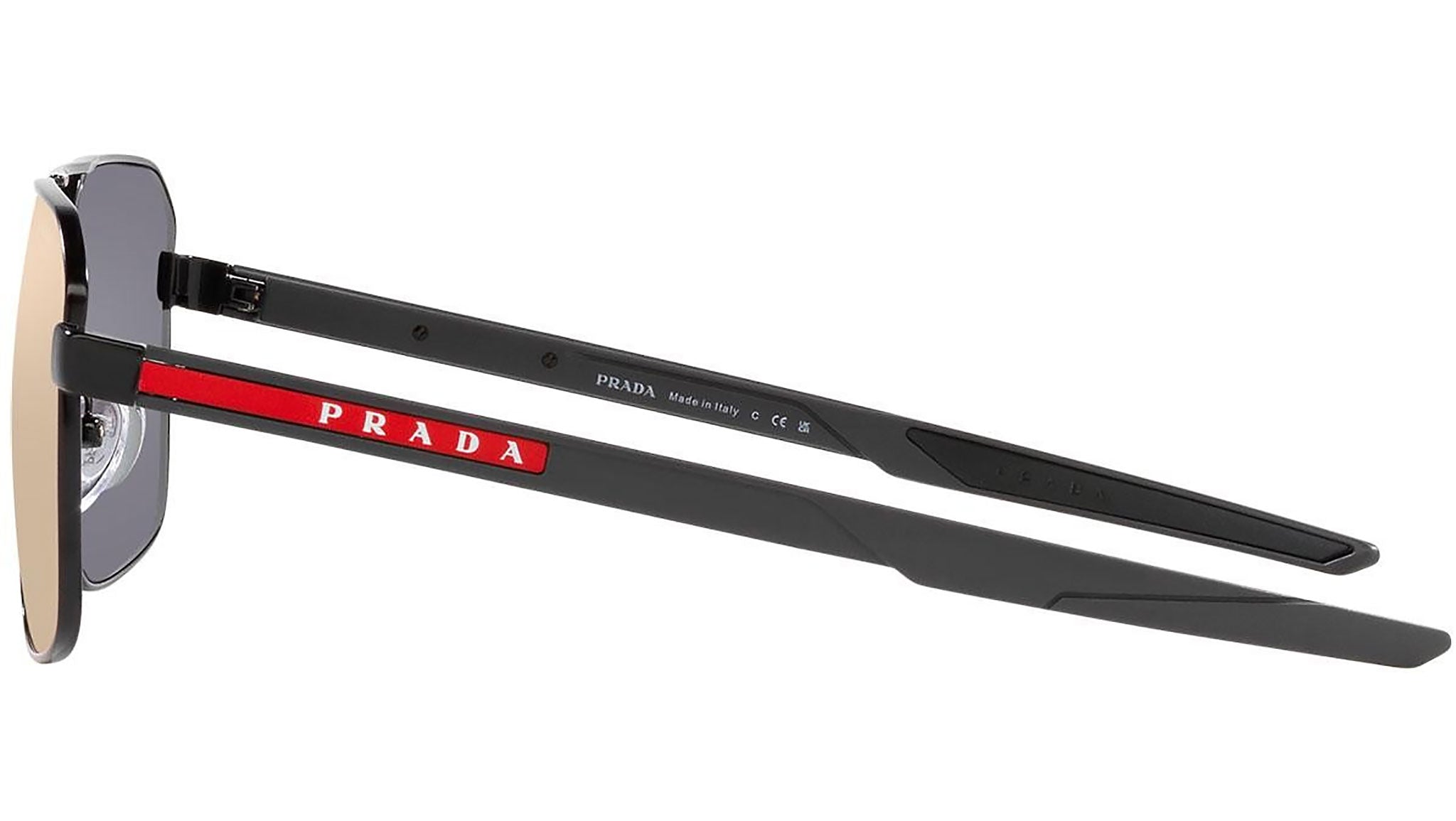 Occhiali da sole Prada Linea Rossa modello PS 55WS codice colore 1BO10A con montatura geometrica full rim in metallo color nero opaco e lenti in policarbonato color grigio scuro a specchio. Rivenditore autorizzato Prada. Ogni prodotto Prada Linea Rossa viene consegnato con astuccio originale e accessori.
