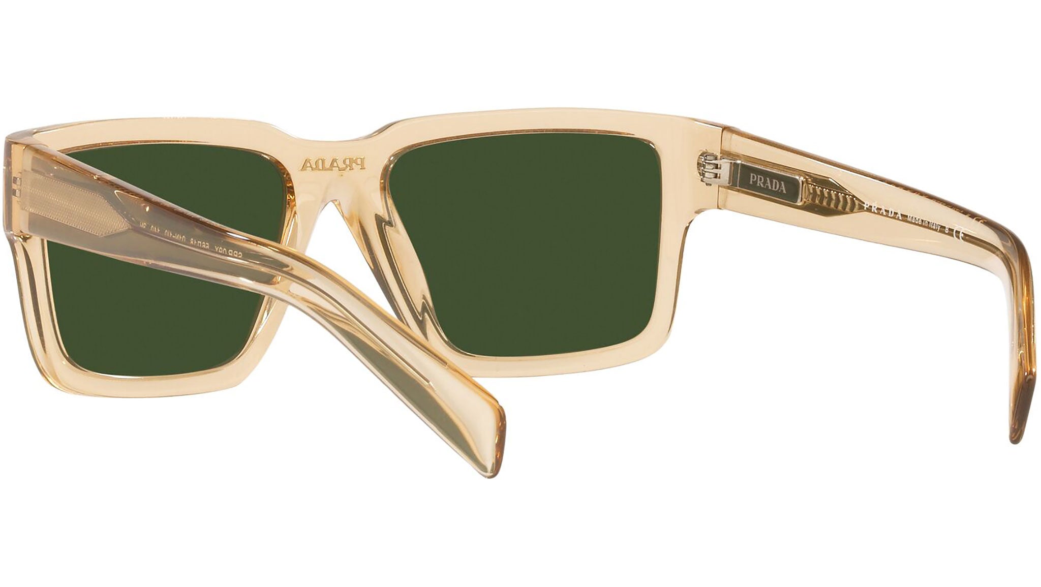 Occhiali da sole Prada modello PR 09YS nella variante colore 01N1I0 ambra cristallo con lenti color verde scuro. Prada è uno dei marchi più rappresentativi della moda italiana, un esempio di stile, dove cultura e tradizione si fondono in uno dei brand più innovativi, prestigiosi e riconosciuti al mondo. Le collezioni di occhiali da sole Prada rispecchiano una grande attenzione ai dettagli e alle nuove tendenze, per uno stile inconfondibile, senza eguali, di raffinata eleganza e qualità assoluta.