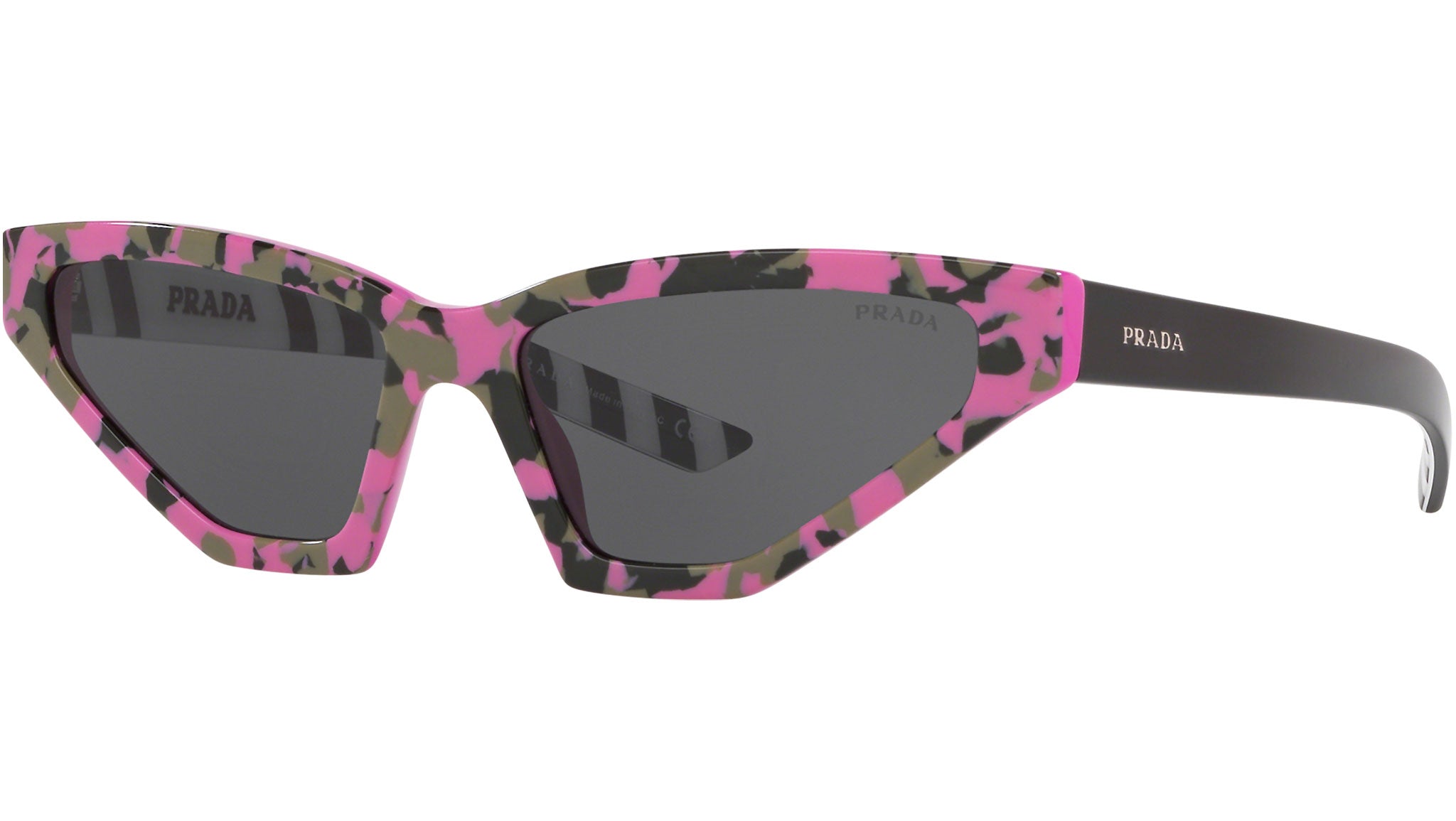 Prada sunglasses model PR 12VS, camouflage pink frame variant, color code 4625S0 with black lens. Prada represents the best of Italian culture and tradition. It is one of the most innovative, prestigious and widely recognized brands in the fashion and luxury goods industries, with a keen attention to details and new trends.