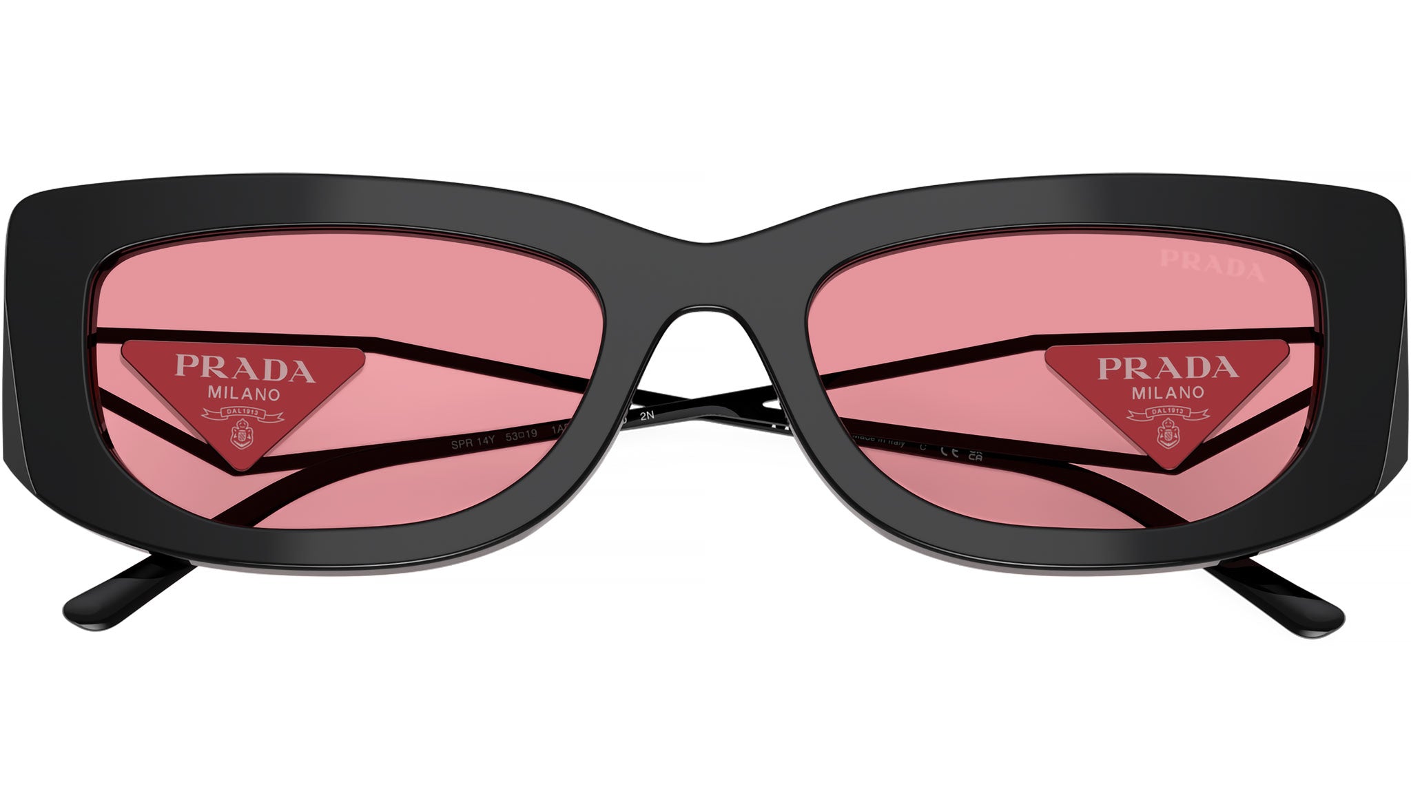 Occhiali da sole Prada PR 14YS 1AB30L donna con montatura rettangolare in acetato nero e lenti in bio poliammide color rosa. Vestibilità a ponte alto. Linea: Catwalk. Codice modello: PR14YS. Codice colore: 1AB30L. Made in Italy. Rivenditore autorizzato Prada online. Gli occhiali vengono consegnati con custodia e accessori originali e sono coperti dalla garanzia ufficiale di 12 mesi del produttore.