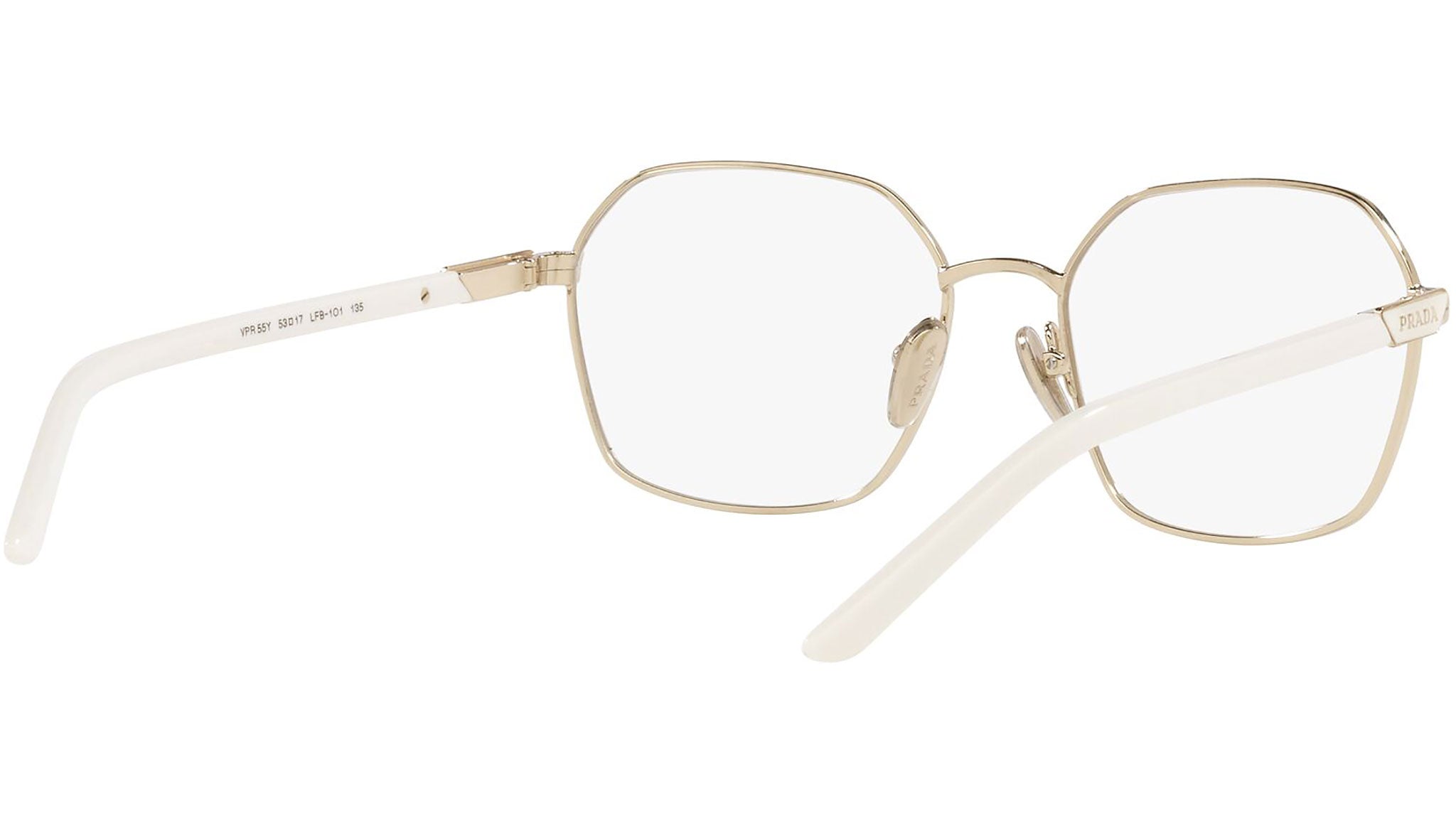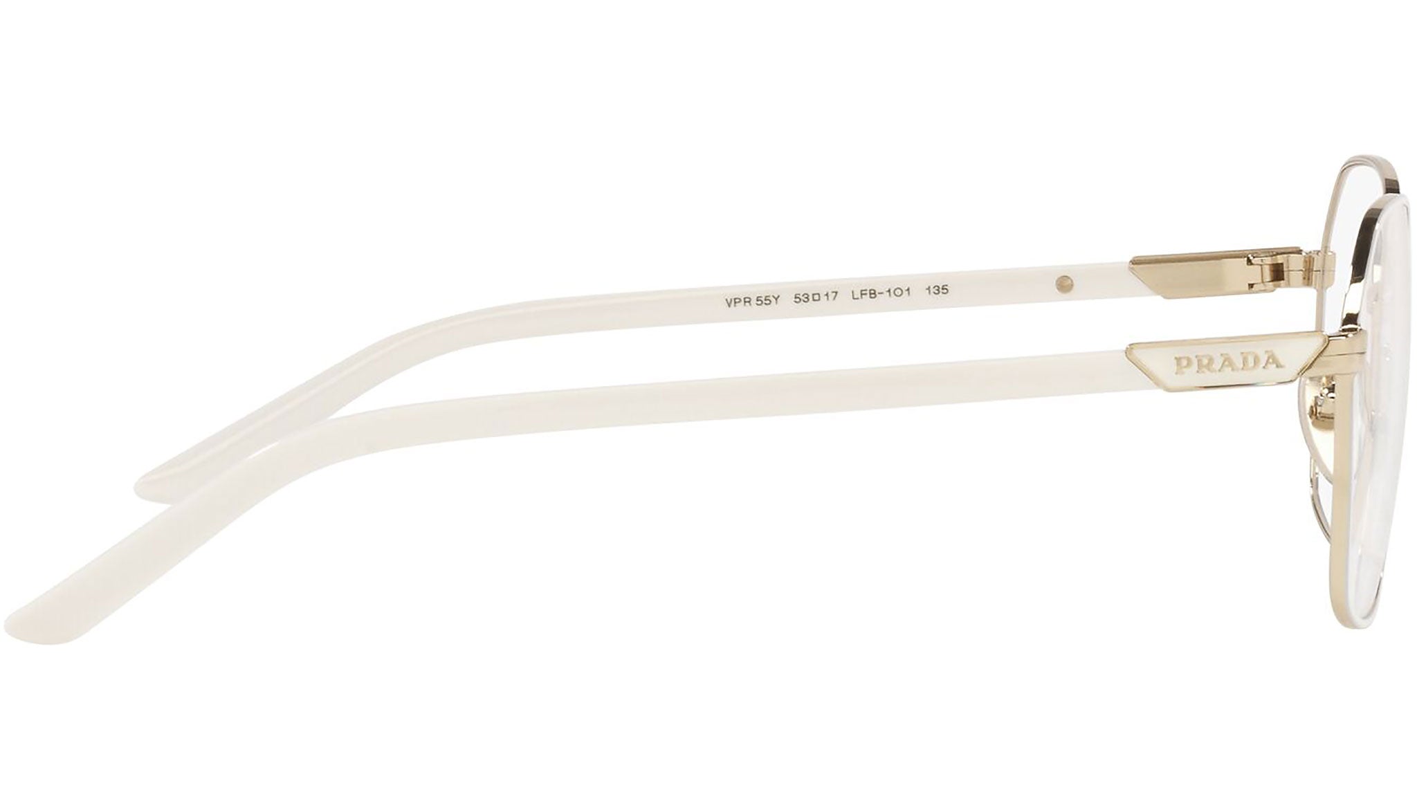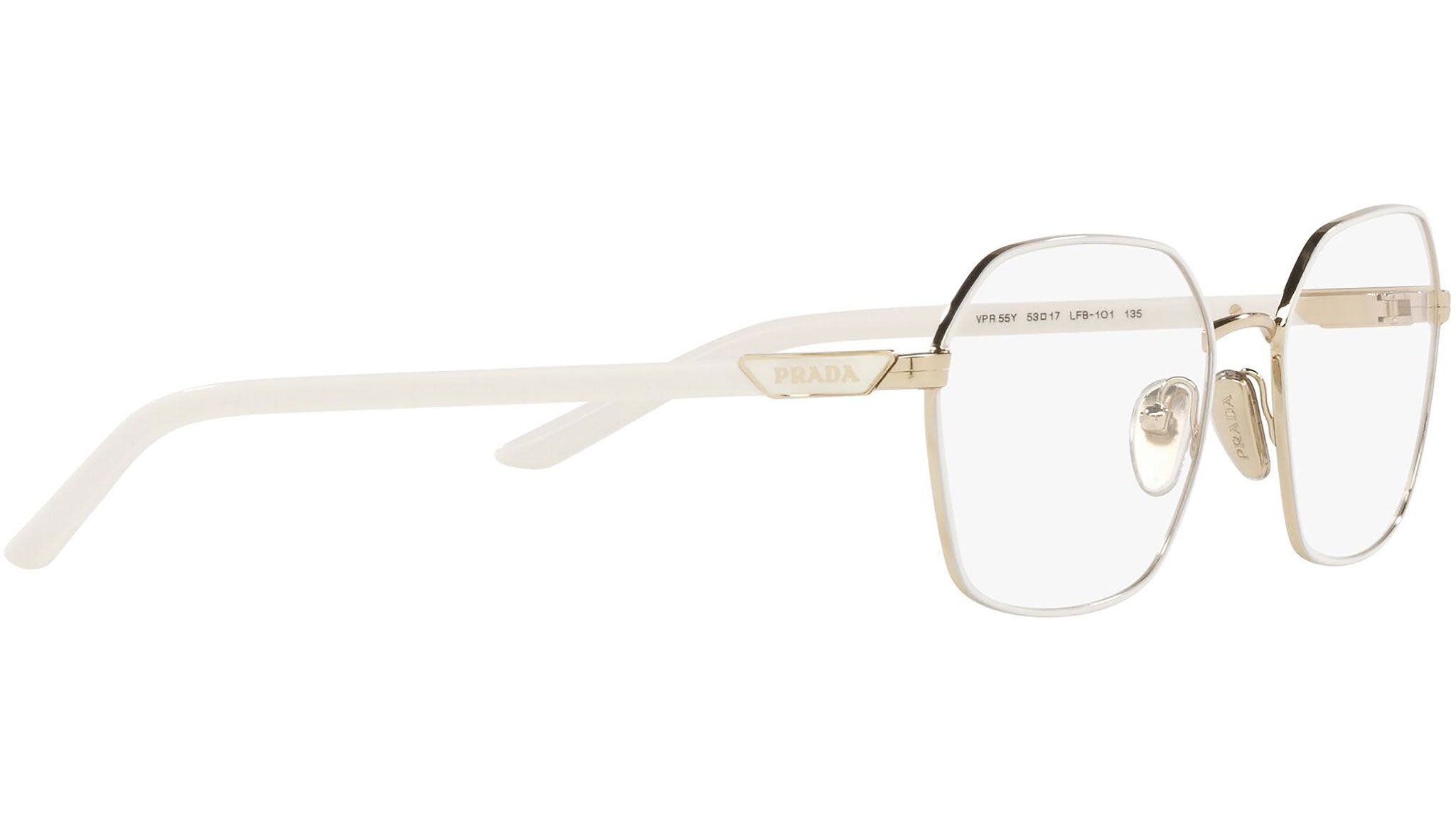 Occhiali da vista Prada modello PR 55YV variante colore beige rosato e oro chiaro, codice colore LFB1O1. Prada rappresenta il vertice della tradizione e della moda Italiana. È uno dei brand più innovativi, prestigiosi e più riconosciuti nel mondo del fashion e degli accessori di lusso, massima espressione della cura per i dettagli, emblema di stile, nella sua raffinata interpretazione dei nuovi trend della moda internazionale.