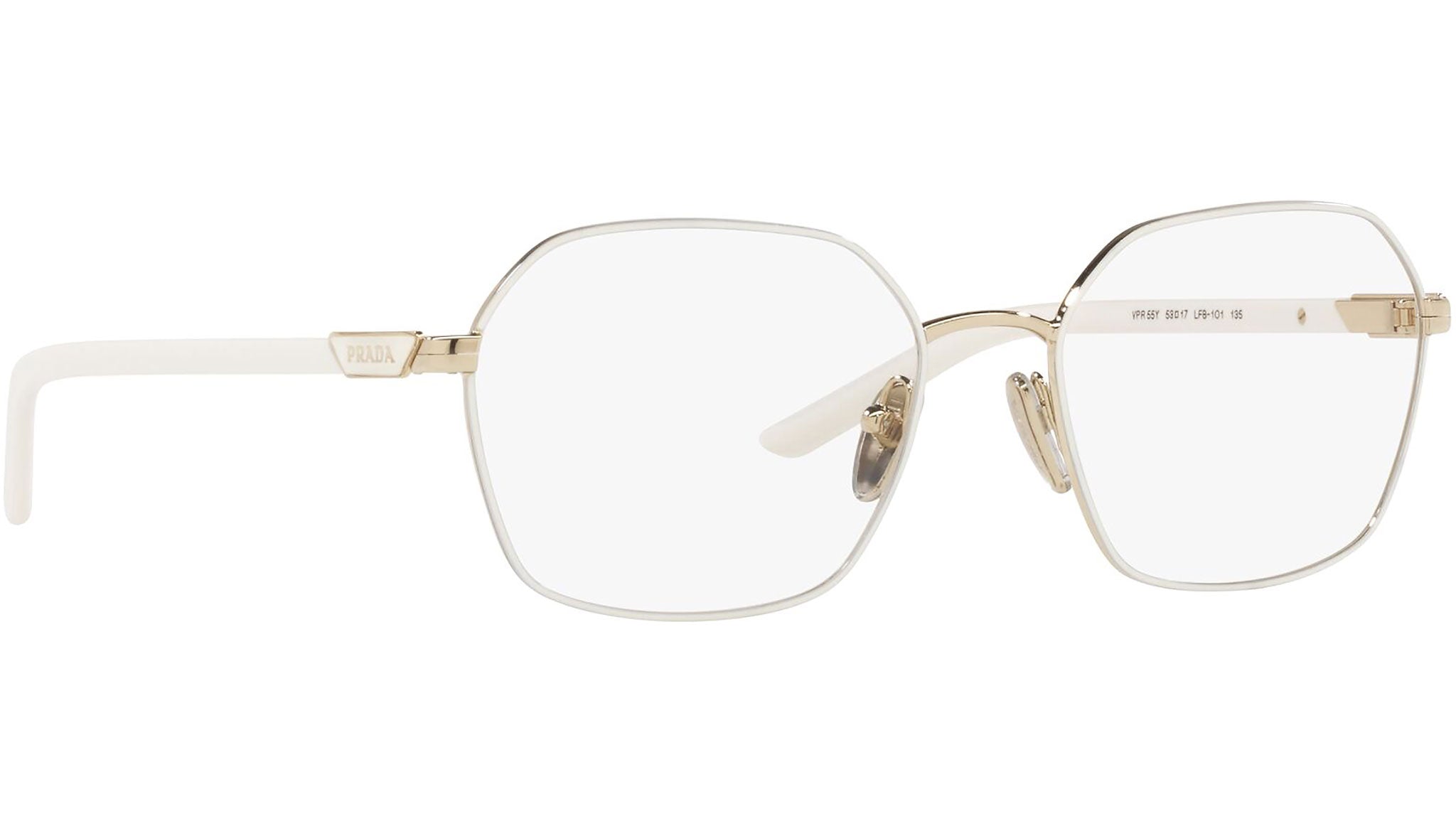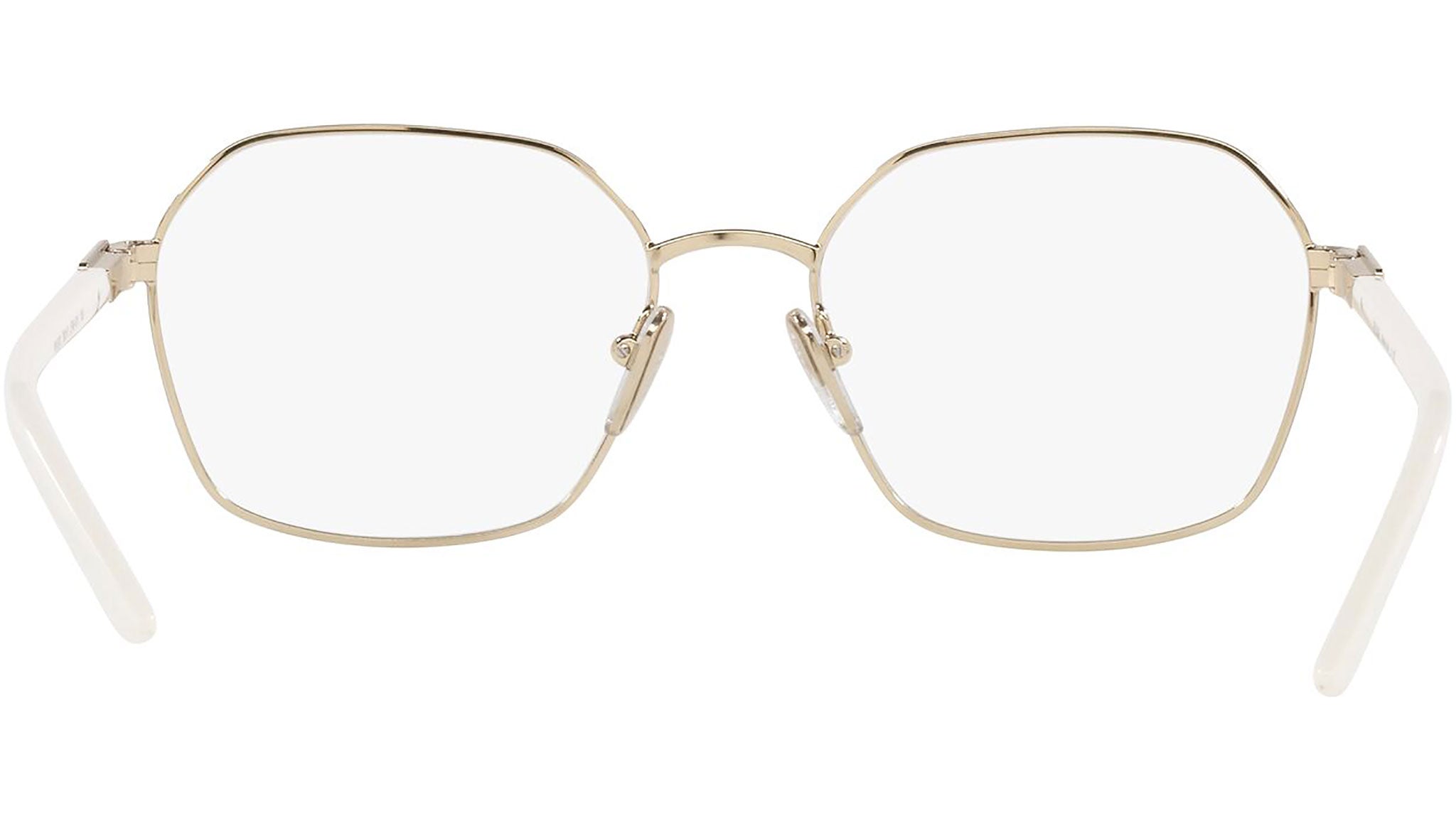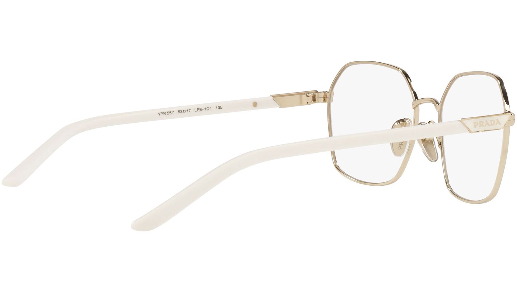 Occhiali da vista Prada modello PR 55YV variante colore beige rosato e oro chiaro, codice colore LFB1O1. Prada rappresenta il vertice della tradizione e della moda Italiana. È uno dei brand più innovativi, prestigiosi e più riconosciuti nel mondo del fashion e degli accessori di lusso, massima espressione della cura per i dettagli, emblema di stile, nella sua raffinata interpretazione dei nuovi trend della moda internazionale.