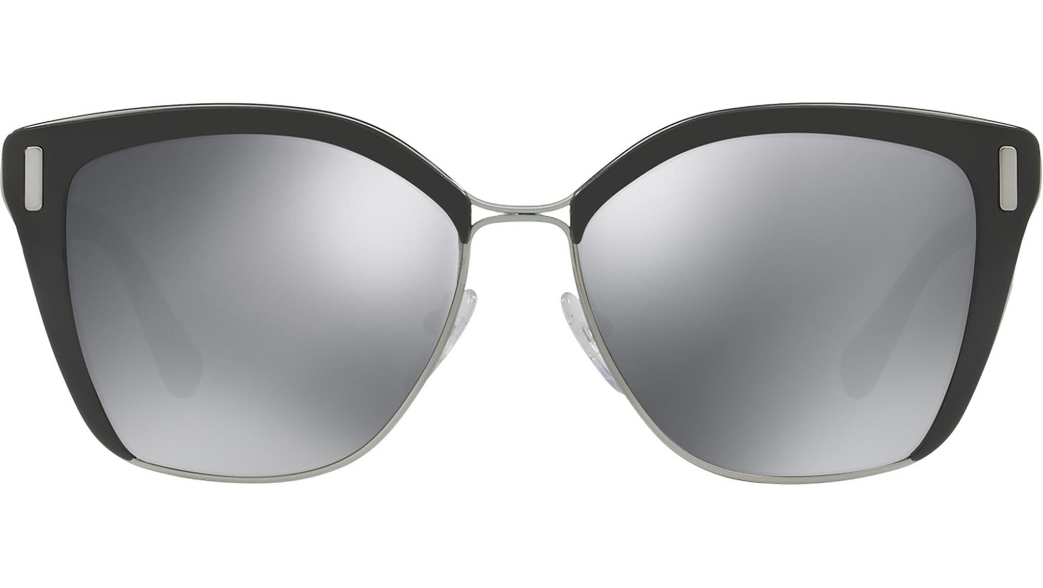 Prada sunglasses model PR 56TS, black and gunmetal frame variant, color code 1AB5L0 with grey mirror black lens. Prada represents the best of Italian culture and tradition. It is one of the most innovative, prestigious and widely recognized brands in the fashion and luxury goods industries, with a keen attention to details and new trends.