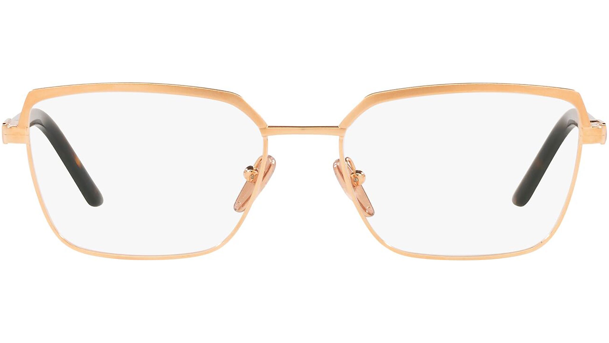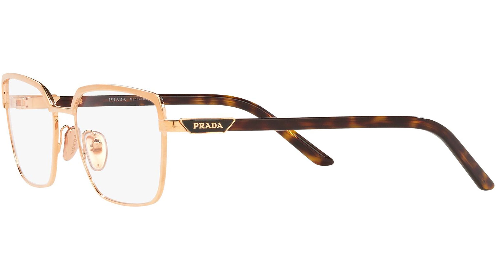 Occhiali da vista Prada modello PR 56YV variante colore oro rosa opaco e oro, codice colore 01W1O1. Prada rappresenta il vertice della tradizione e della moda Italiana. È uno dei brand più innovativi, prestigiosi e più riconosciuti nel mondo del fashion e degli accessori di lusso, massima espressione della cura per i dettagli, emblema di stile, nella sua raffinata interpretazione dei nuovi trend della moda internazionale.