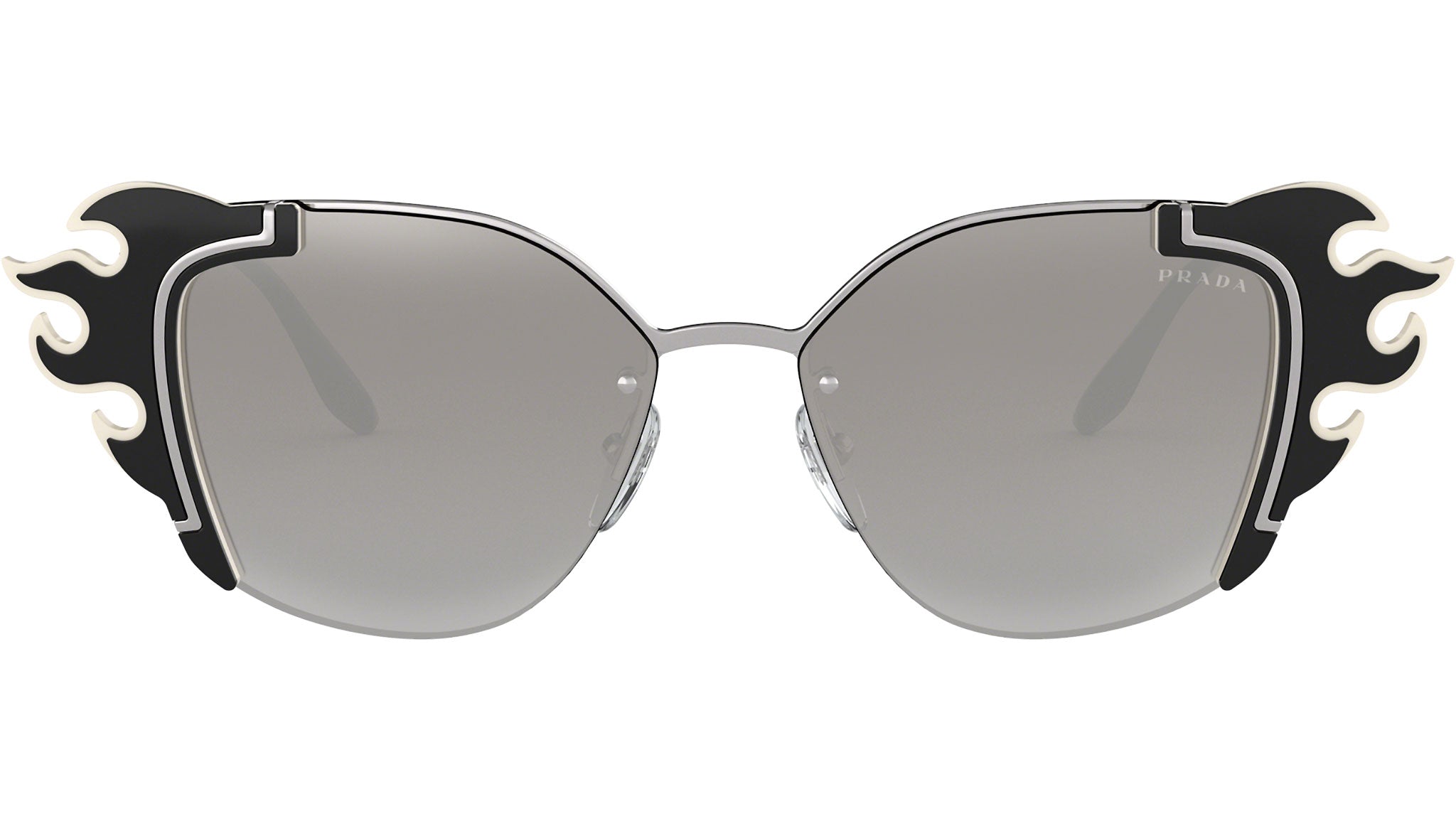Occhiali da sole Prada modello PR59VS nella variante colore 4285O0 argento / avorio nero con lenti color grigio chiaro sfumato scuro a specchio. Prada è uno dei marchi più rappresentativi della moda italiana, un esempio di stile, dove cultura e tradizione si fondono in uno dei brand più innovativi, prestigiosi e riconosciuti al mondo. Le collezioni di occhiali da sole Prada rispecchiano una grande attenzione ai dettagli e alle nuove tendenze, per uno stile inconfondibile, senza eguali, di raffinata eleganza e qualità assoluta.