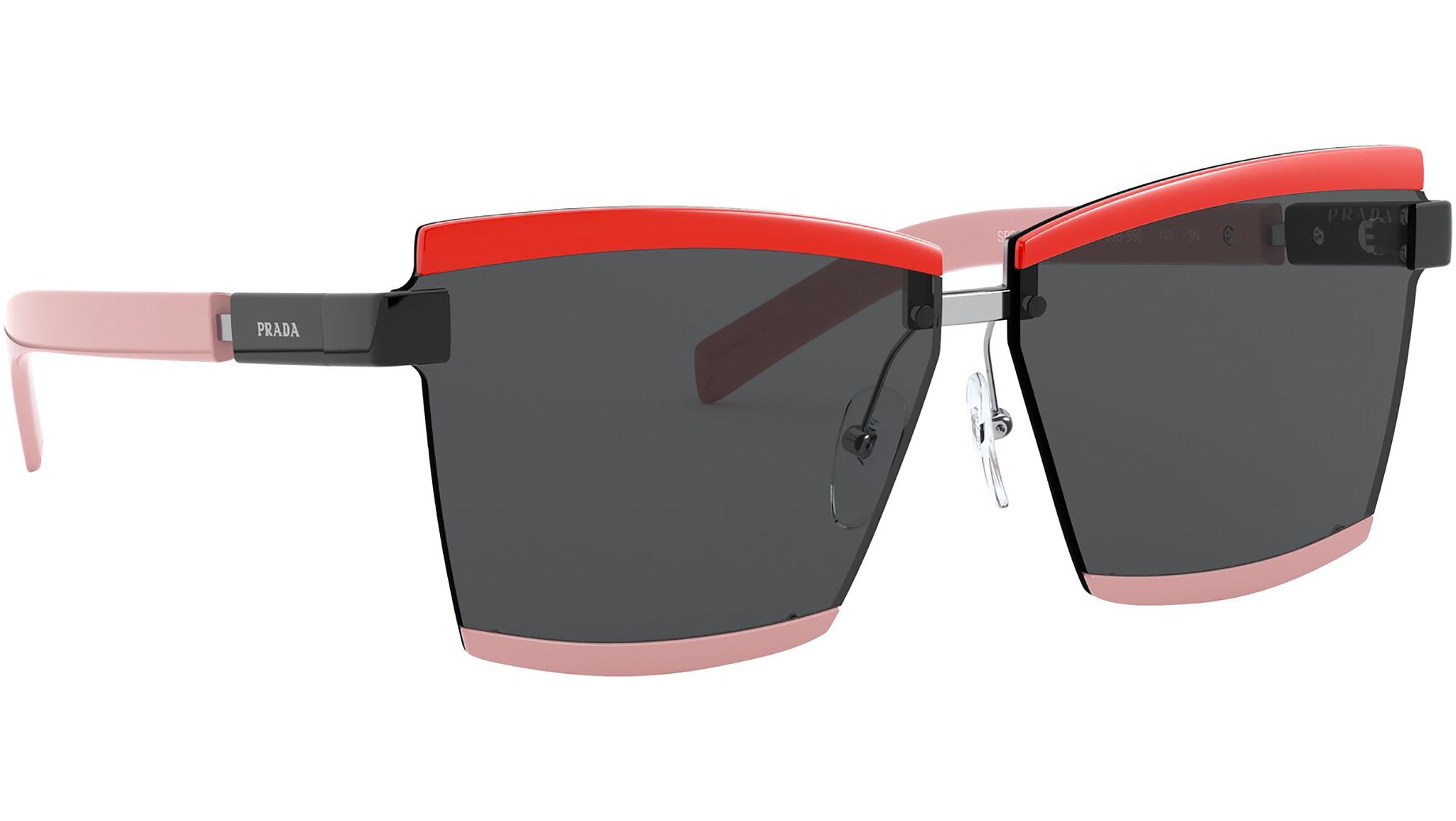 Prada sunglasses model PR 61XS, red and black and pink frame variant, color code 03B5S0 with grey lens. Prada represents the best of Italian culture and tradition. It is one of the most innovative, prestigious and widely recognized brands in the fashion and luxury goods industries, with a keen attention to details and new trends.