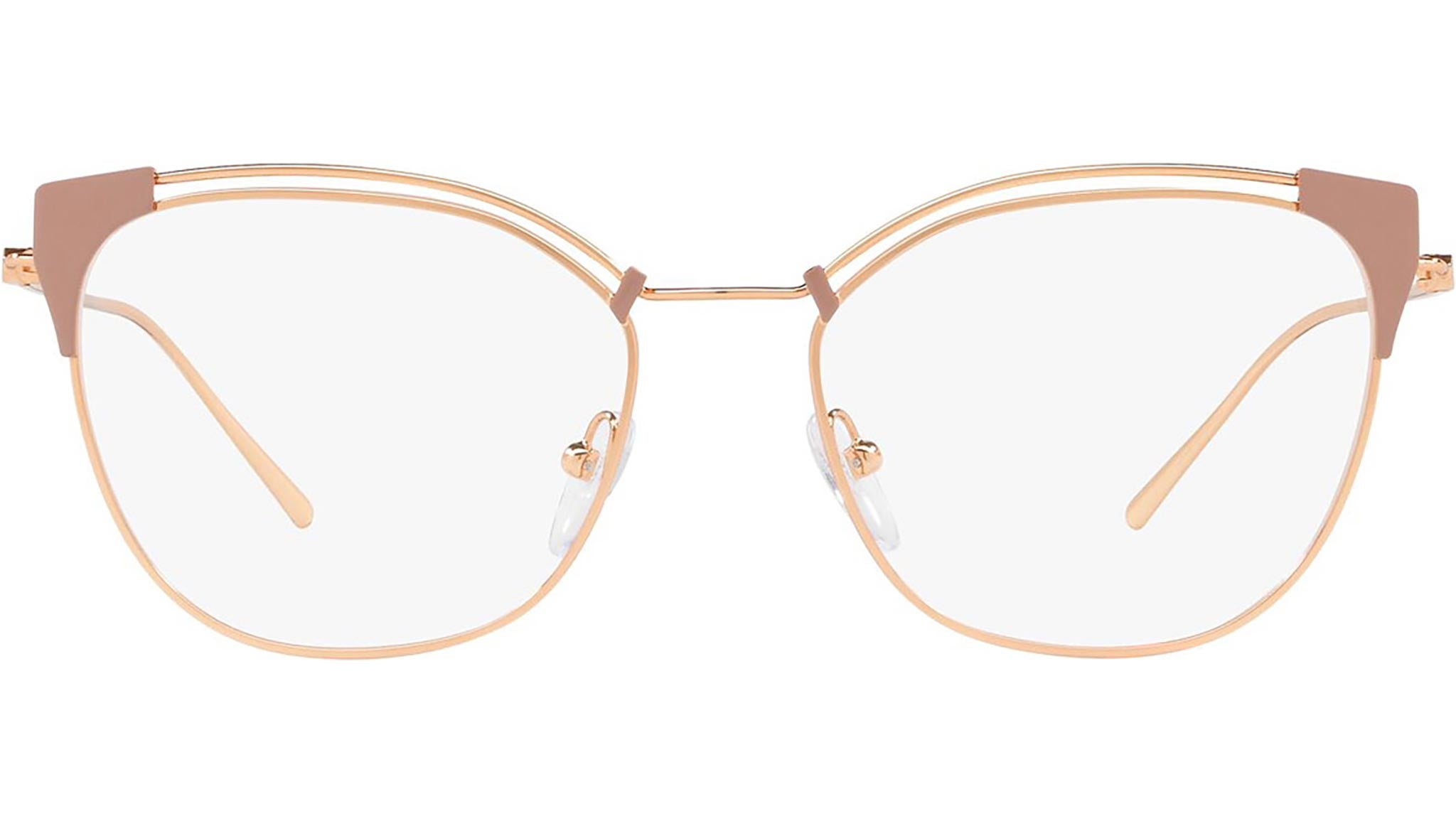 Prada Eyewear Collection model PR 62UV, beige and pink gold frame variant, color code YEP1O1. Prada represents the best of Italian culture and tradition. It is one of the most innovative, prestigious and widely recognized brands in the fashion and luxury goods industries, with a keen attention to details and new trends.