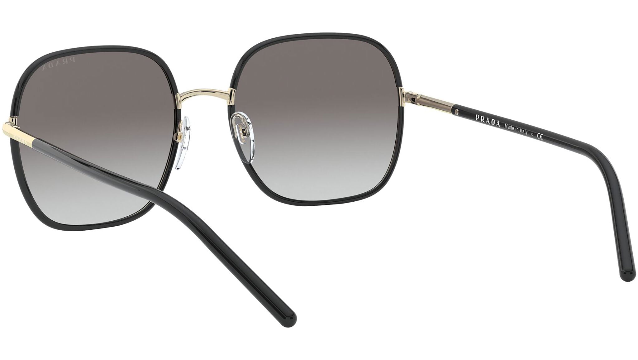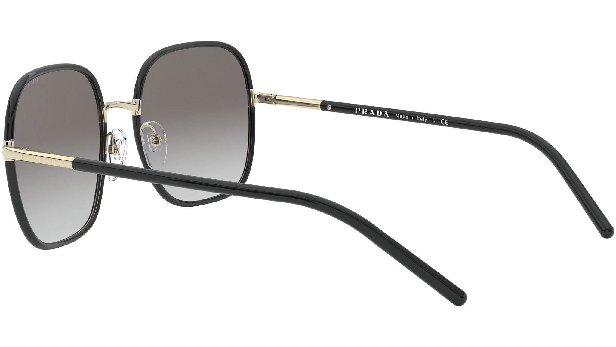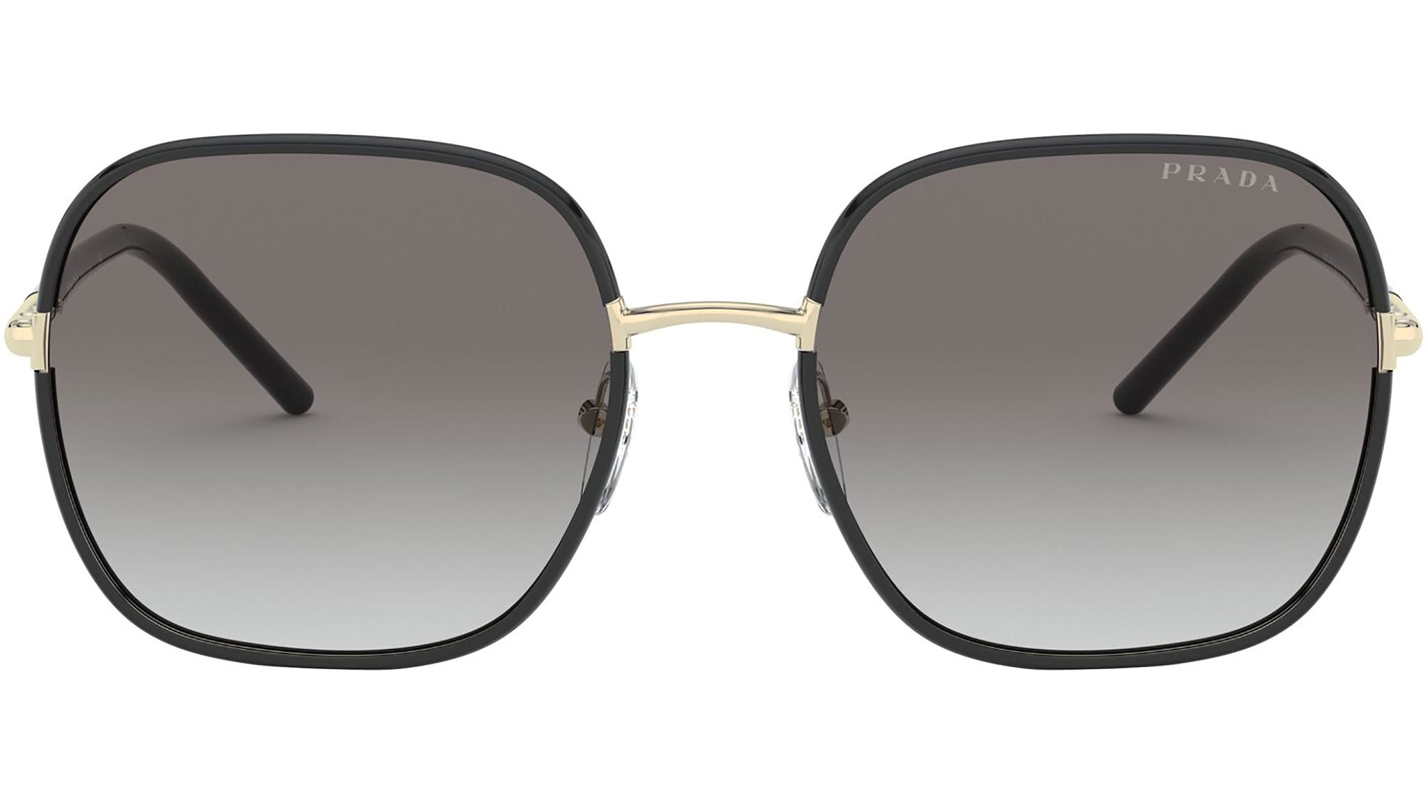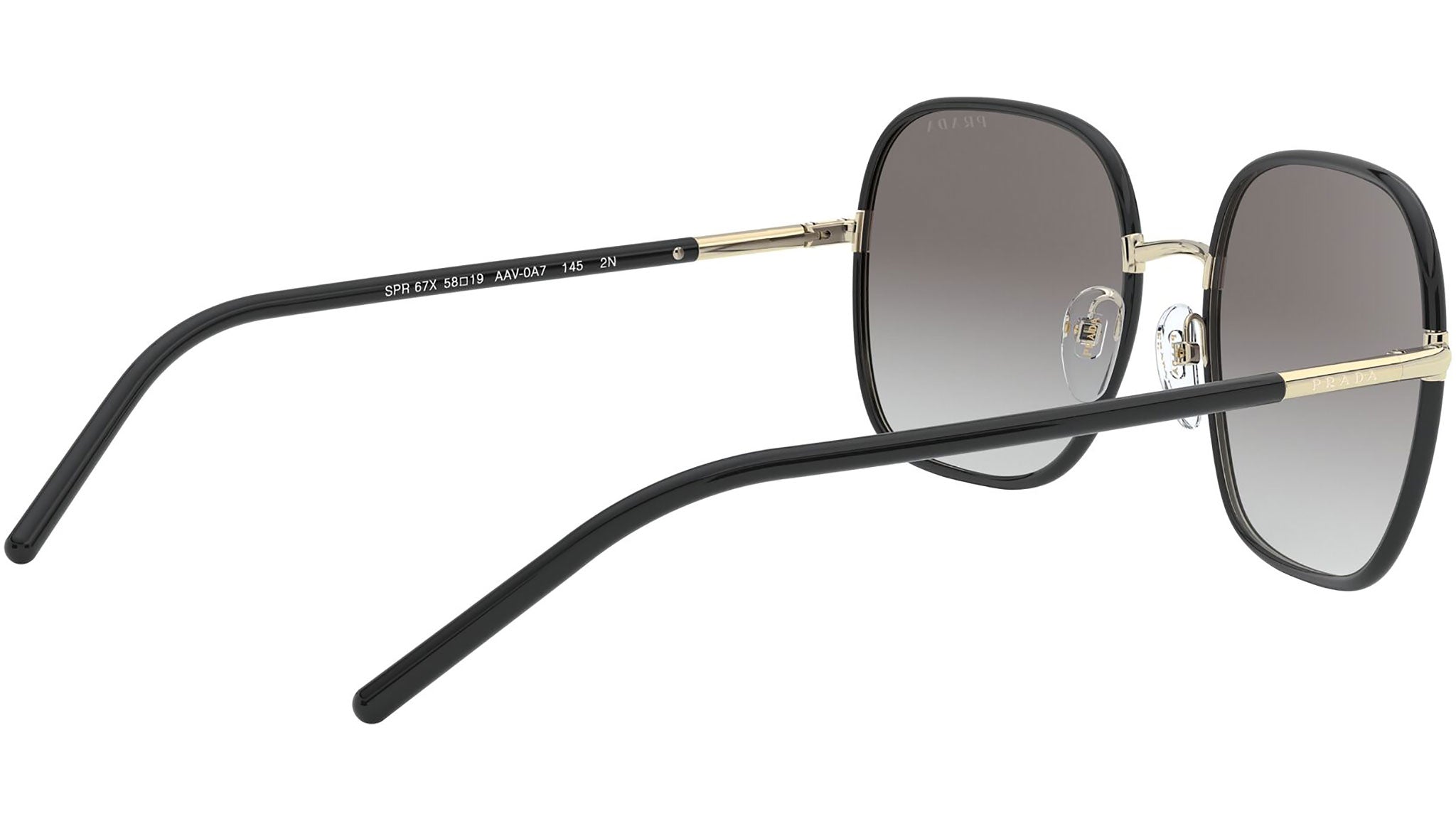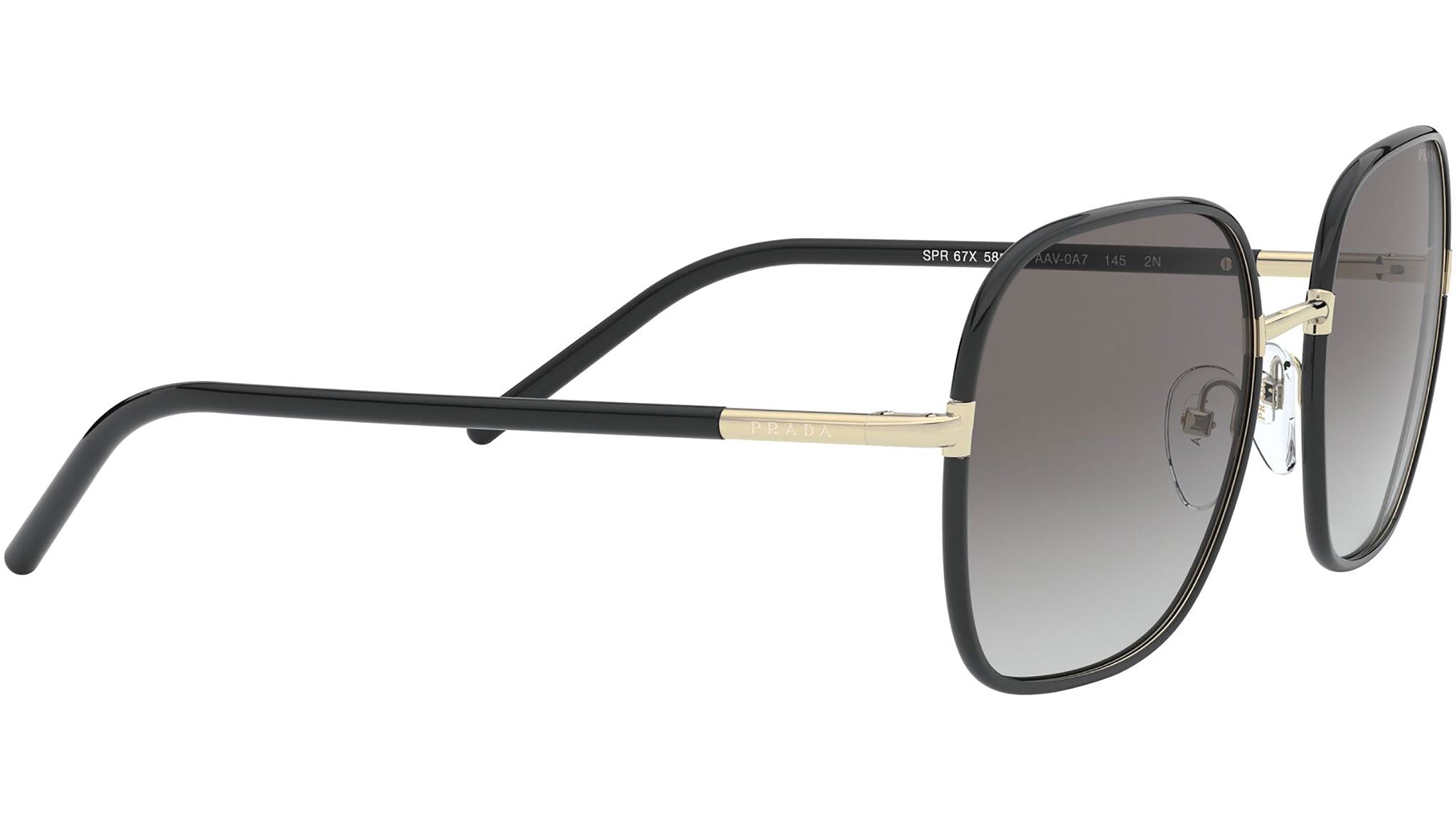 Prada sunglasses model PR 67XS, pale gold and black frame variant, color code AAV0A7 with grey gradient lens. Prada represents the best of Italian culture and tradition. It is one of the most innovative, prestigious and widely recognized brands in the fashion and luxury goods industries, with a keen attention to details and new trends.