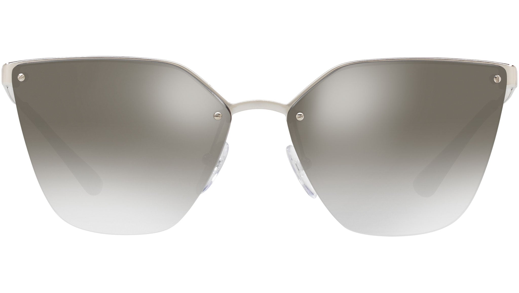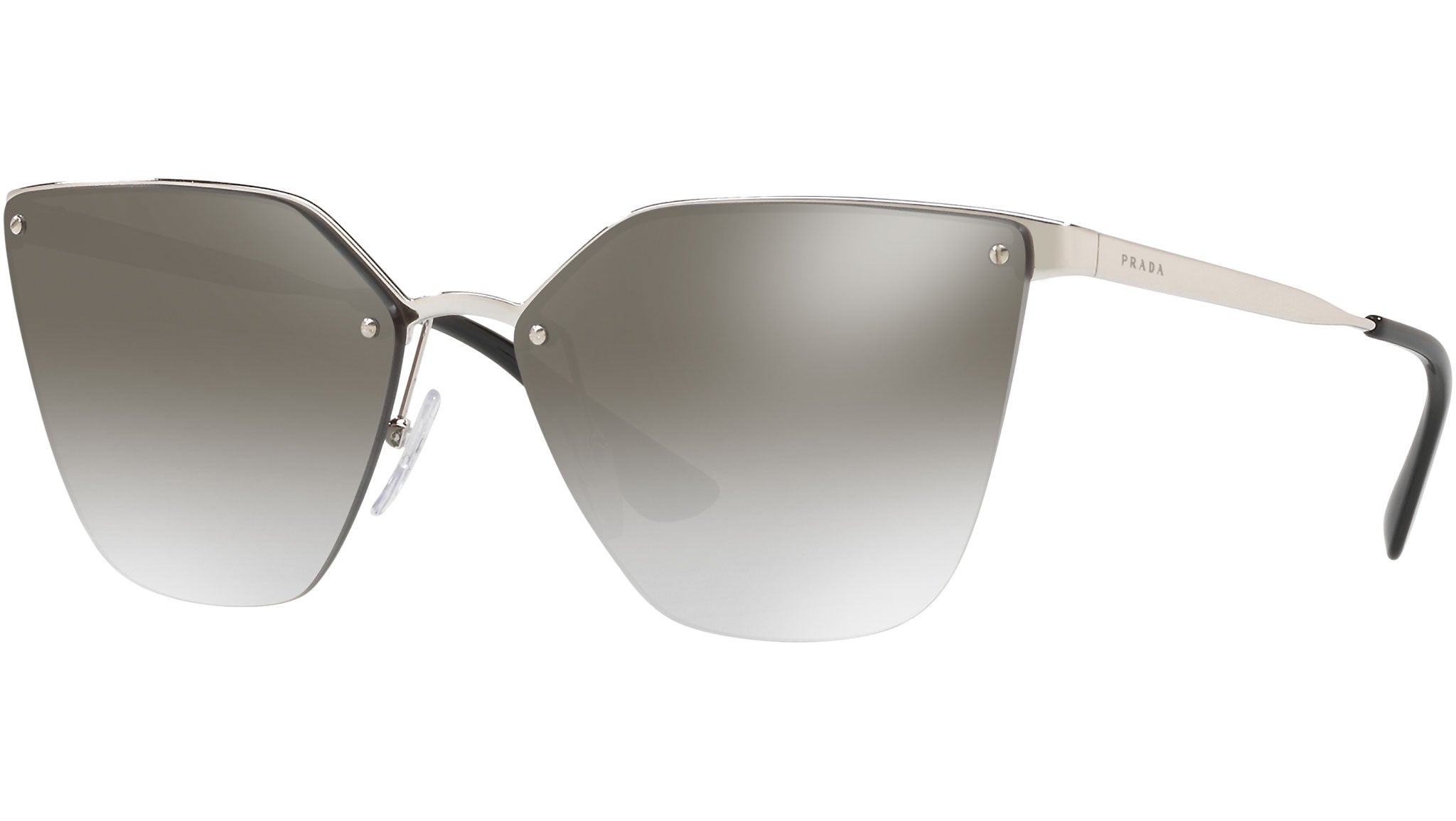 Prada sunglasses model PR 68TS, silver frame variant, color code 1BC5O0 with gradient grey mirror silver lens. Prada represents the best of Italian culture and tradition. It is one of the most innovative, prestigious and widely recognized brands in the fashion and luxury goods industries, with a keen attention to details and new trends.