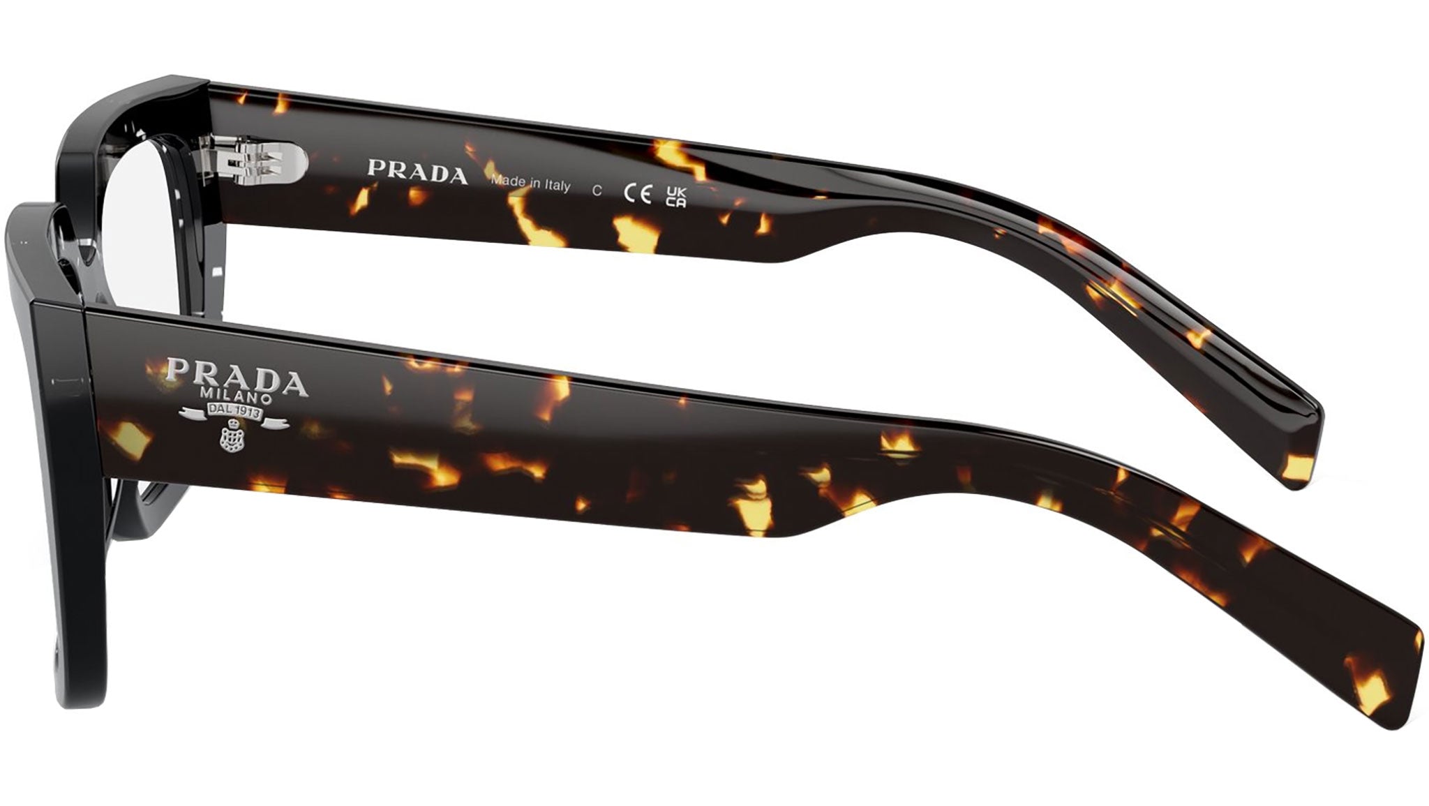 Occhiali da vista Prada donna modello A03V con montatura avana nero trasparente full rim in acetato e lenti demo base 4. Fit a ponte alto. Linea: Signature. Brand code: PRA03V. Codice colore: 15O1O1. Rivenditore autorizzato Prada. Ogni prodotto Prada viene consegnato con astuccio originale e accessori ed è coperto da garanzia del produttore di 12 mesi.