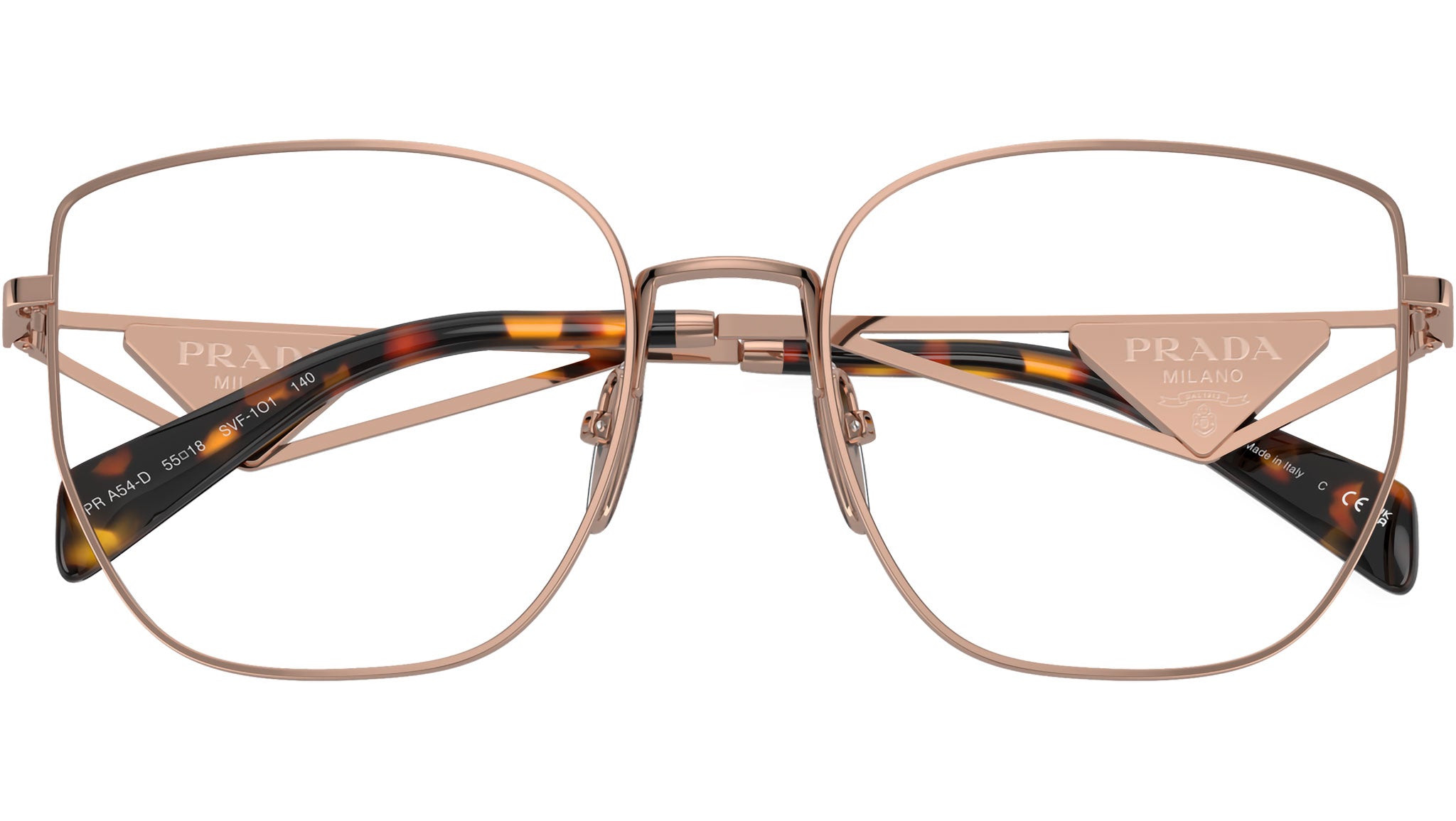 Occhiali da vista Prada PR A54VD SVF1O1 donna con montatura butterfly in acciaio oro rosa e lenti demo. Vestibilità a ponte basso. Linea: Catwalk. Codice modello: PRA54VD. Codice colore: SVF1O1. Made in Italy. Rivenditore autorizzato Prada online. Gli occhiali vengono consegnati con custodia e accessori originali e sono coperti dalla garanzia ufficiale di 12 mesi del produttore.