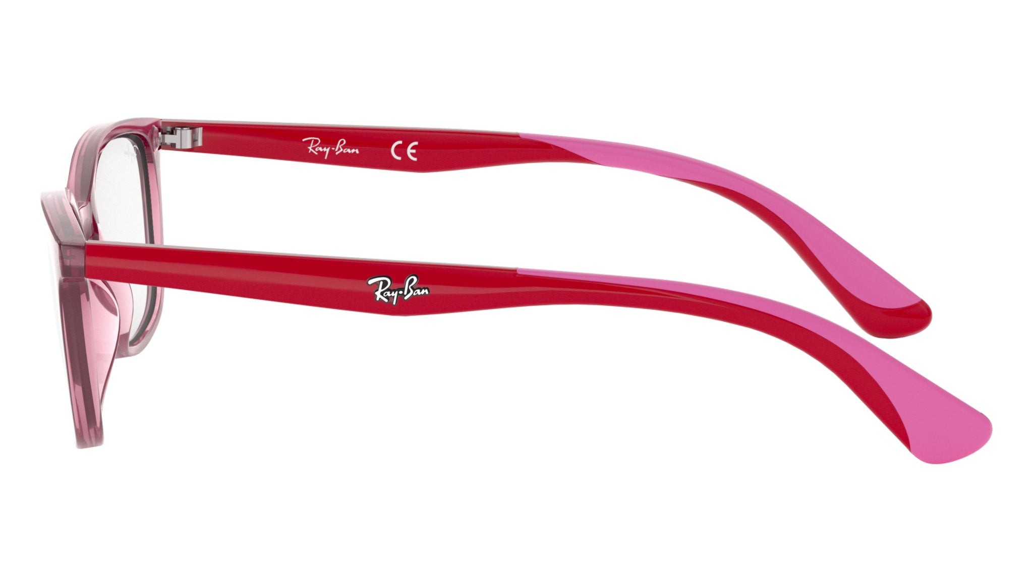 Occhiali da vista Ray-Ban Kids RY1586 color rosso trasparente in acetato codice colore 3777. Forma unisex quadrata full rim con lenti demo. Con custodia originale e garanzia. Rivenditore autorizzato Ray-Ban.